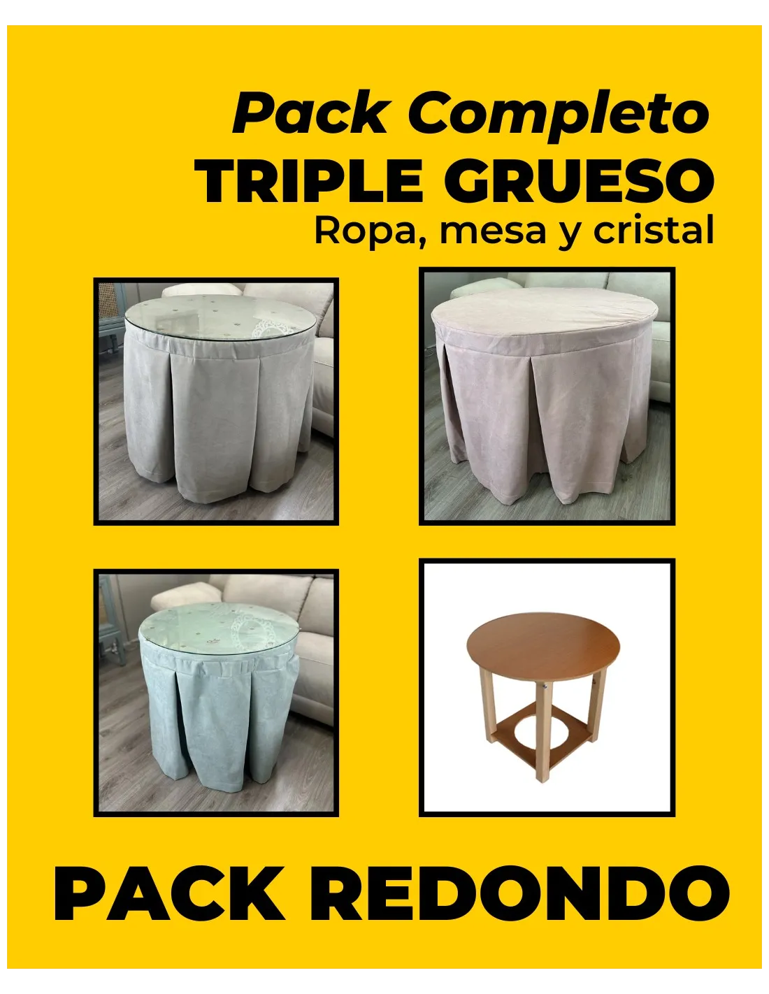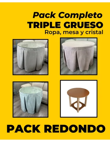 Pack Mesa DM Redonda, Ropa con Tapete y Cristal Opcional