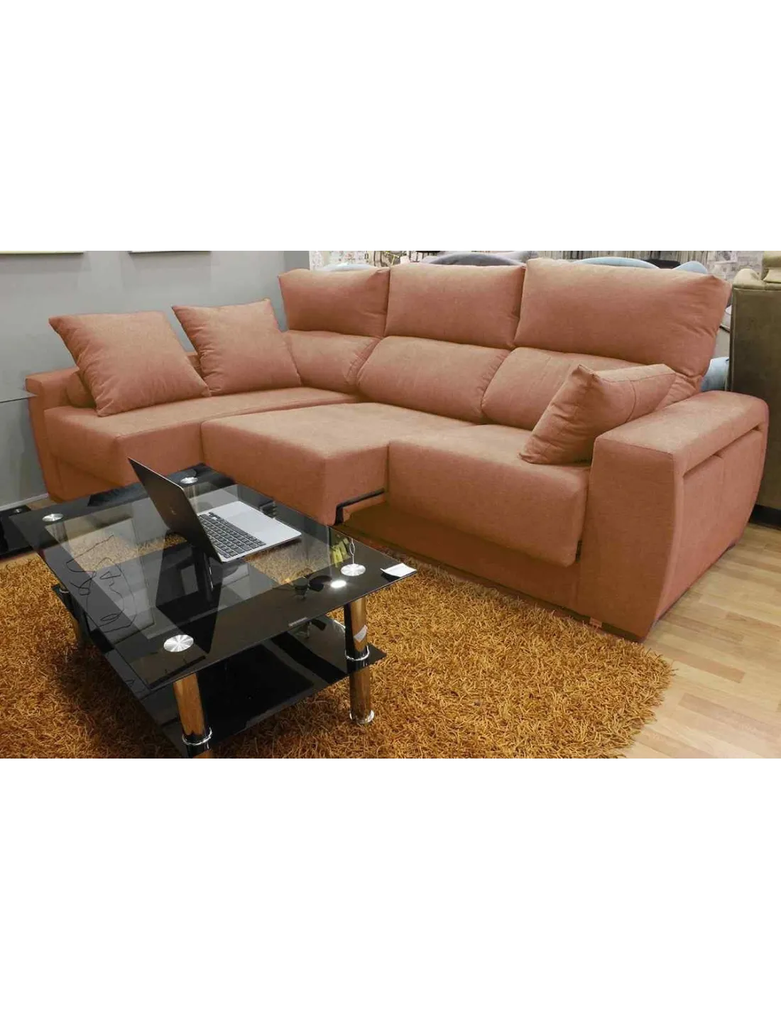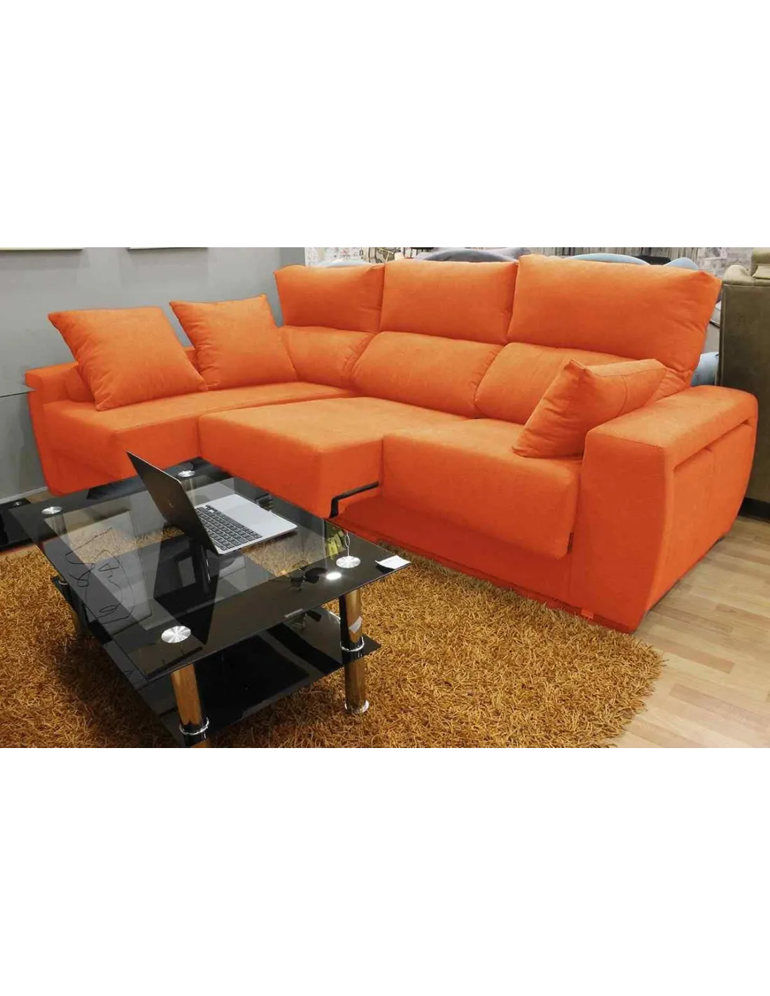Opción de arcón en el chaiselongue que ofrece mayor almacenamiento.
