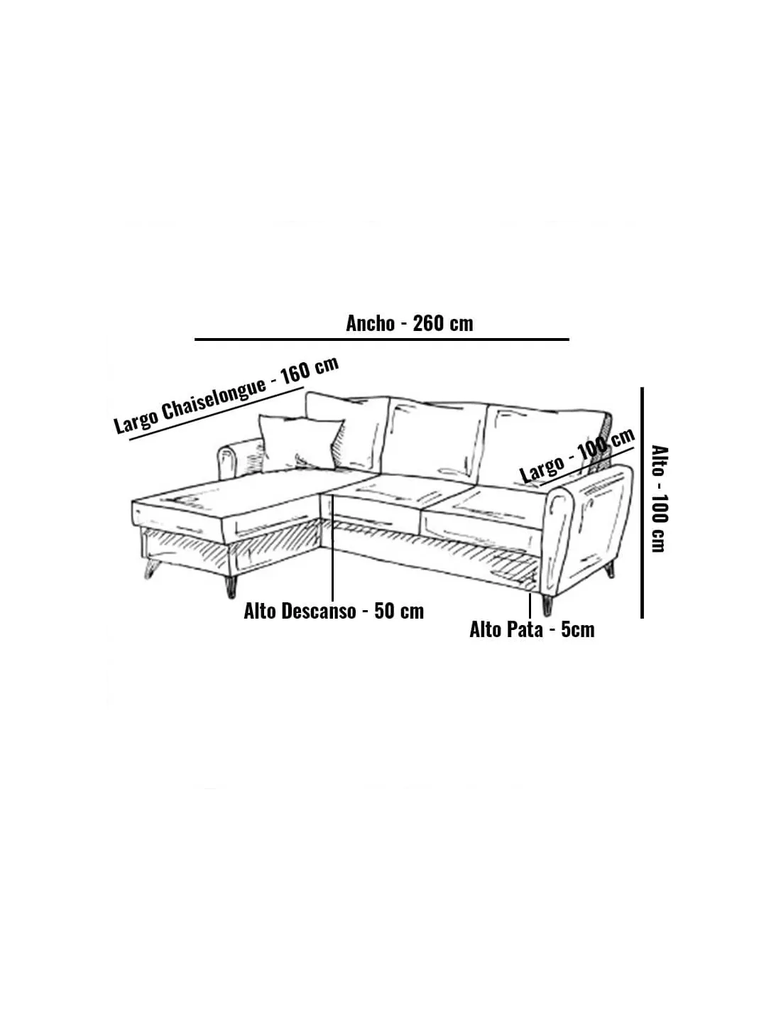 Ancho: 260cm - Largo: 160cm - Alto: 100cm