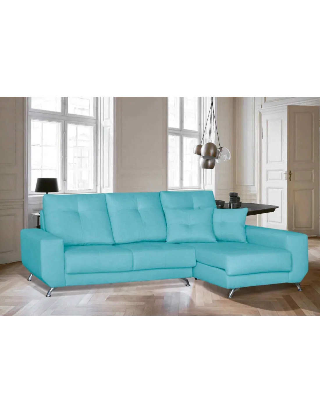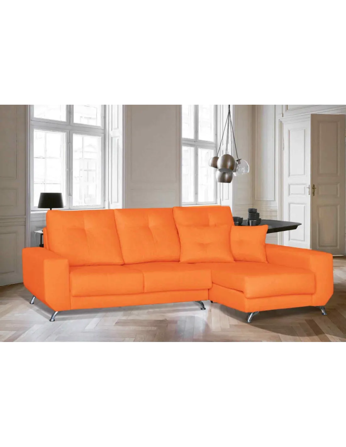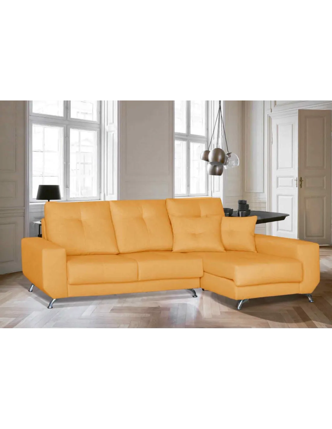 Modelo de estilo nórdico con pata alta de diseño en color cromada. Respaldos rectos y brazos sin cojín descanso para ofrecer un diseño increíble.