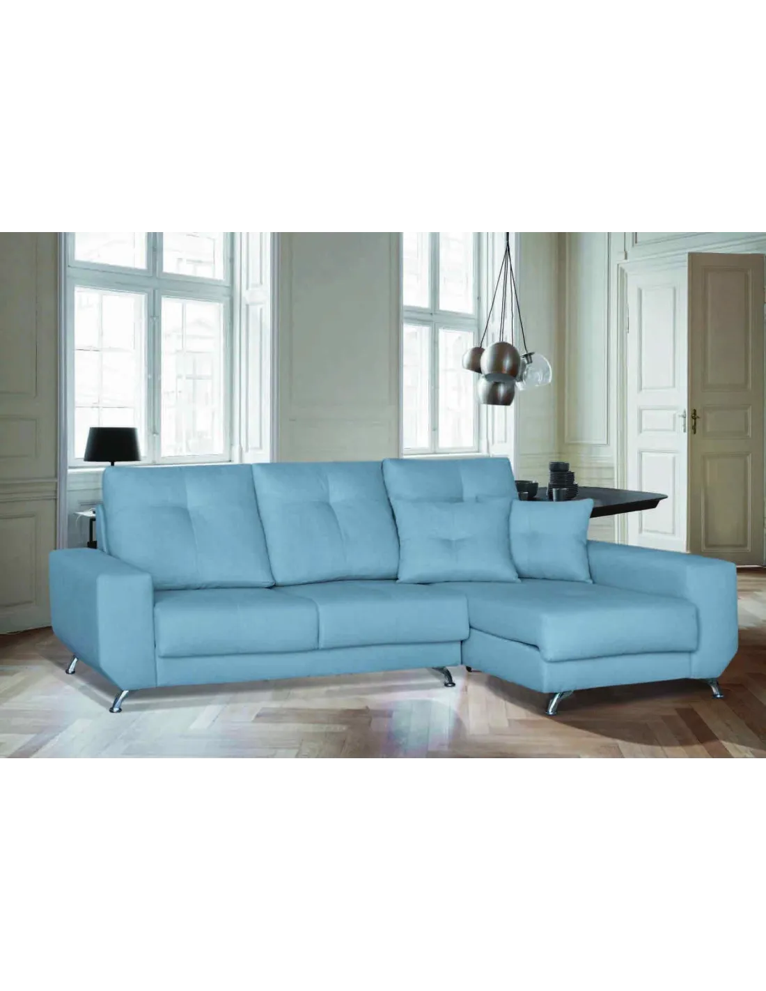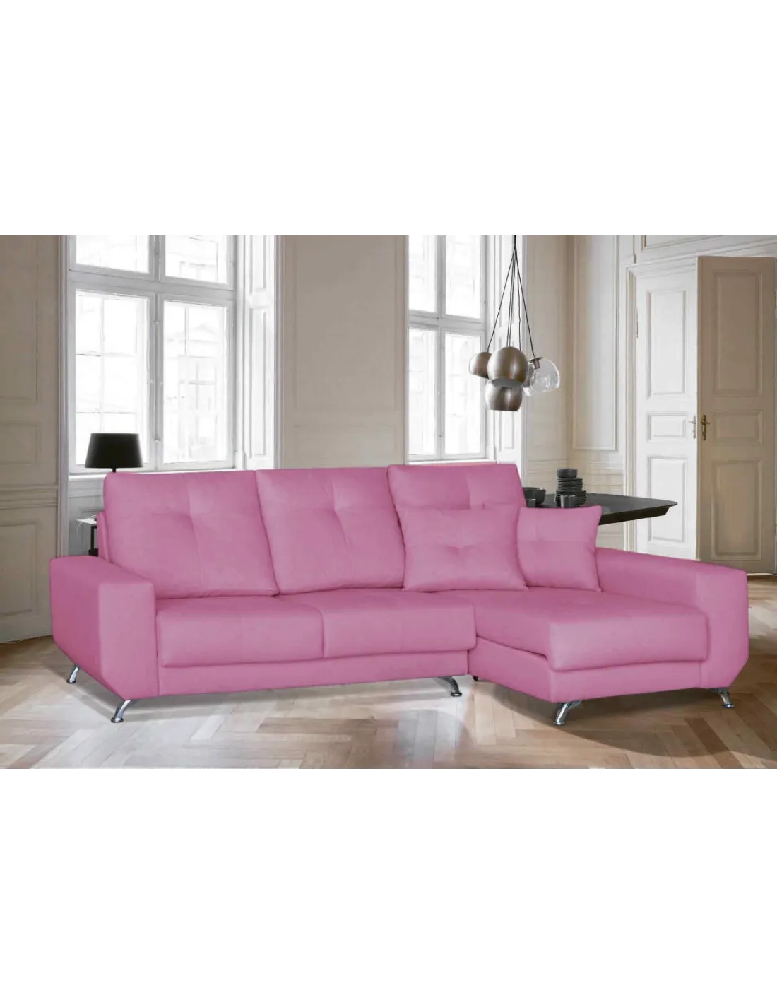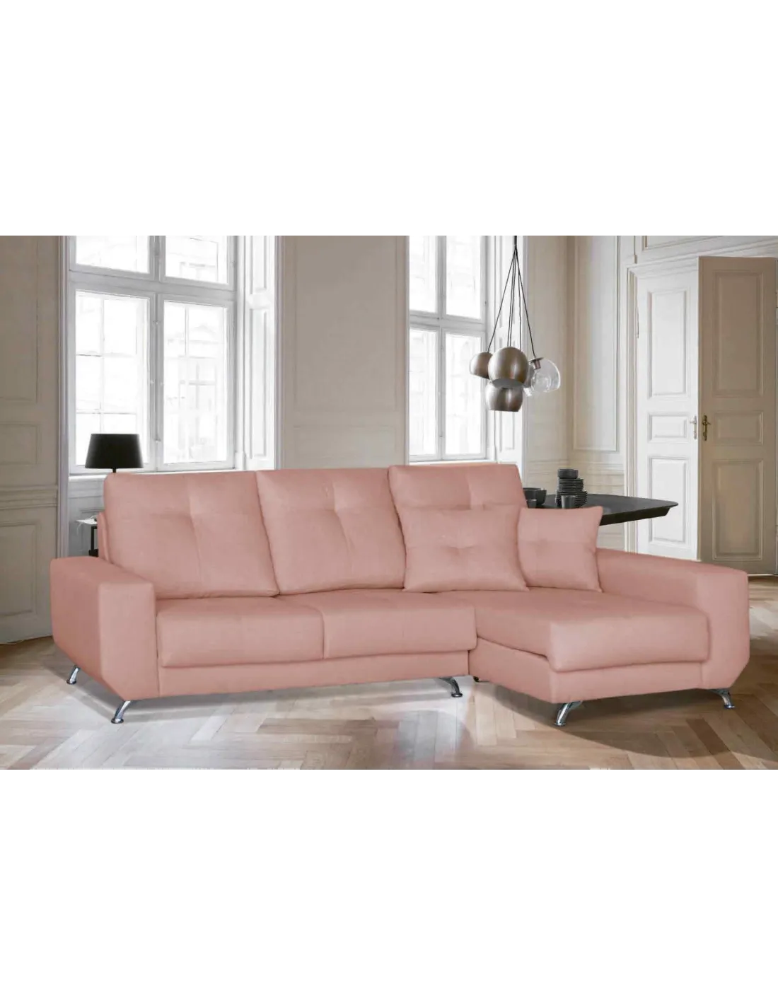 Modelo de estilo nórdico con pata alta de diseño en color cromada. Respaldos rectos y brazos sin cojín descanso para ofrecer un diseño increíble.