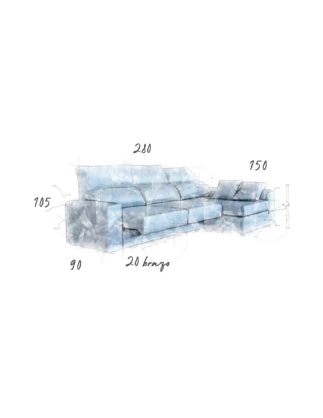 Disfruta la comodidad que ofrece nuestro sofá chaise longue confeccionado con tejido de gran calidad. Este chaiselonge se compone de asientos reclinables para que puedas ajustar la altura del cabecero y así evitar molestias cervicales.