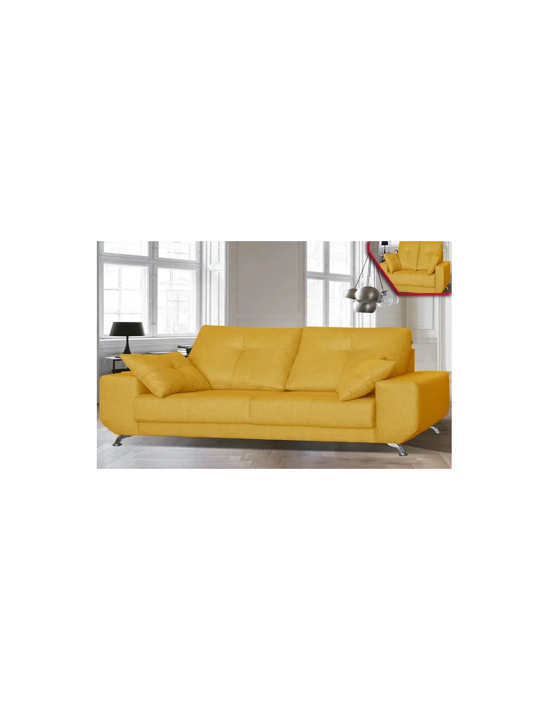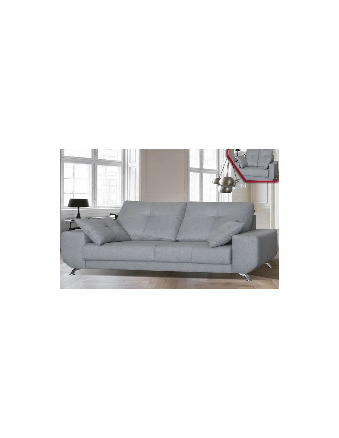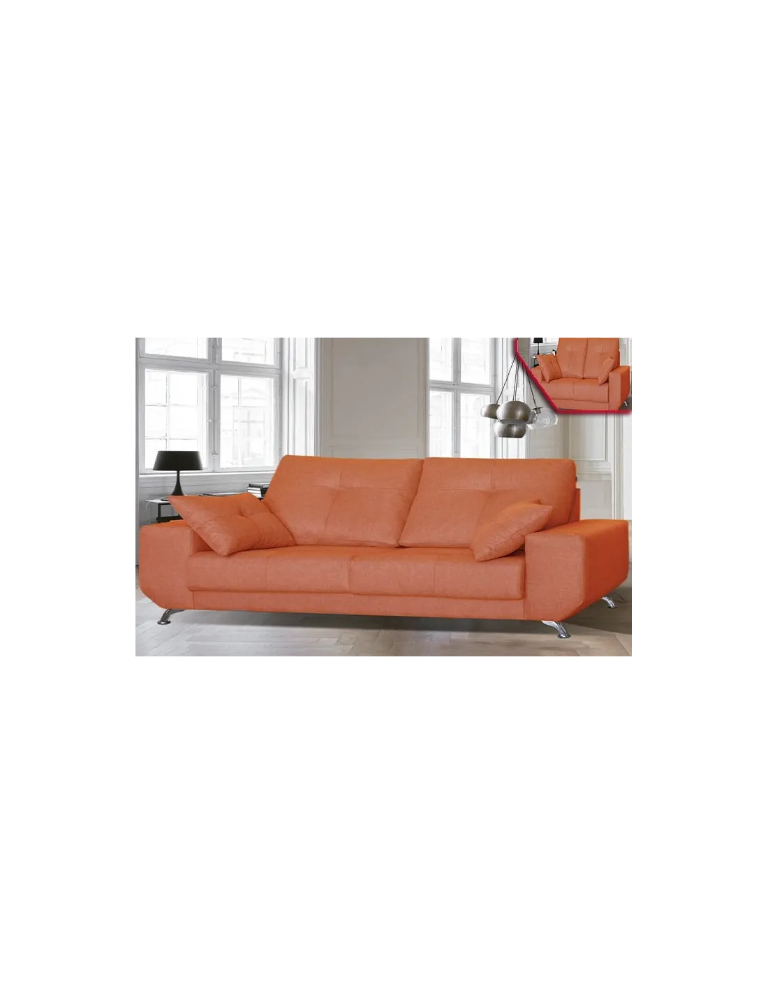 Modelo de estilo nórdico con pata alta de diseño en color cromada. Respaldos rectos y brazos sin cojín descanso para ofrecer un diseño increíble.