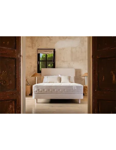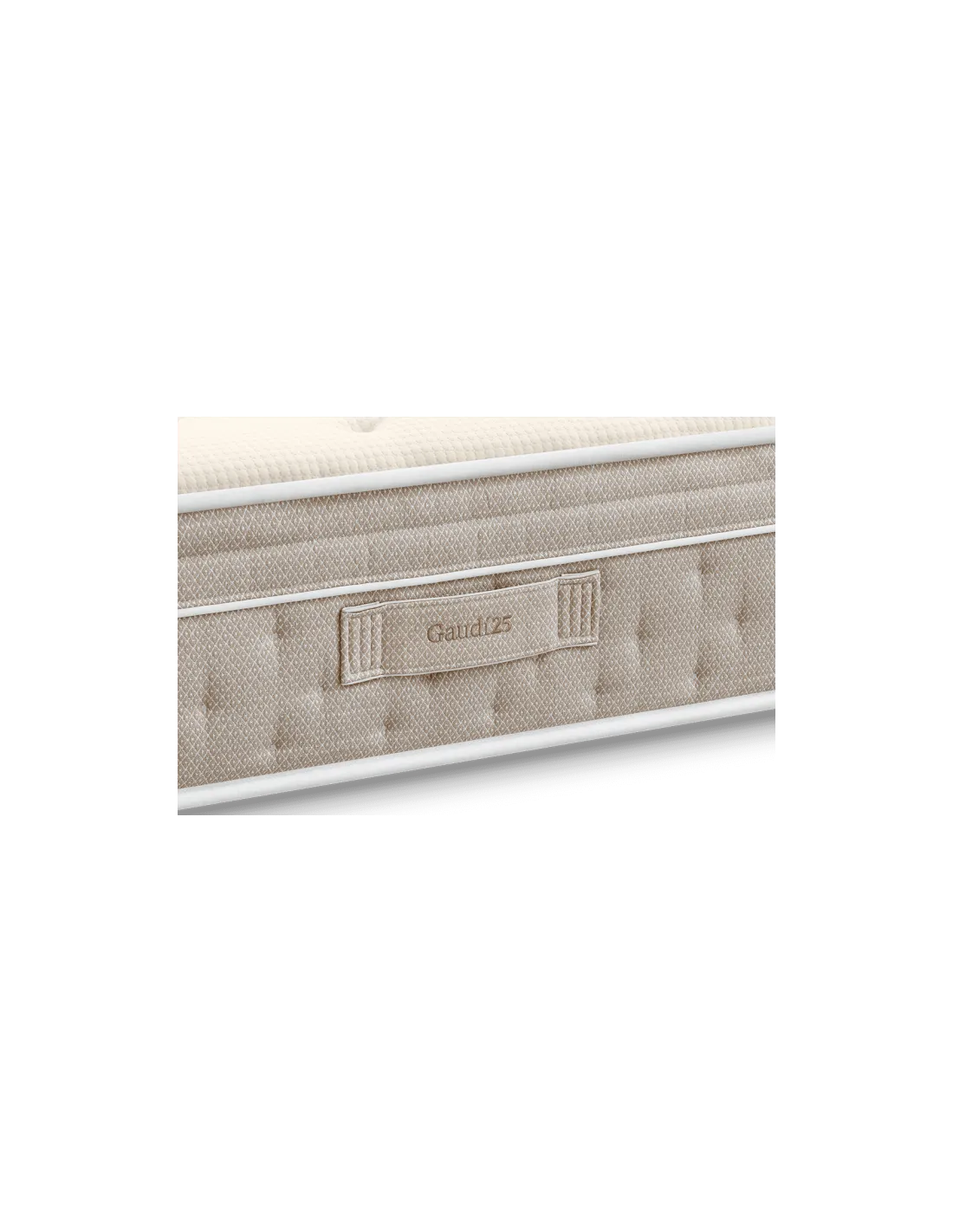 Colchón Gaudí 25 con 1300 muelles ensacados, viscoelástica Viscloud y algodón orgánico, ofrece confort, firmeza media-alta y descanso ergonómico excepcional.