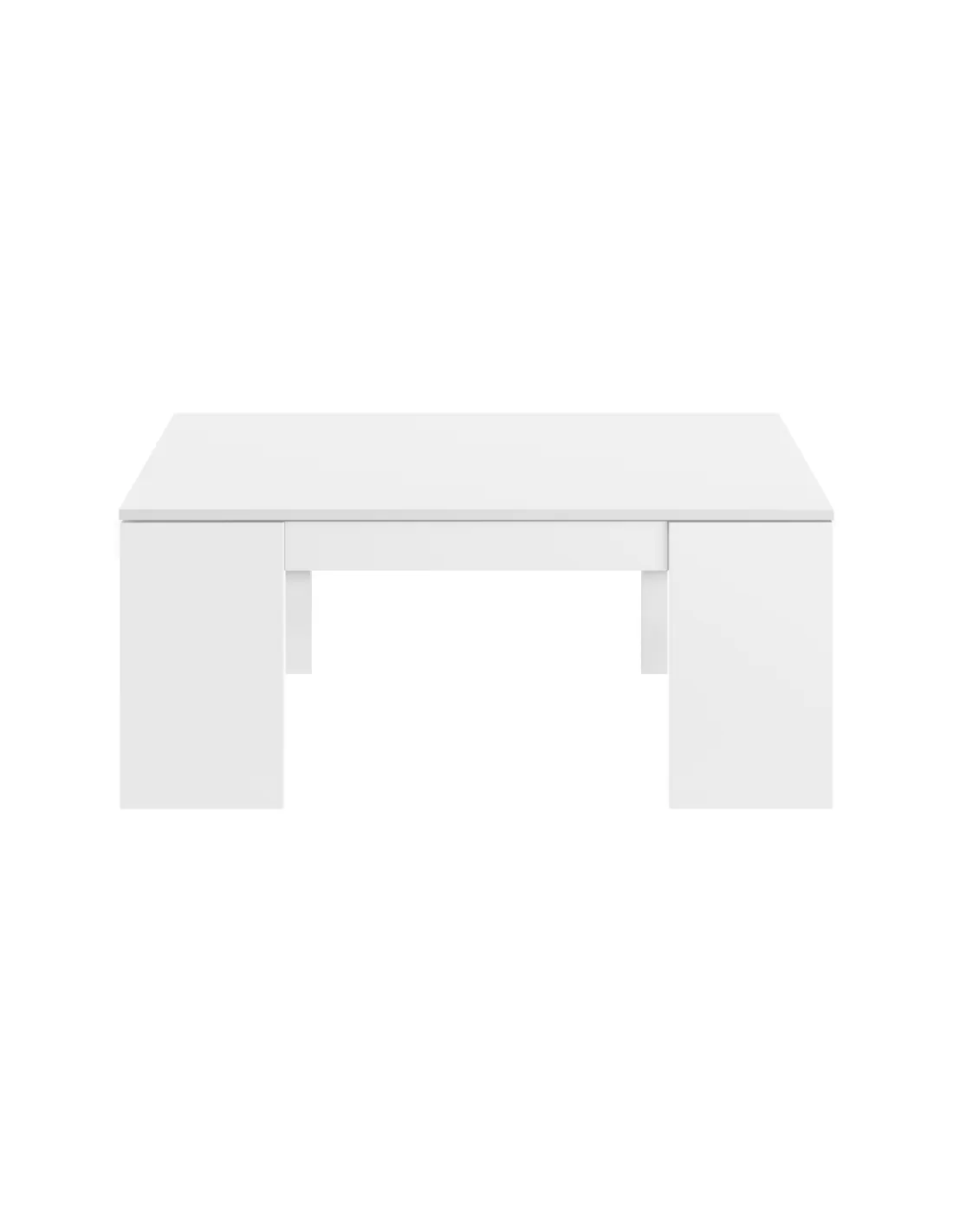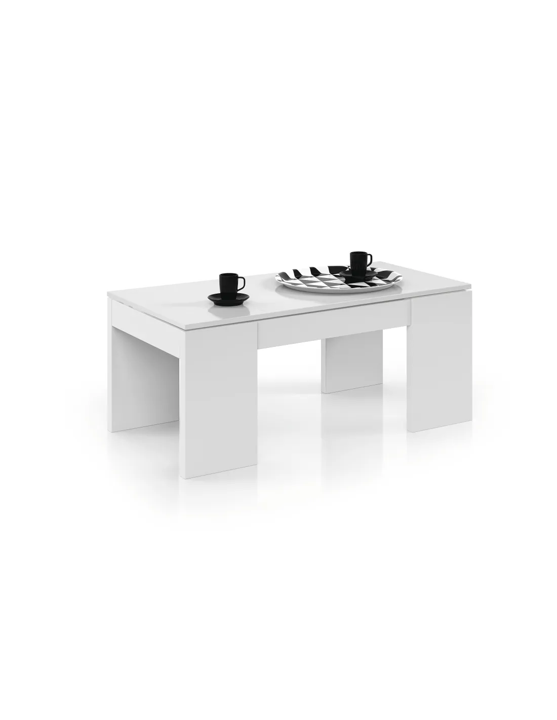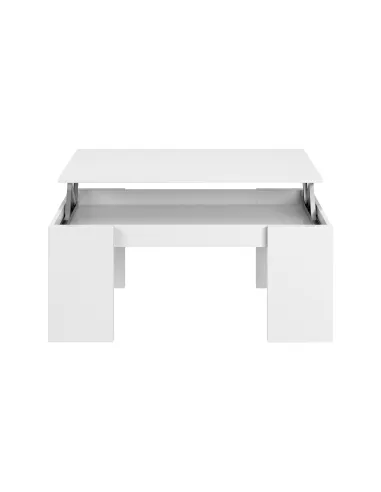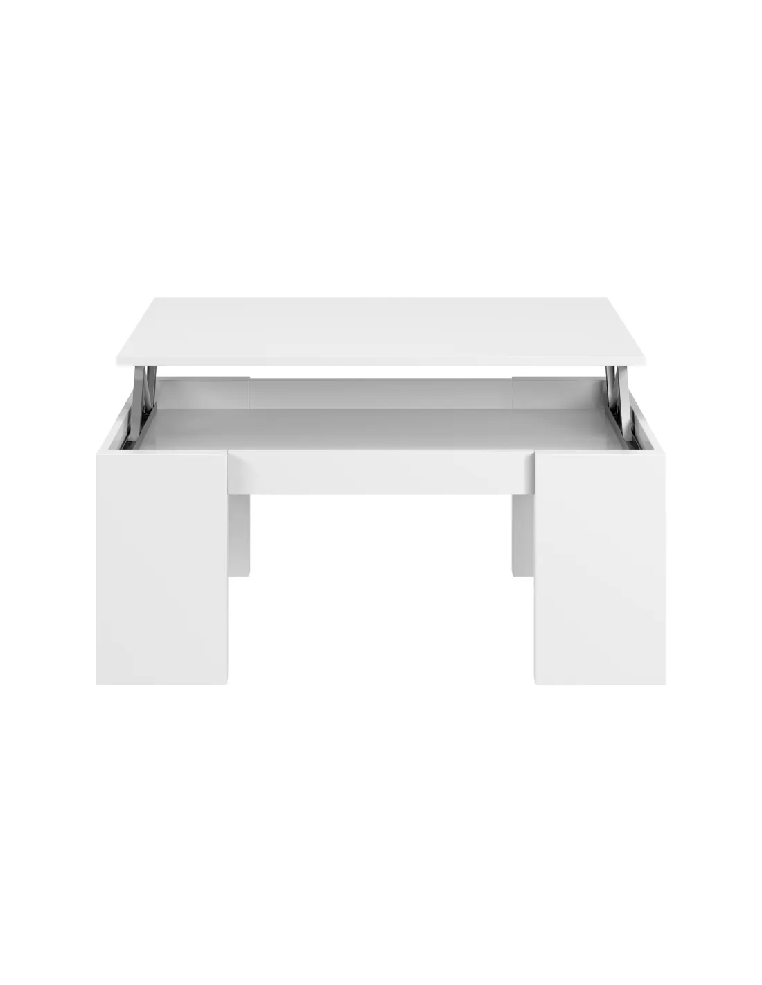 Mesa de centro elevable con tapa elevable. Con espacio de almacenamiento que queda oculto al cerrar la tapa.