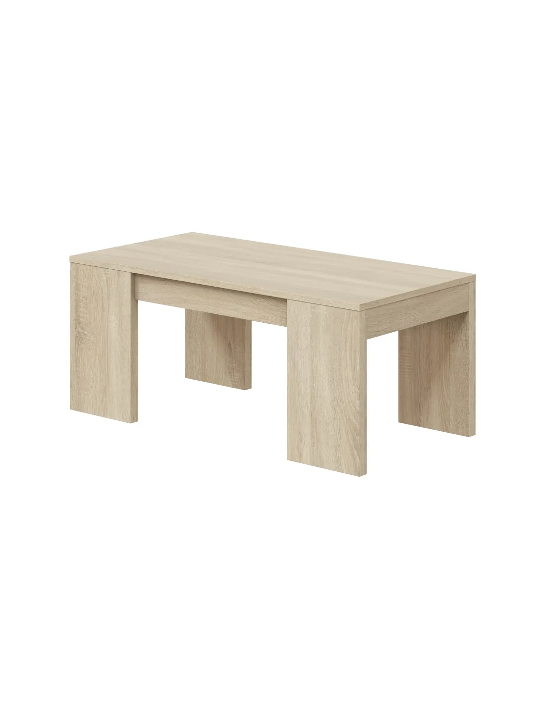 - Mesa de centro funcional: Dispone de una tapa elevable que facilita actividades como comer o trabajar desde el sofá de forma cómoda.