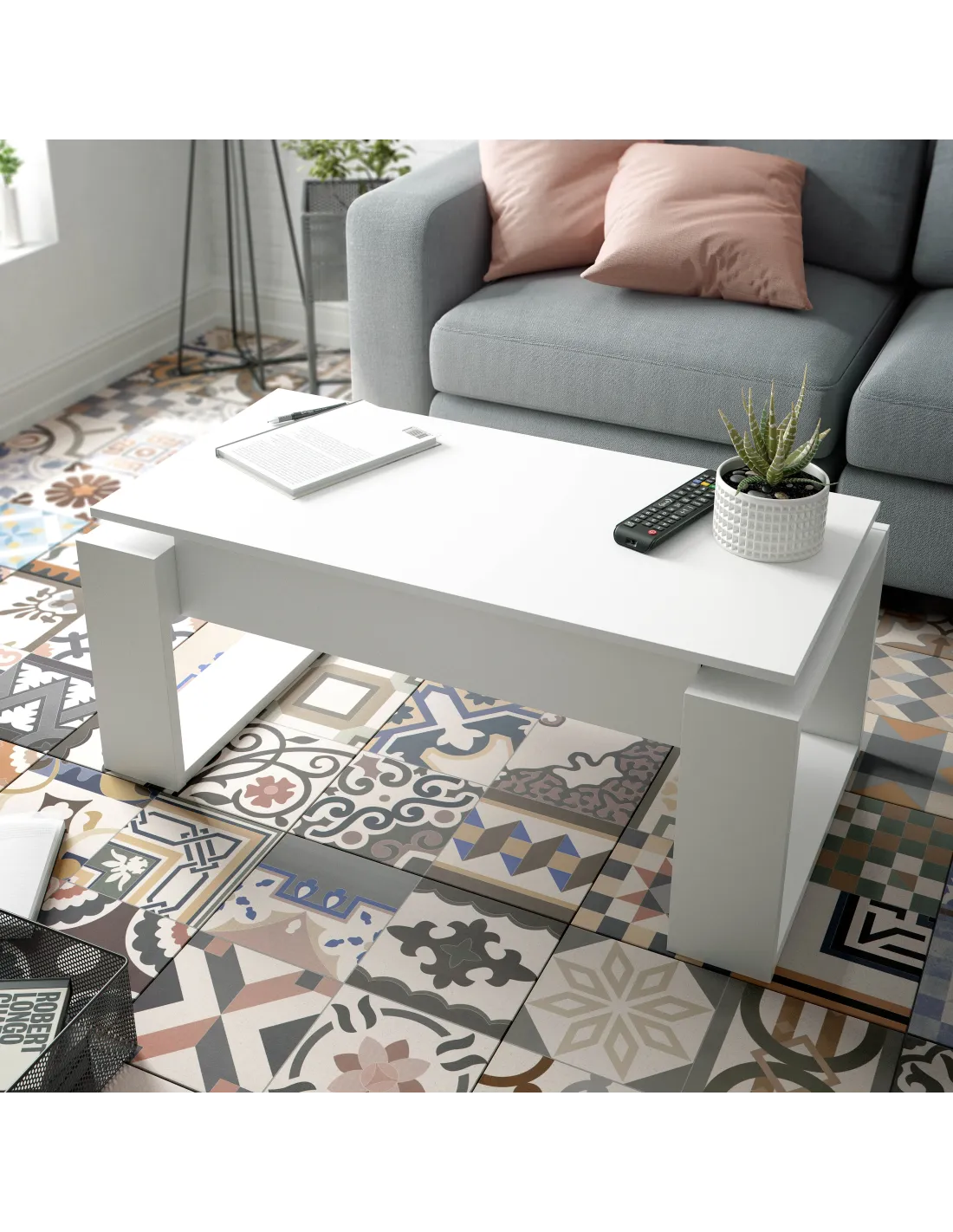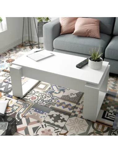 - Funcionalidad: Mesa de centro con tapa superior elevable que facilita comer, leer o trabajar desde el sofá de forma cómoda.