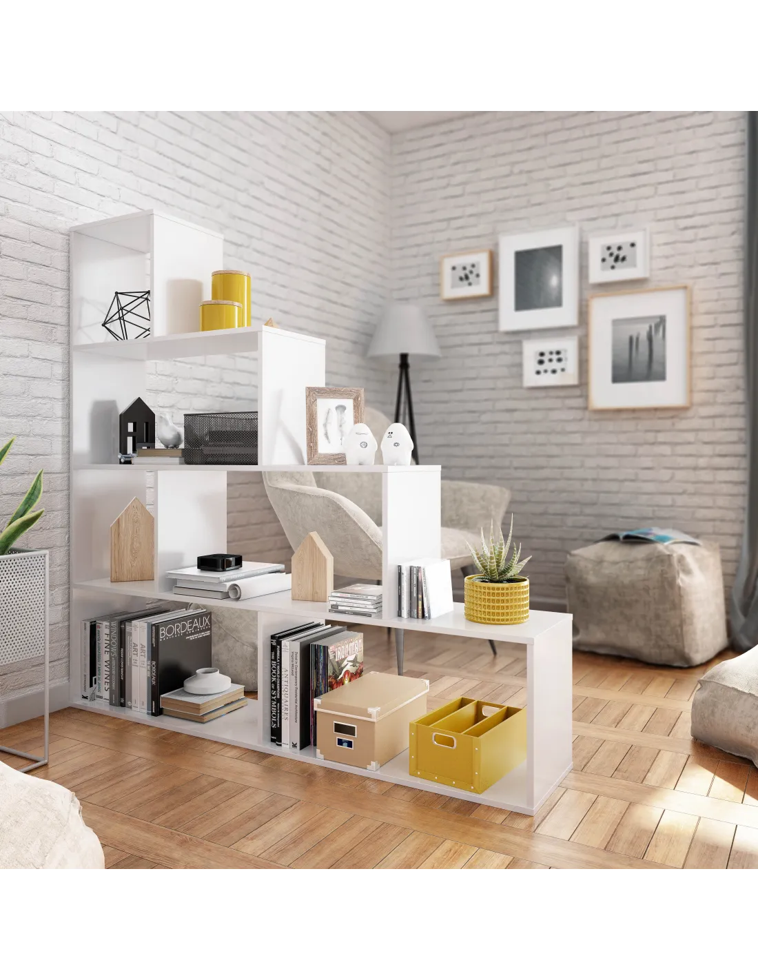 Estantería de diseño irregular con 6 niveles de almacenaje. Un mueble decorativo y funcional ideal para salones o despachos.