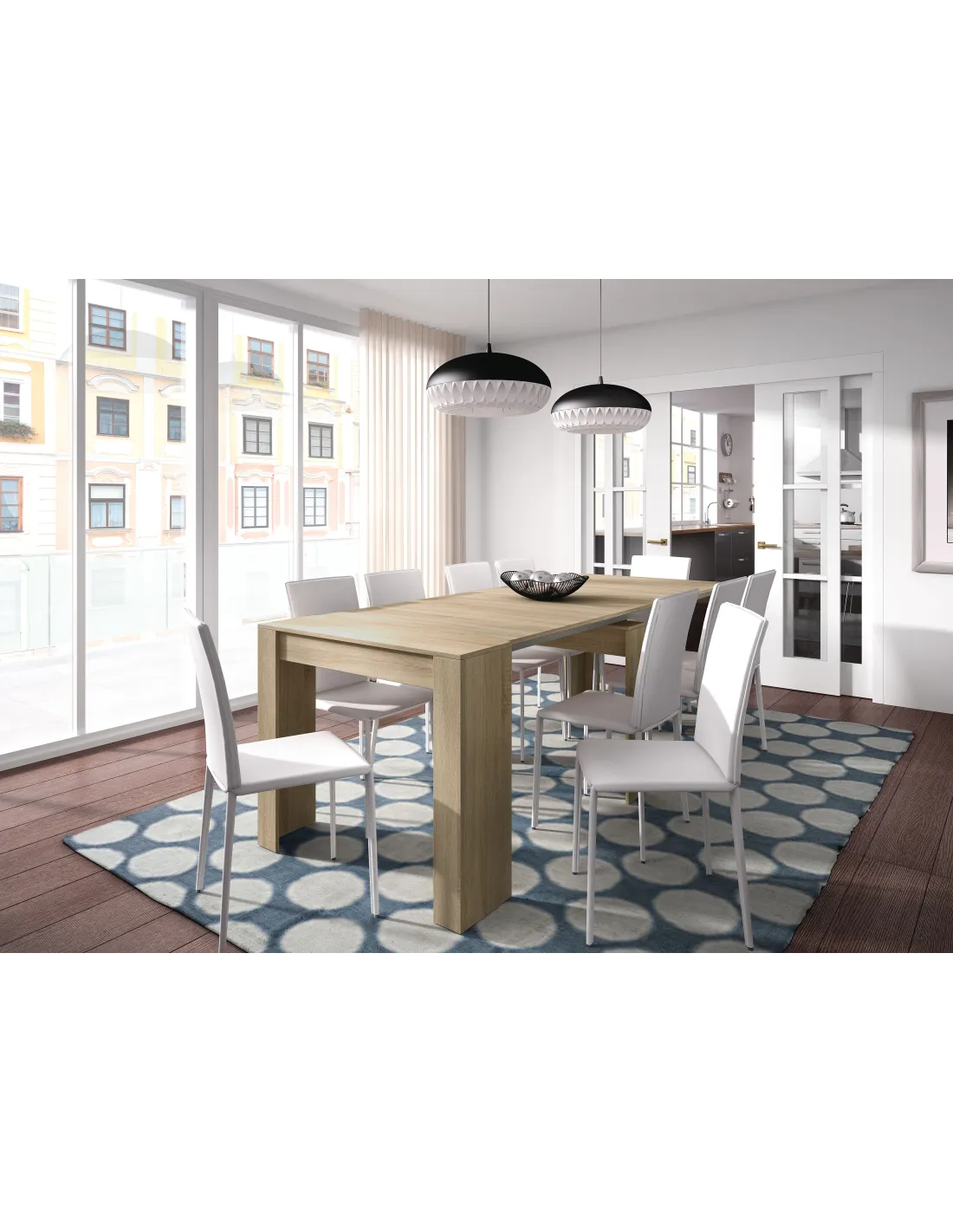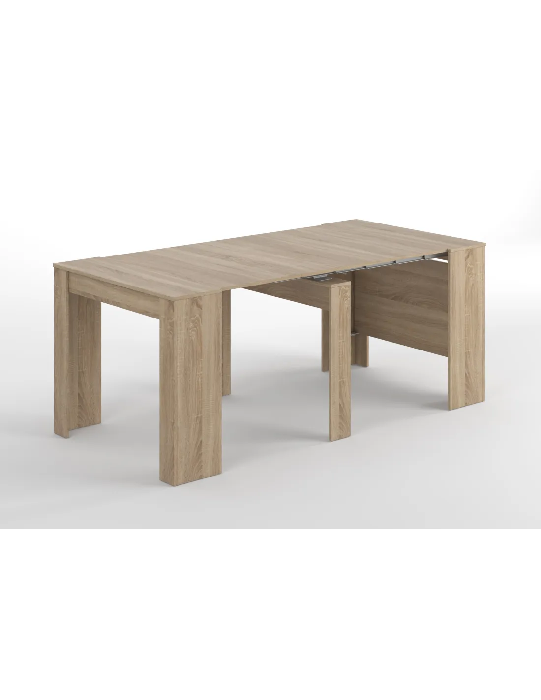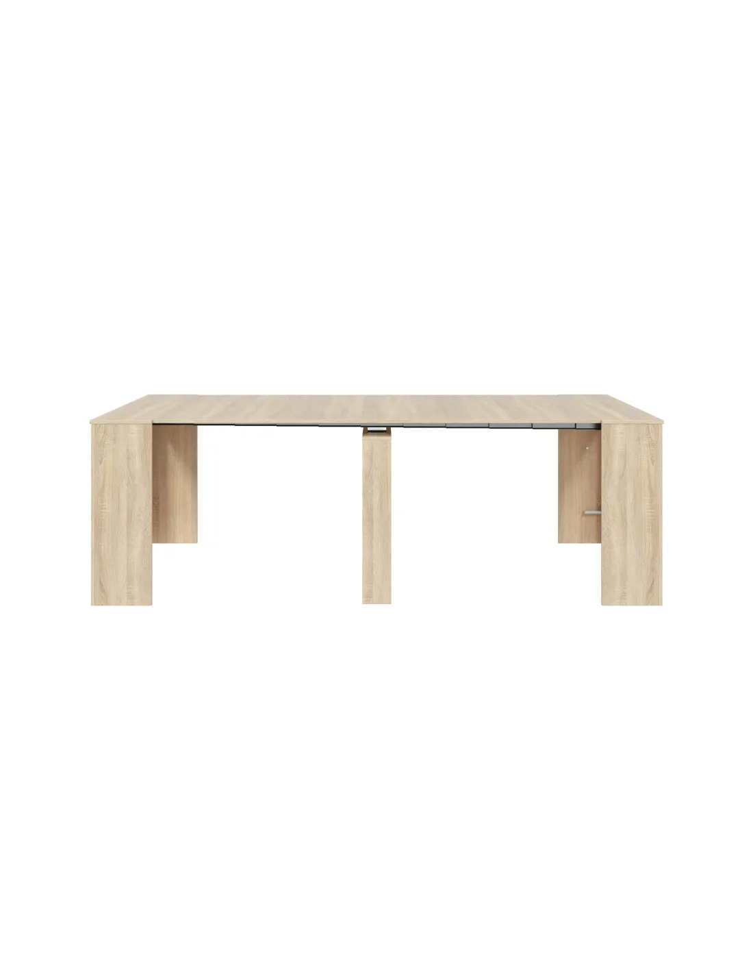 Mesa de comedor consola extensible con 5 posiciones, ideal para optimizar el espacio en el salón o comedor. Su acabado en Roble Canadian aporta un toque natural y moderno a cualquier estancia.