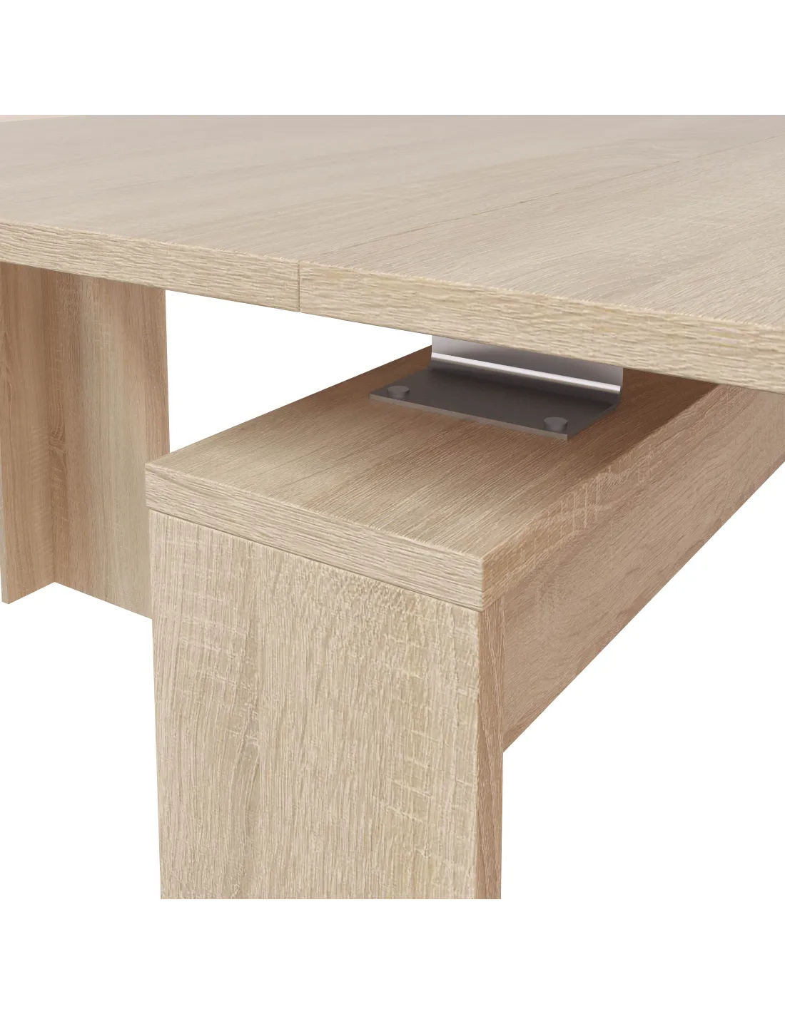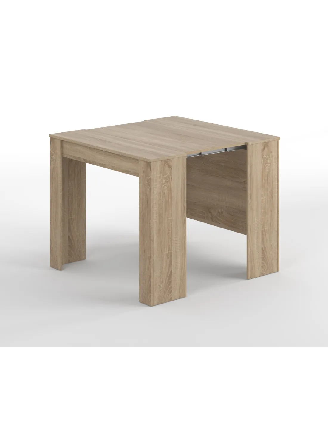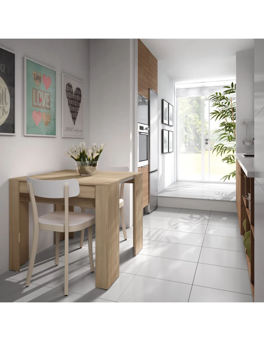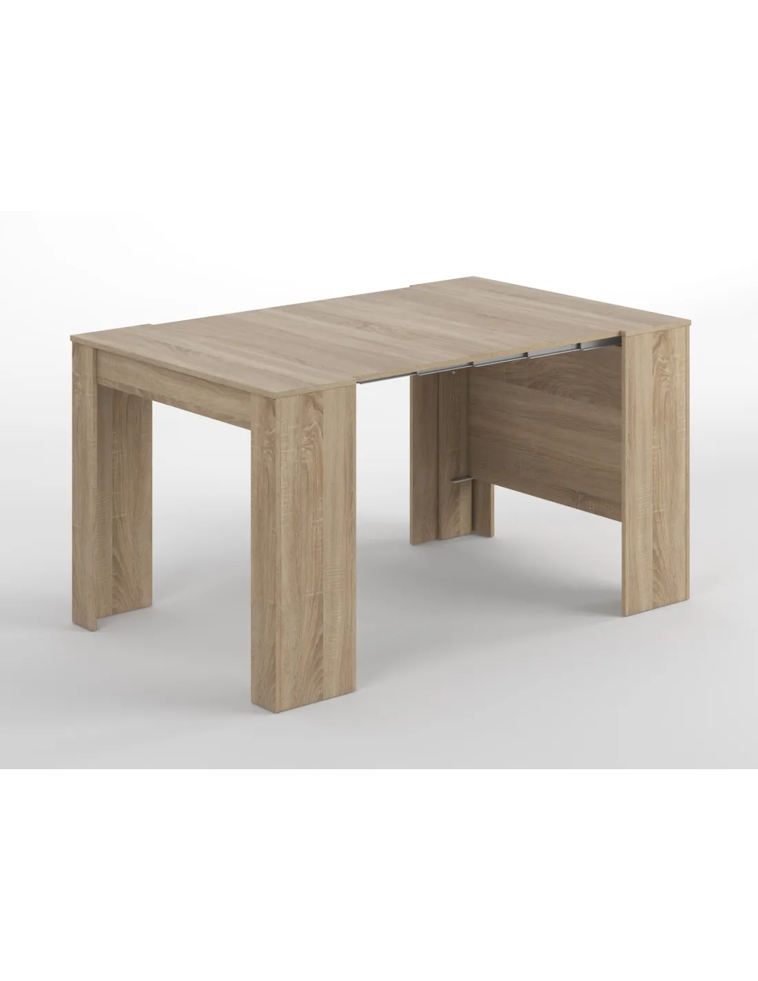 Mesa de comedor consola extensible con 5 posiciones, ideal para optimizar el espacio en el salón o comedor. Su acabado en Roble Canadian aporta un toque natural y moderno a cualquier estancia.