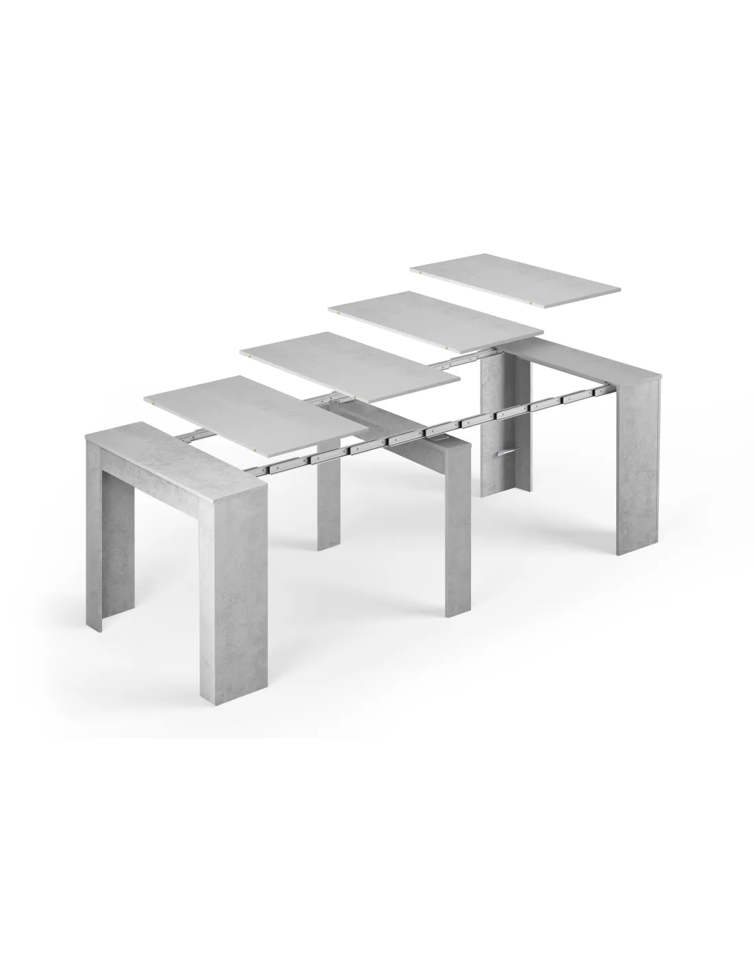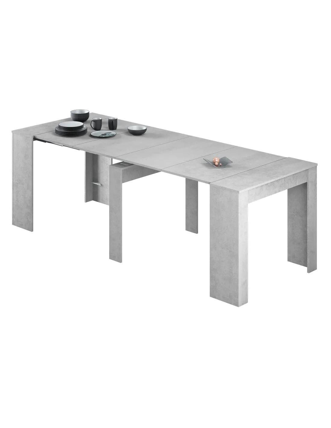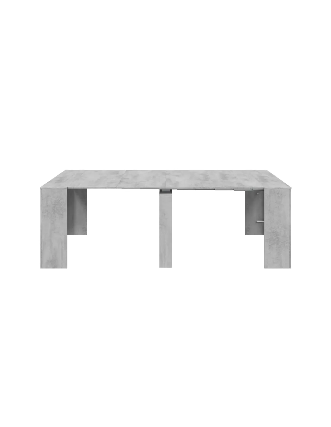 Mesa de comedor consola extensible con 5 posiciones, ideal para optimizar el espacio en el salón o comedor. Su acabado en color Cemento aporta un estilo industrial y moderno a cualquier estancia.