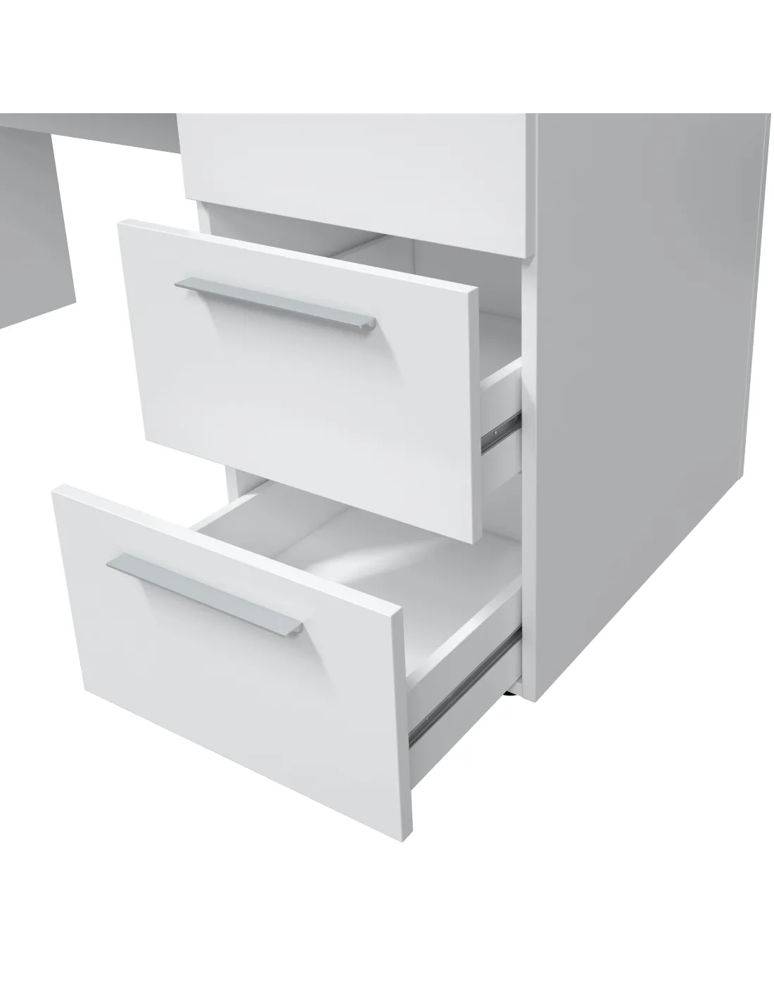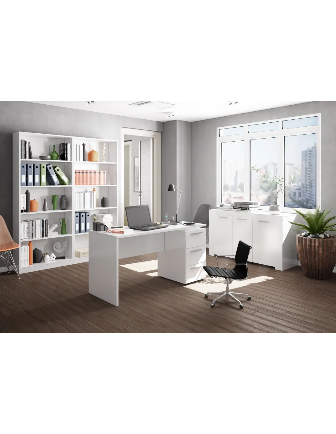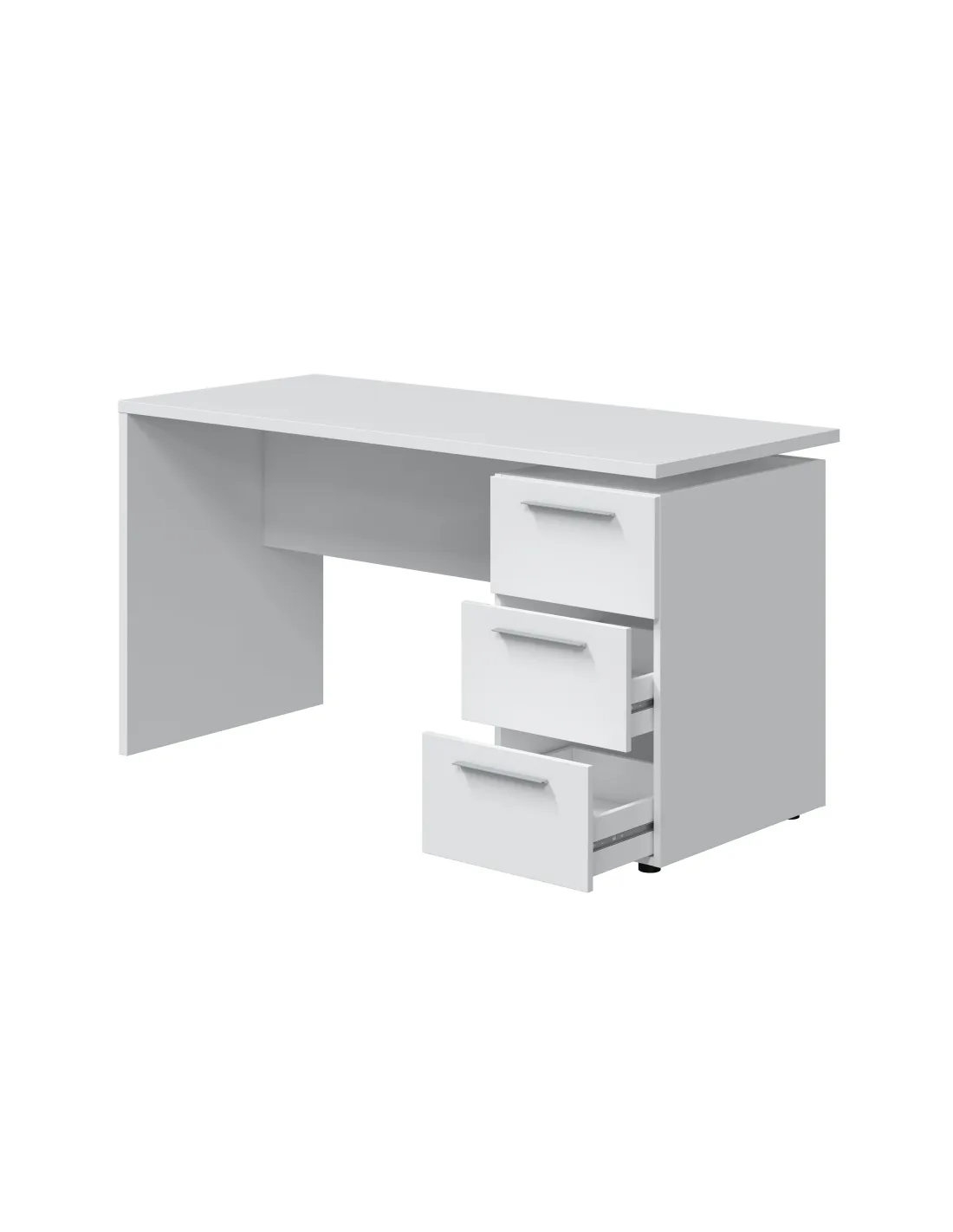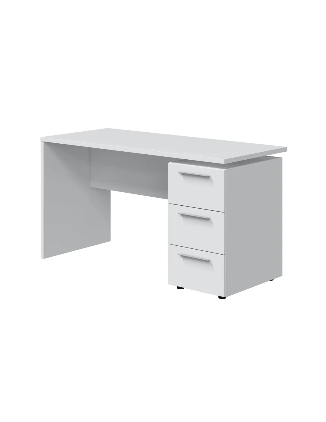 Mesa de despacho profesional de diseño robusto y funcional, equipada con un módulo de 3 cajones para una organización óptima. Su acabado en Blanco Artik aporta una estética limpia y moderna a cualquier oficina o zona de estudio.
