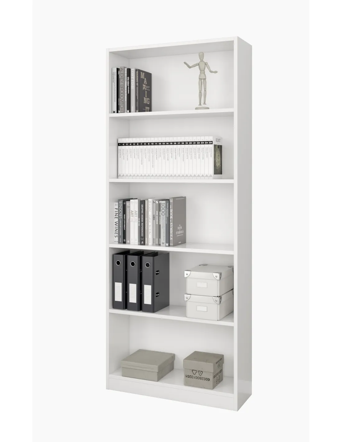 Mueble auxiliar versátil con cinco compartimentos abiertos, ideal para la organización de libros o decoración en cualquier estancia del hogar. Su estructura esbelta permite aprovechar al máximo el espacio vertical.