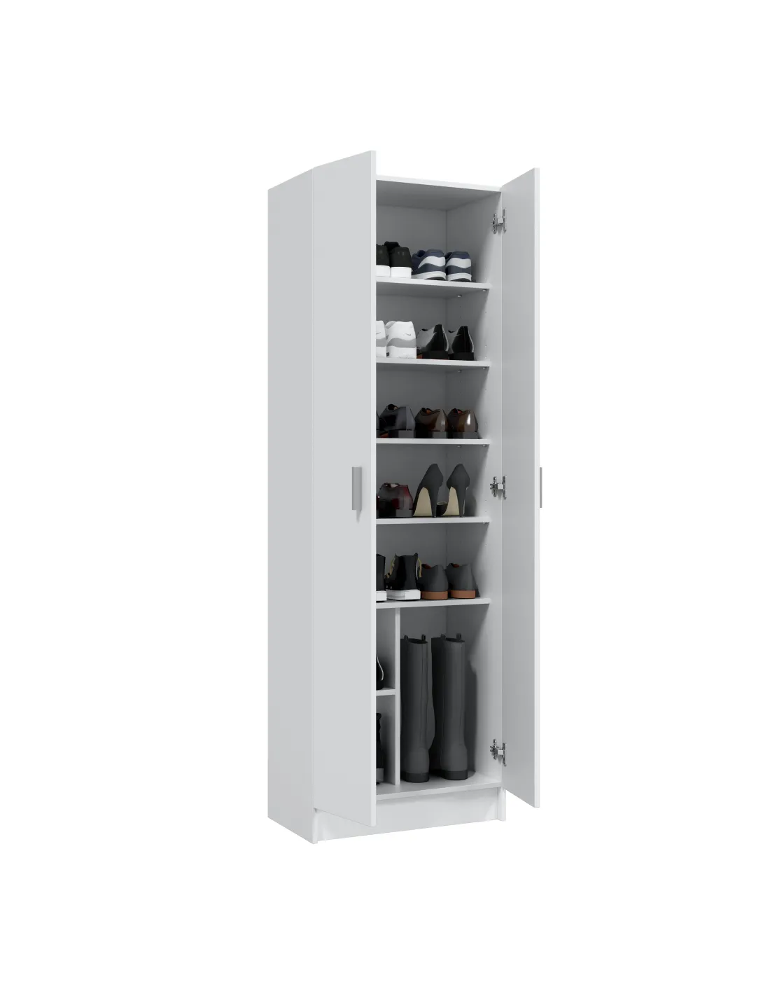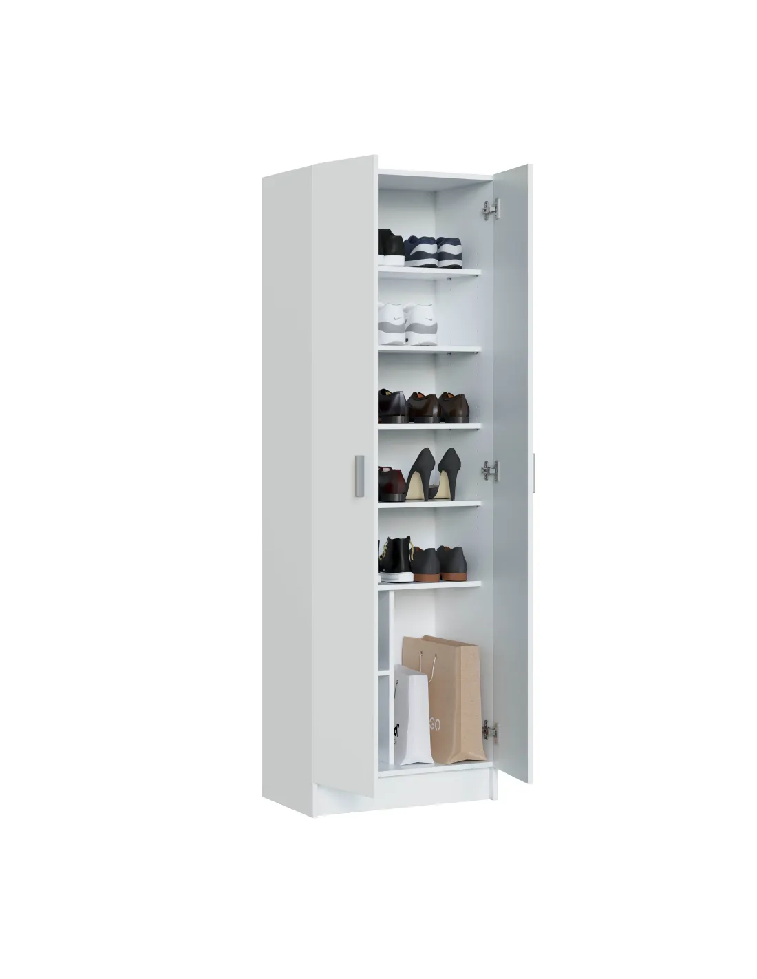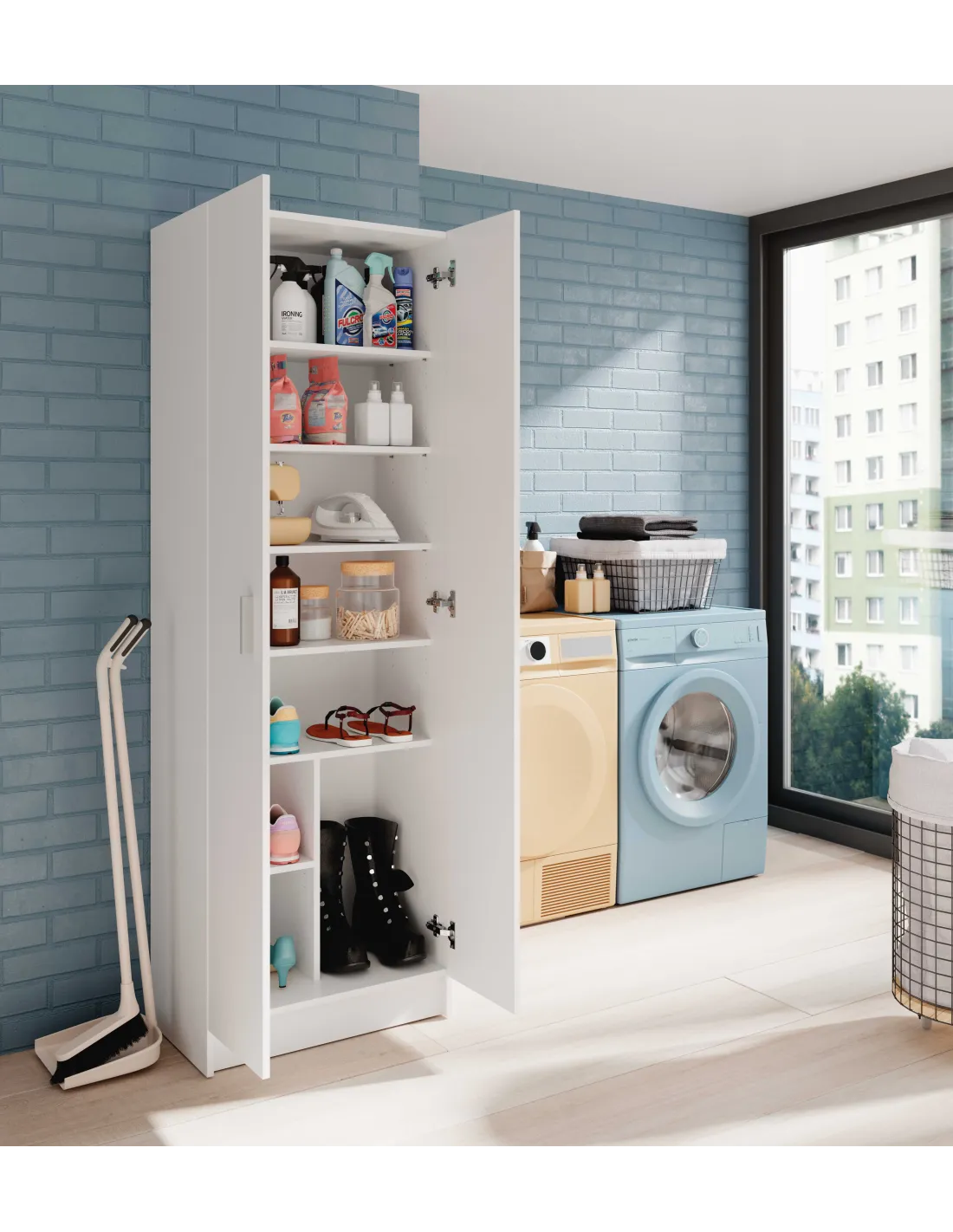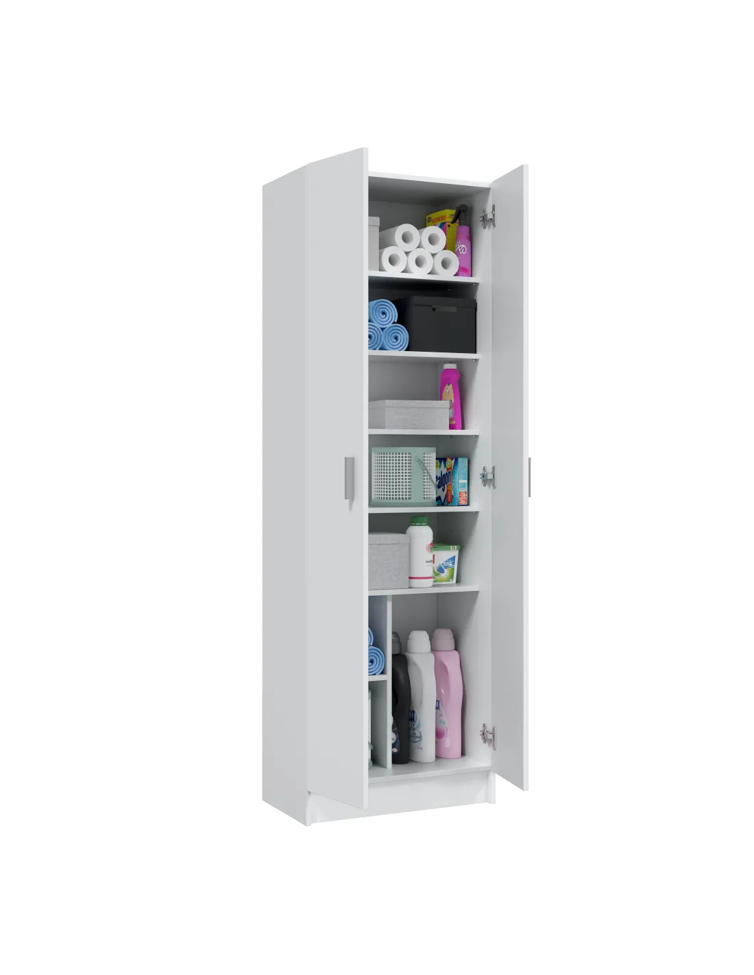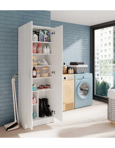 Armario de 2 puertas con 5 estantes regulables en altura. Una solución práctica y funcional para organizar diferentes espacios del hogar.