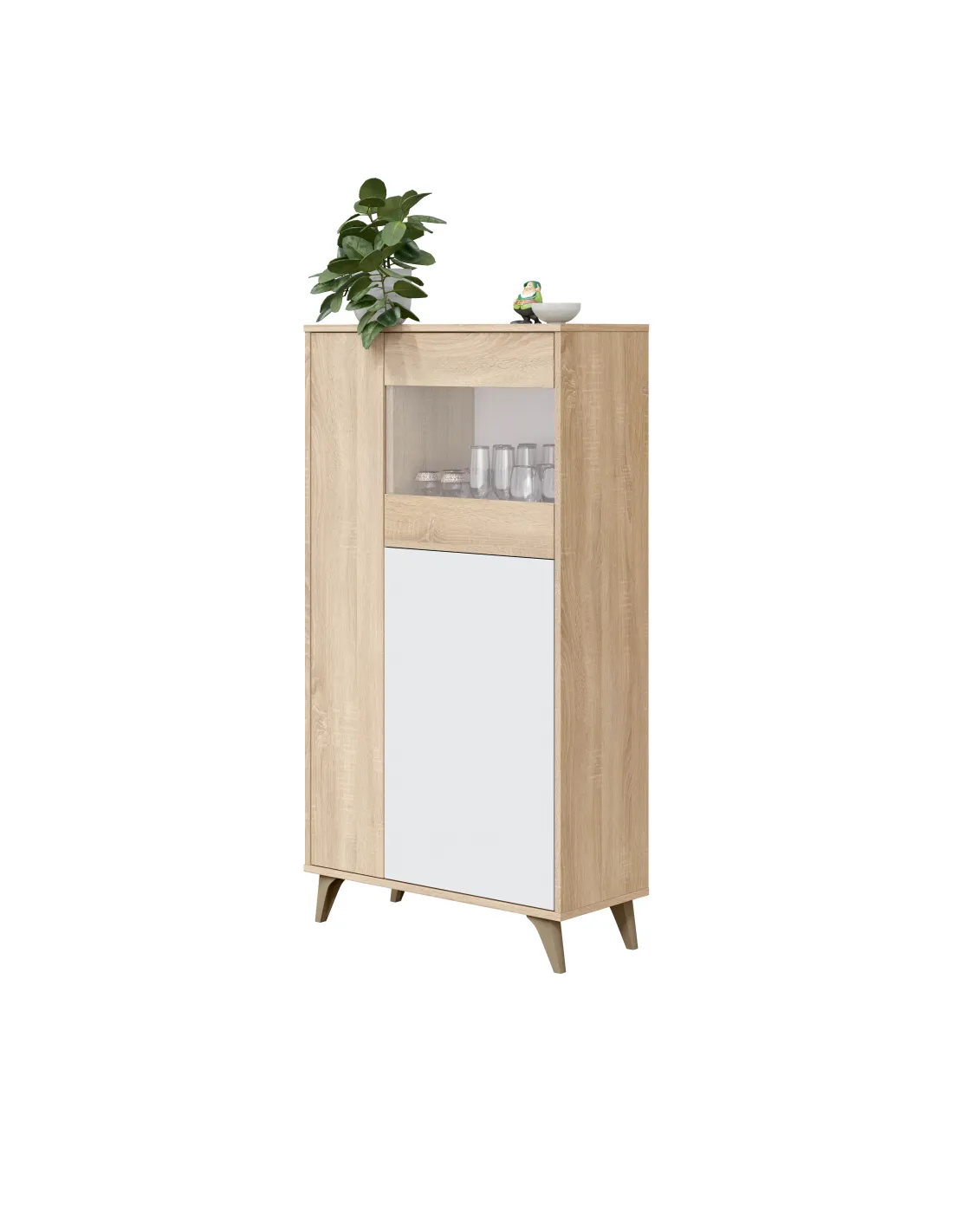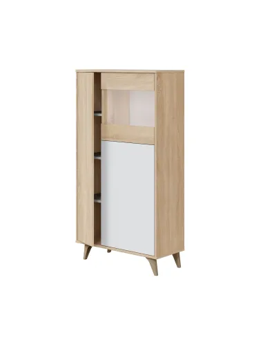 Mueble vitrina de 3 puertas con estantes interiores. Sistema de apertura tipo PUSH, bisagras metálicas y patas ABS en el mismo color del mueble.