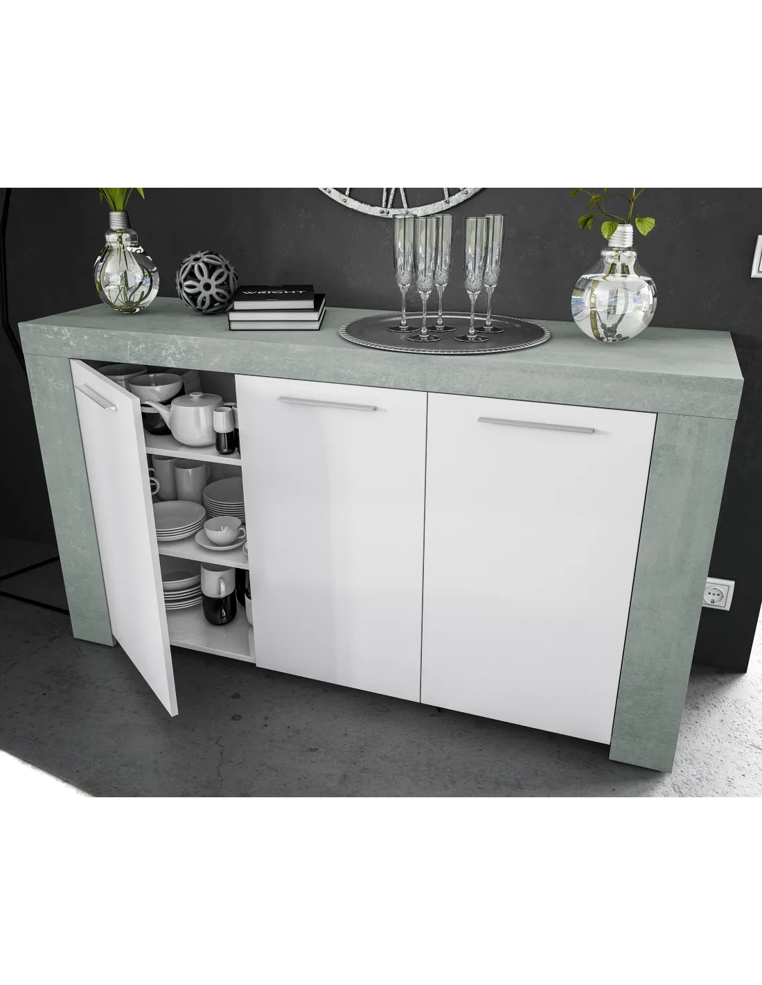 URBAN Buffet 3 puertas CEMENTO/ BL. ARTIK