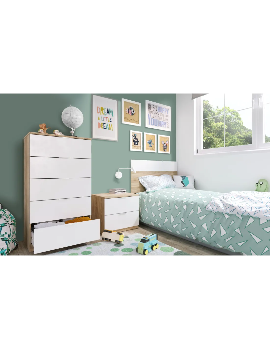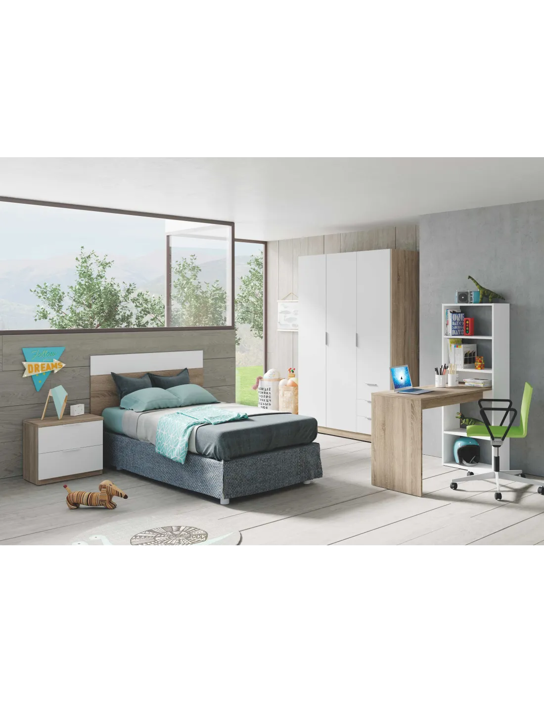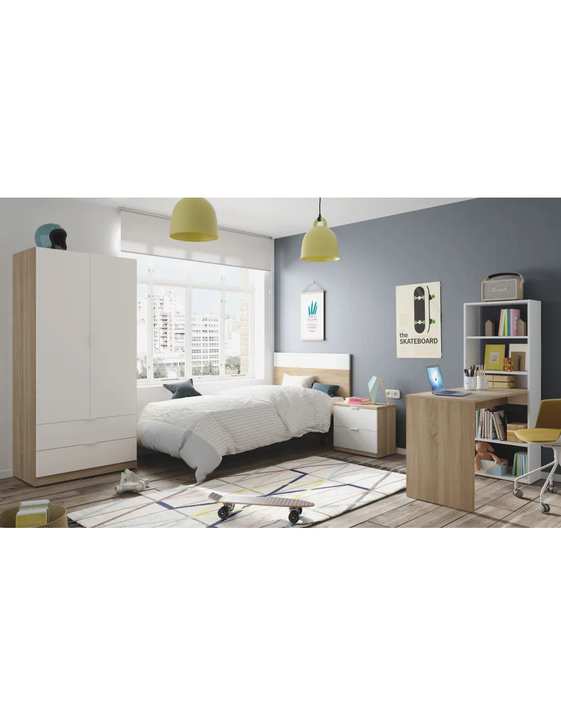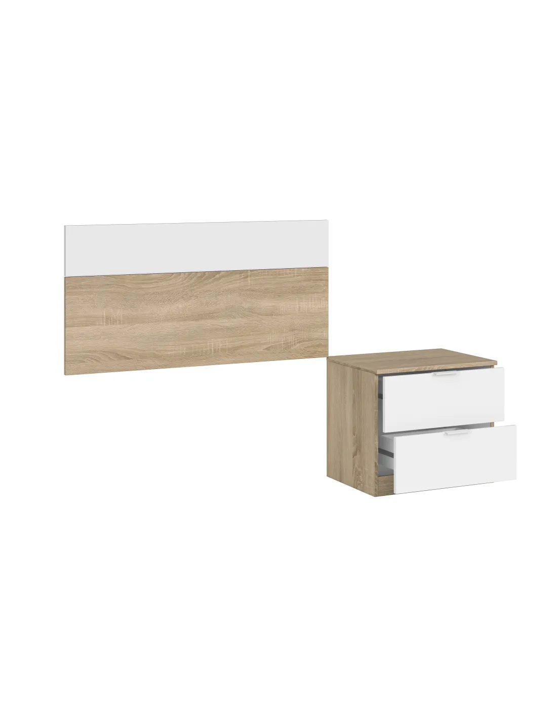 LUCA Cabezal 100 +mesita con 2 cajones R.CANADIAN/BLANCO ARTIK