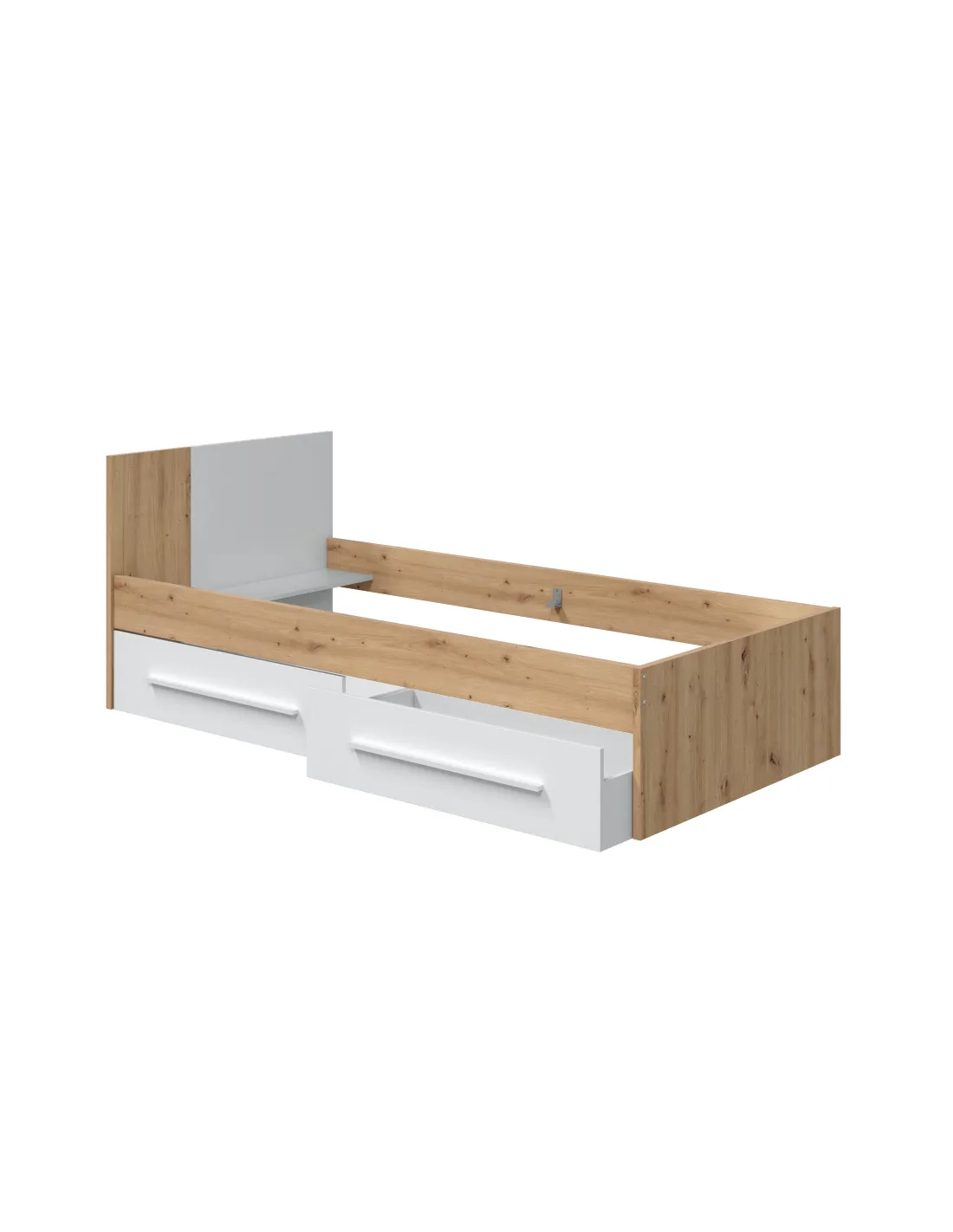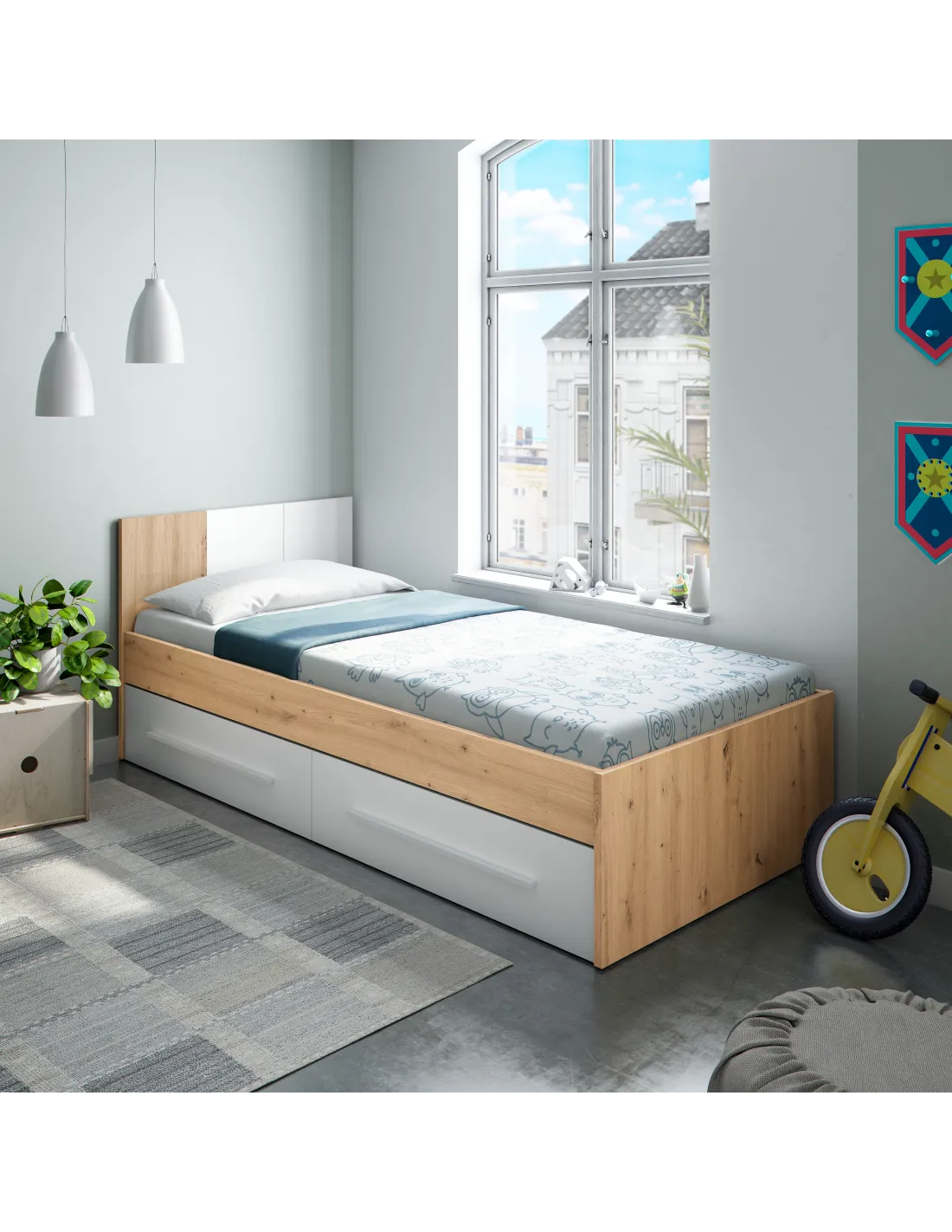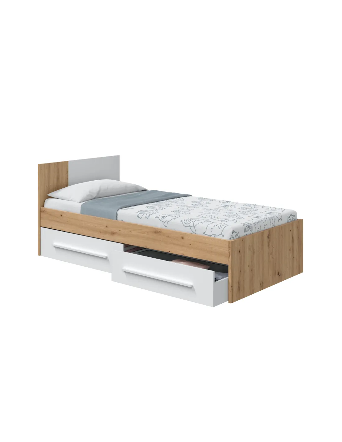 AMBIENT Cama juvenil con cabezal (SIN somier + 2 cajones)(para colchón de 190x90) ROBLE NODI/BL.ARTIK