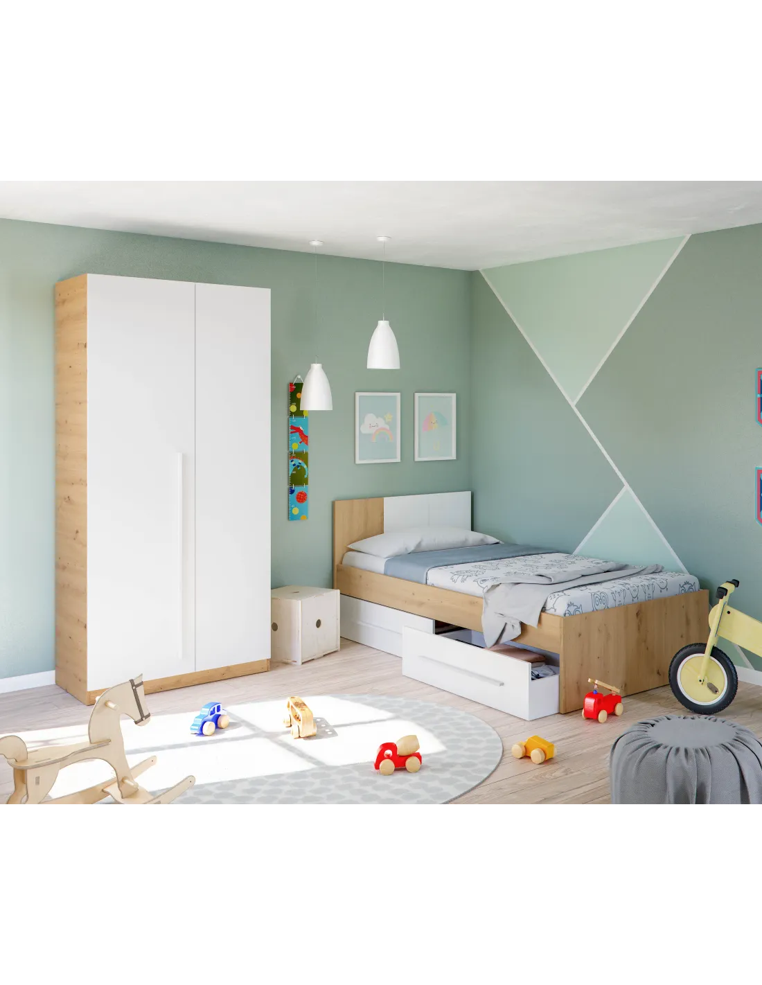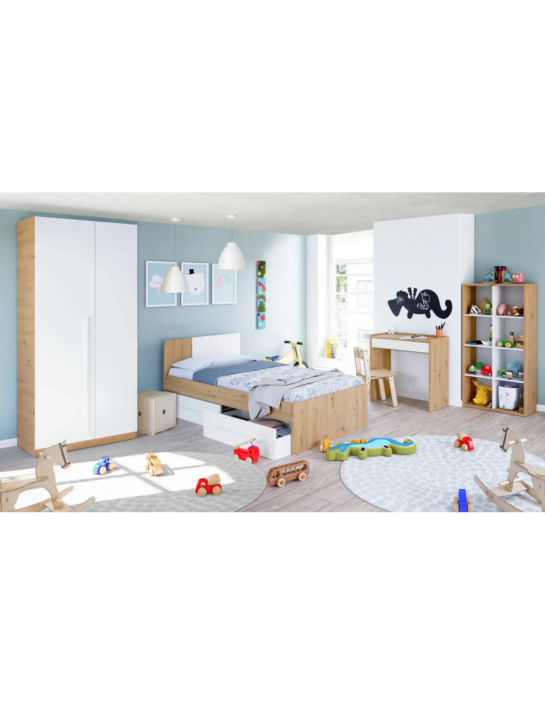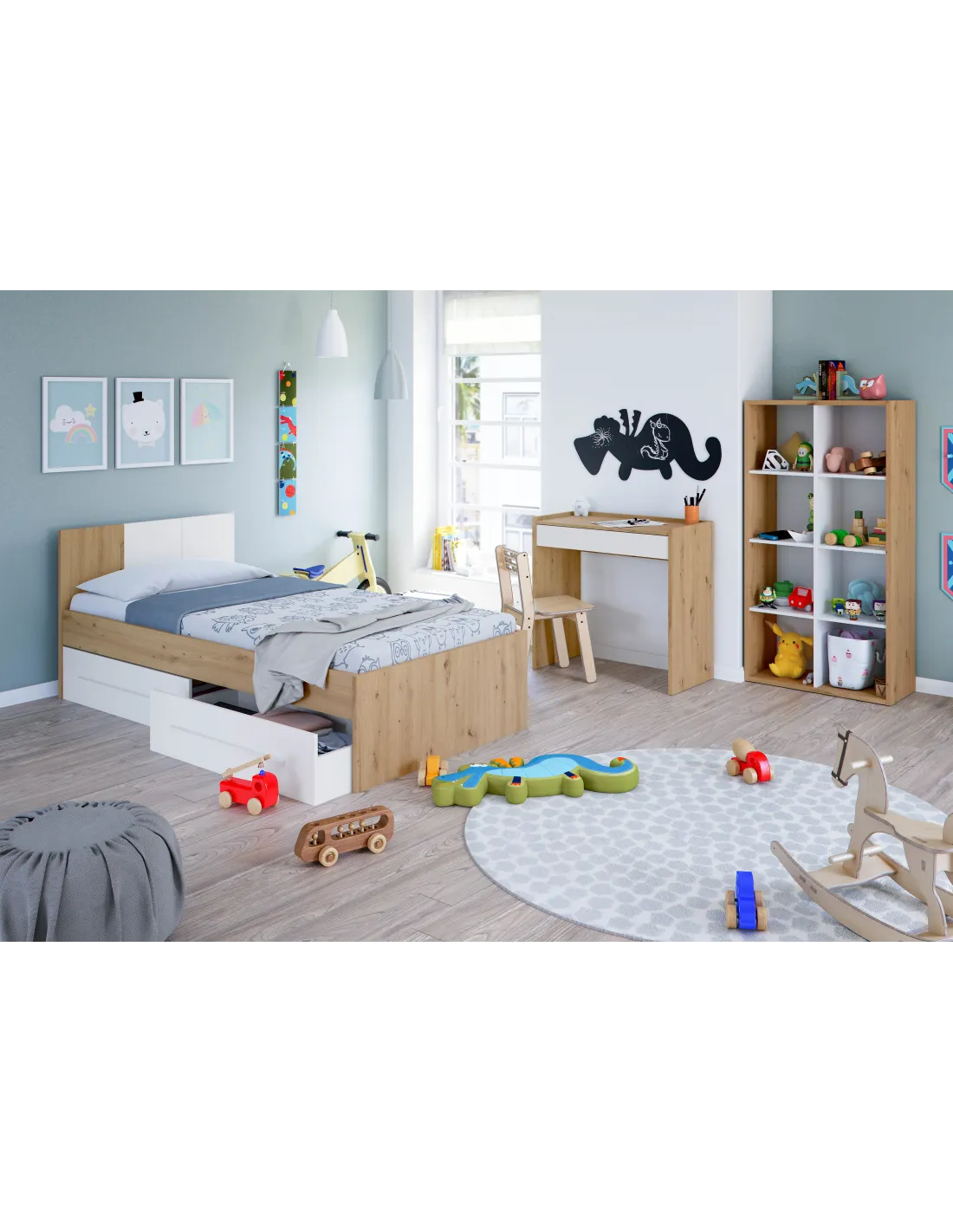 AMBIENT Cama juvenil con cabezal (SIN somier + 2 cajones)(para colchón de 190x90) ROBLE NODI/BL.ARTIK