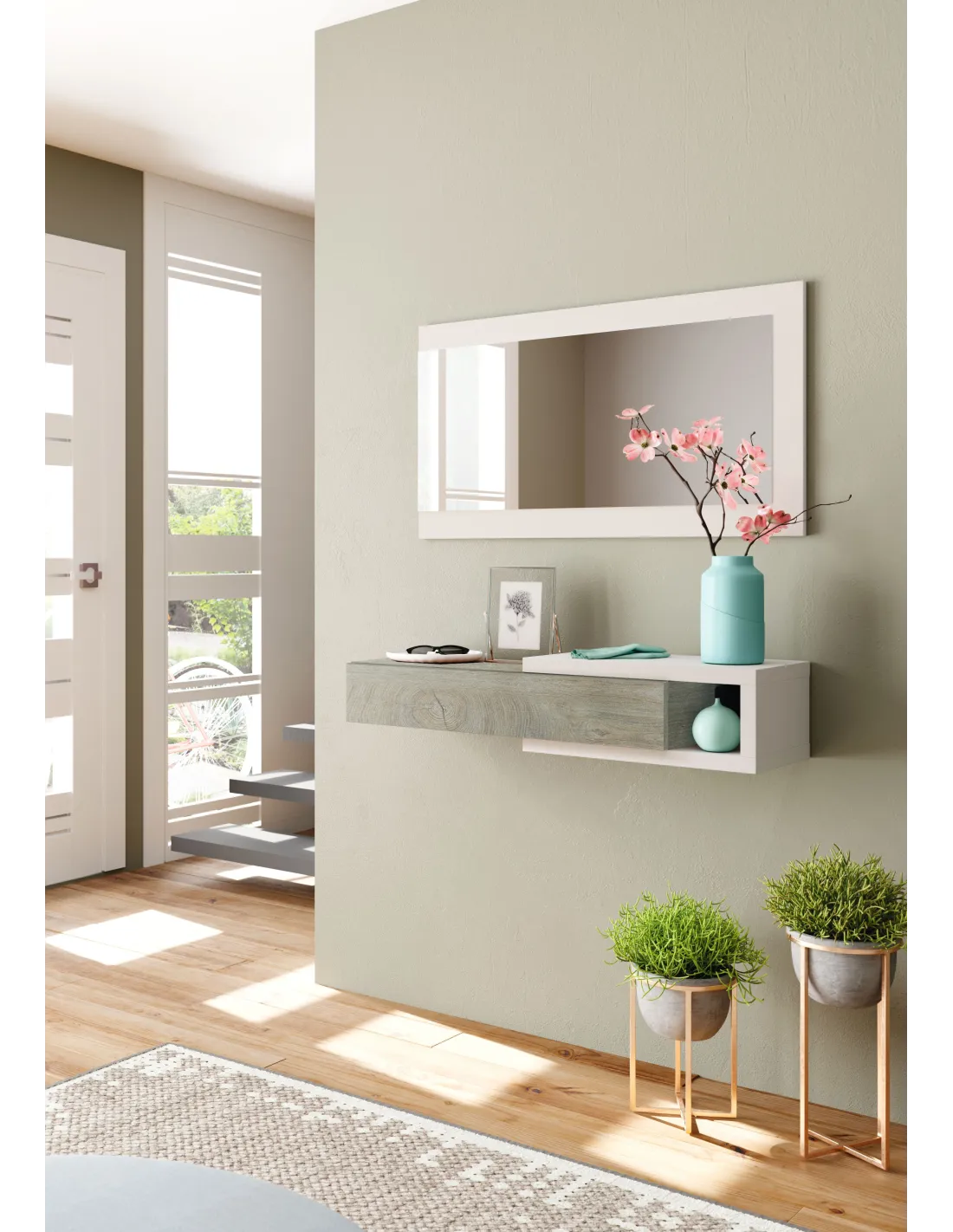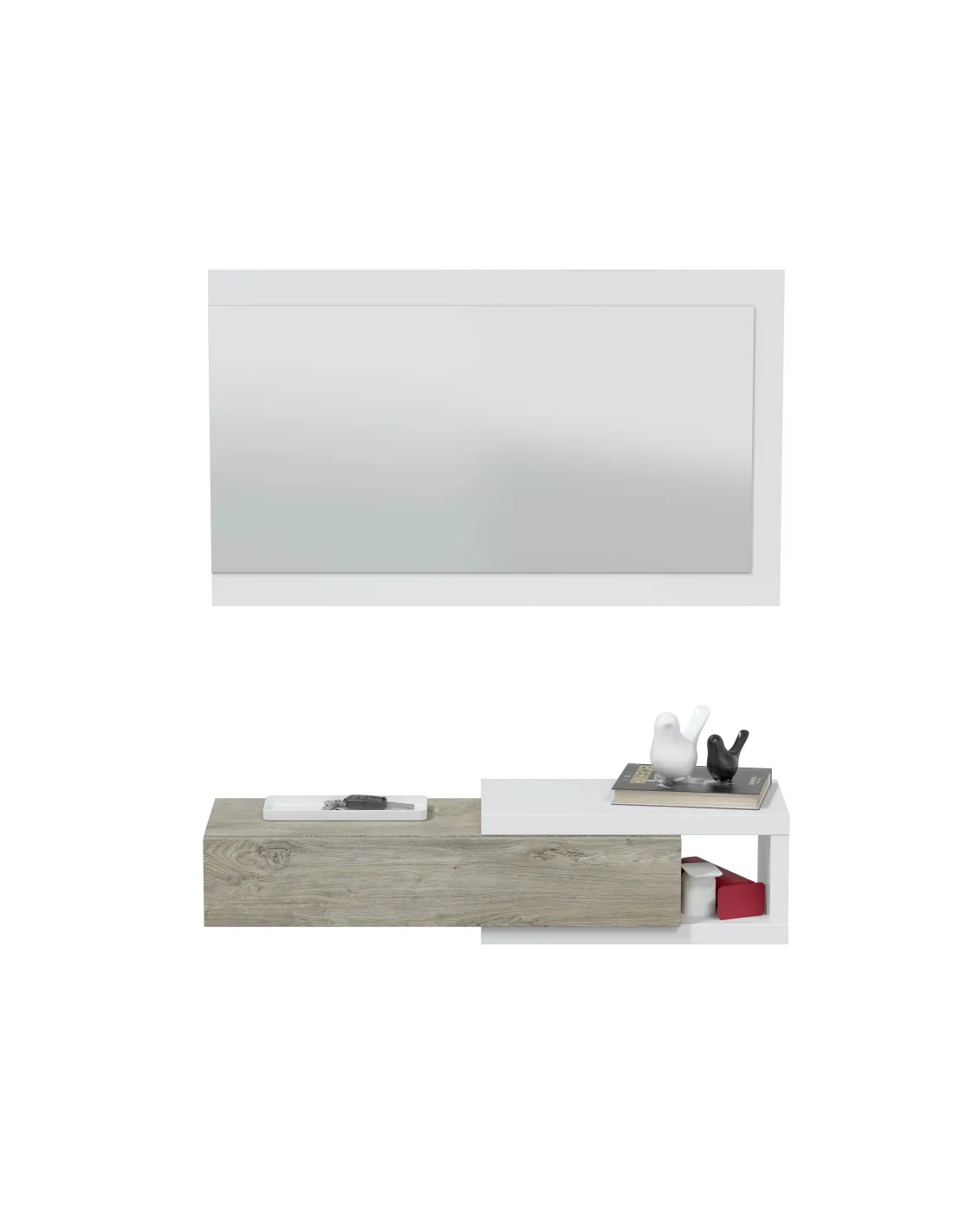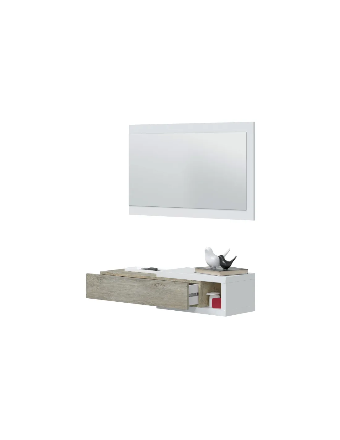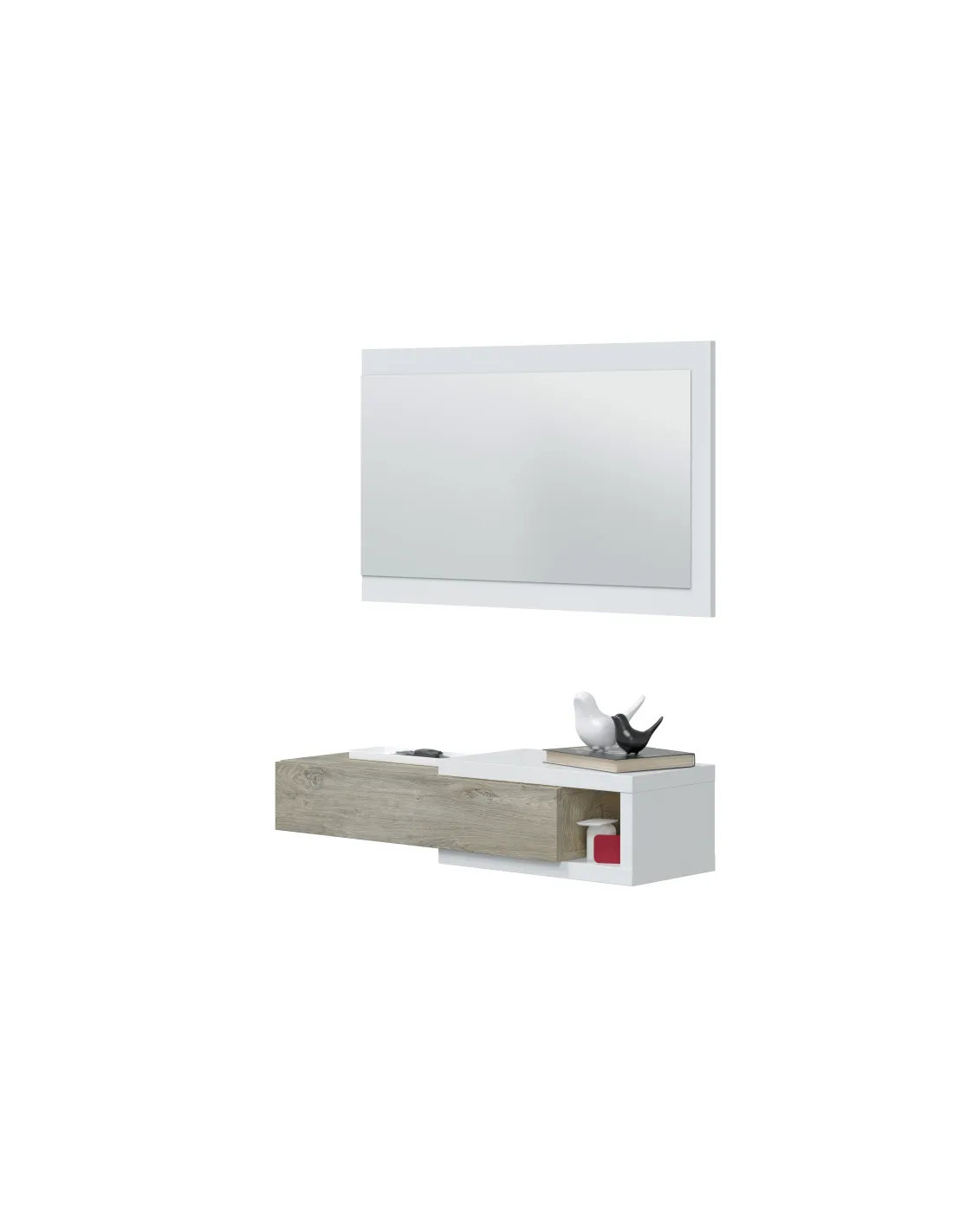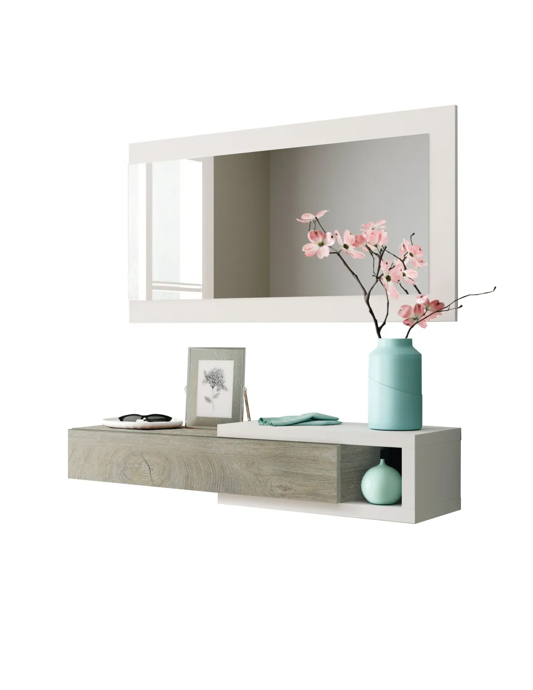 Recibidor ENZO compuesto por mueble con cajón y espejo, ideal para entradas modernas y funcionales.