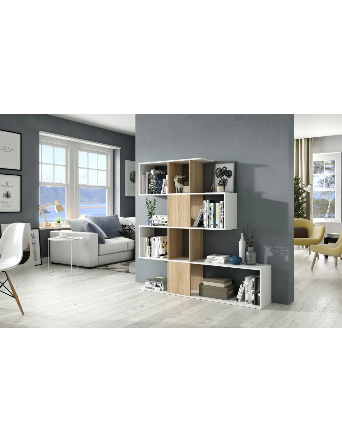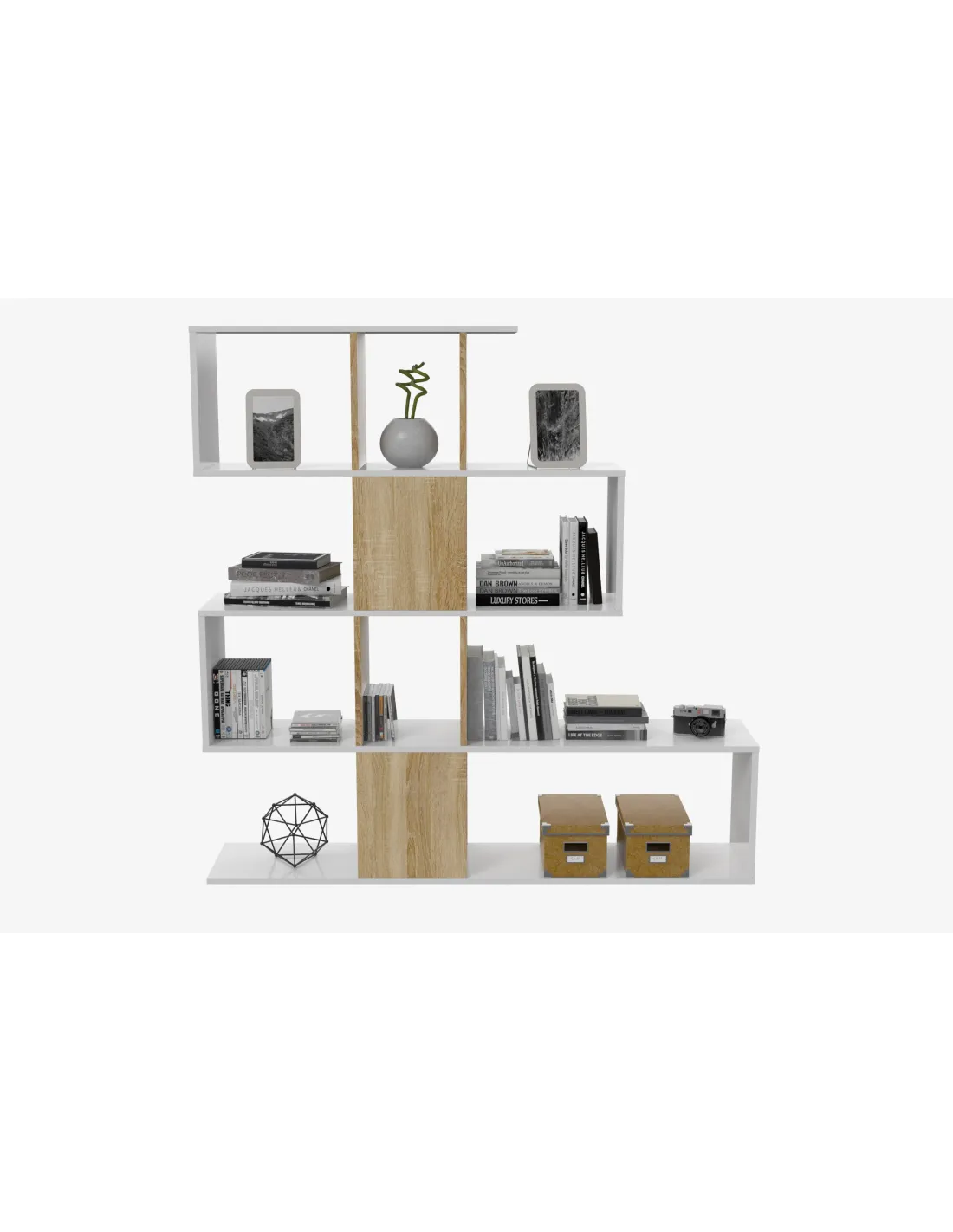 Estantería ELFOS PLUS decorativa con 4 estantes, perfecta para organizar libros y objetos decorativos en salón, despacho o dormitorio.