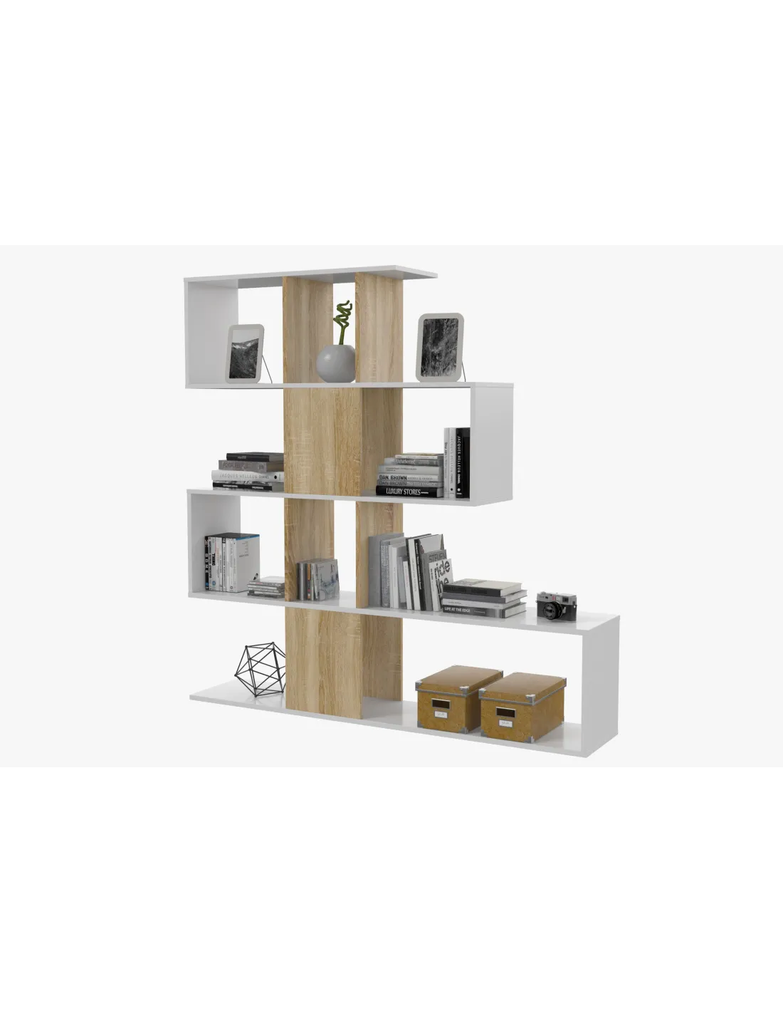 Estantería decorativa de 4 estantes con posibilidad de fijación a pared, ideal como separador de ambientes.