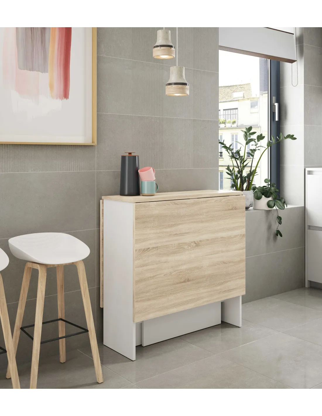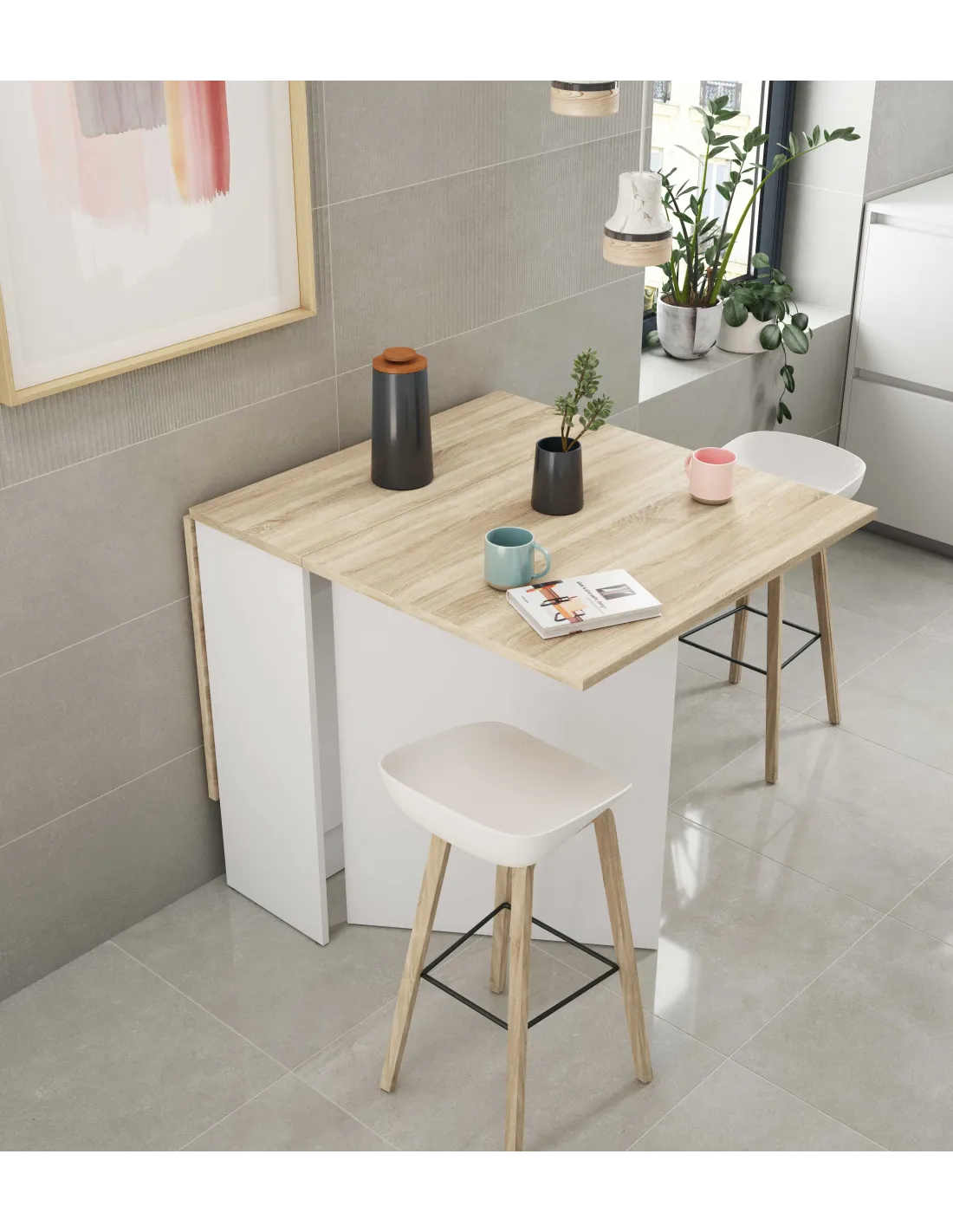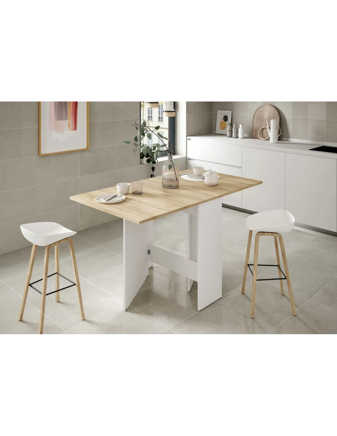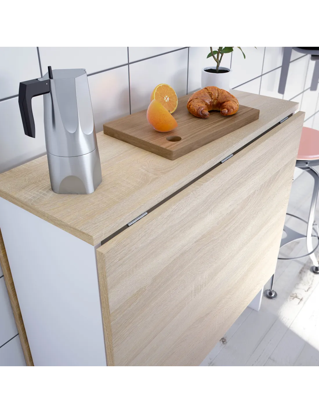 VOLARE Mesa cocina alas abatibles 31-140cm ROBLE CANADIAN/BLANCO ARTIK