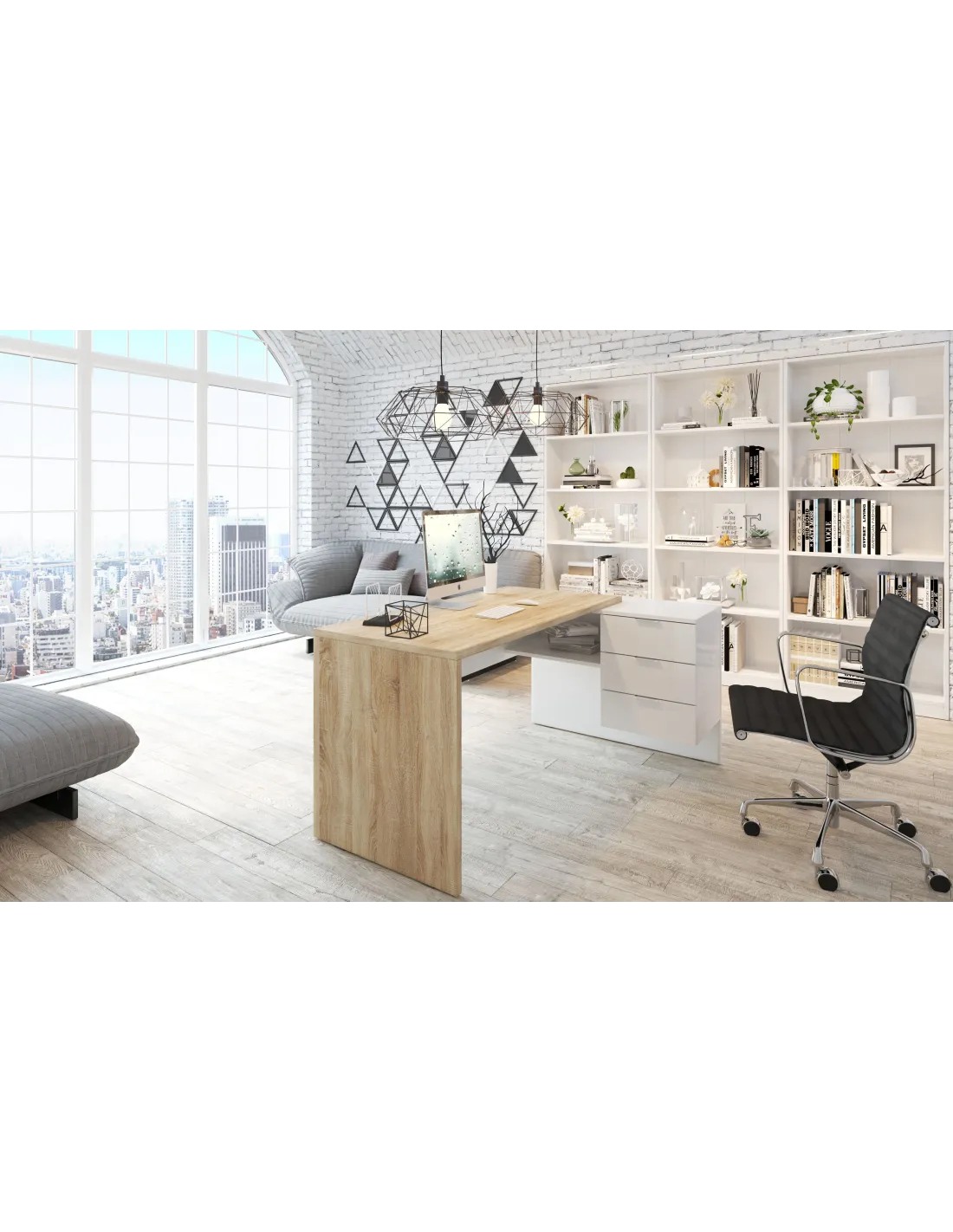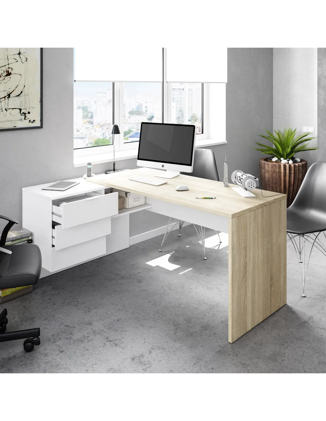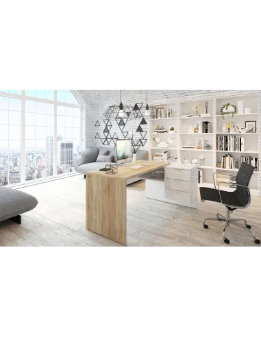 STYLE Mesa despacho con buc (reversible) ROBLE CANADIAN/BLANCO ARTIK