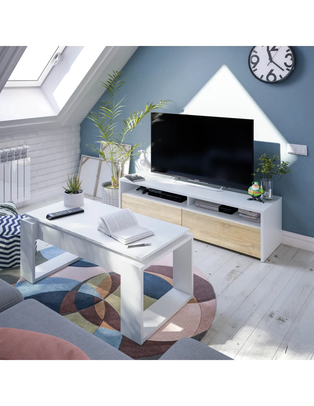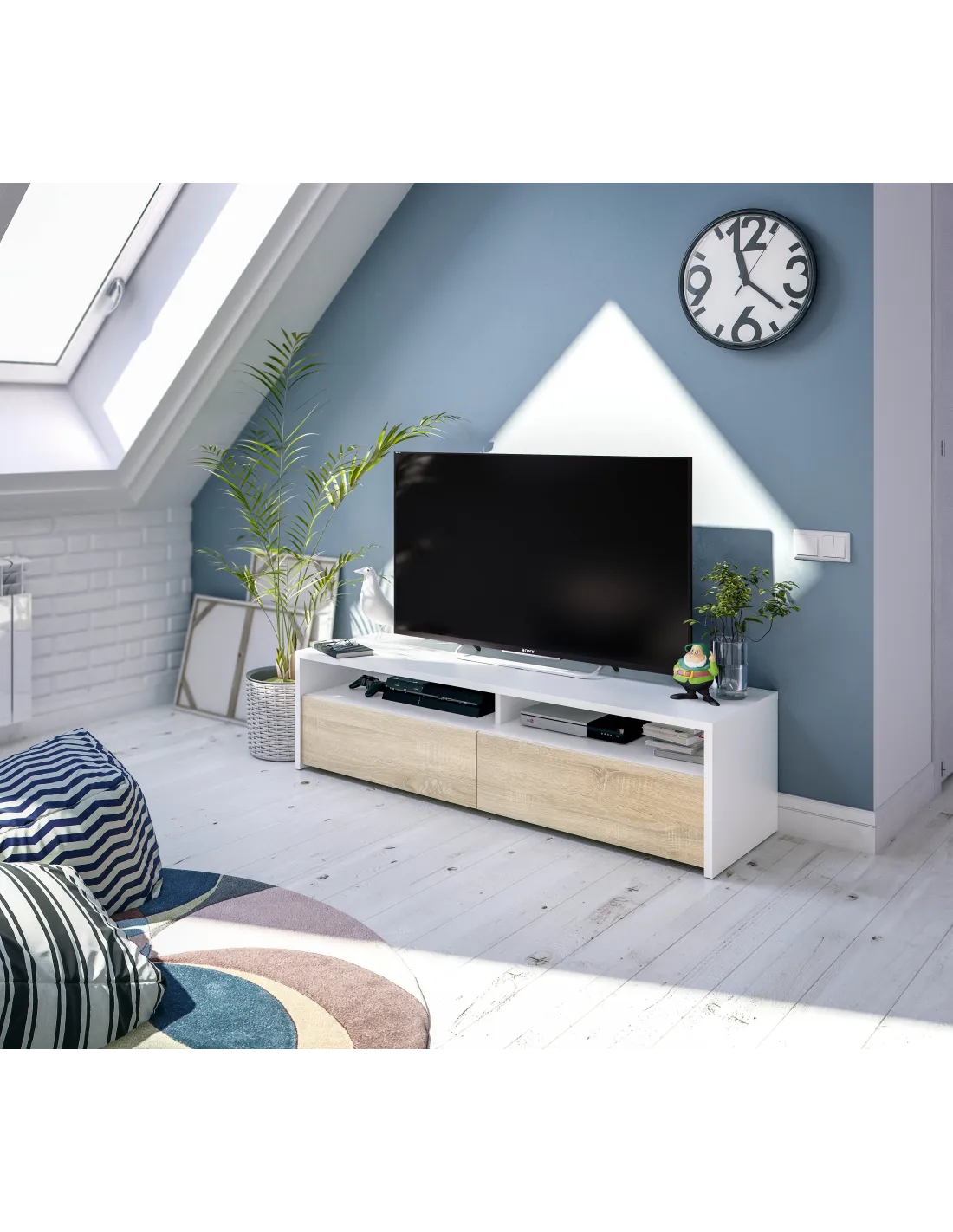 TOKIO Mueble TV 2 puertas BLANCO ARTIK/ROBLE CANADIAN