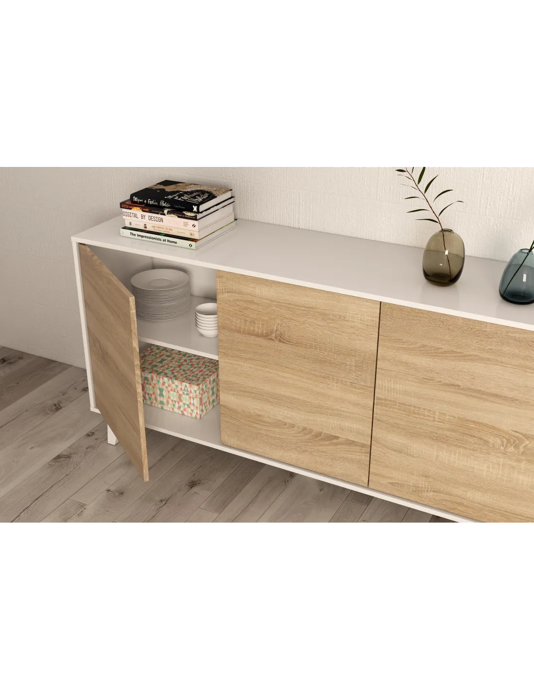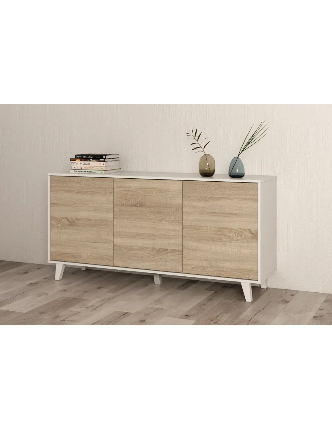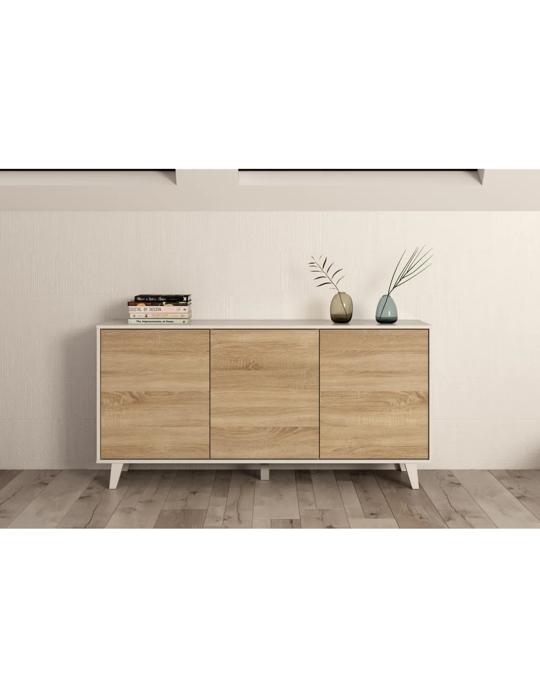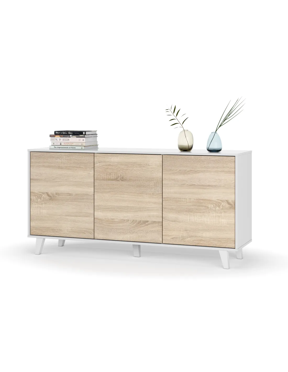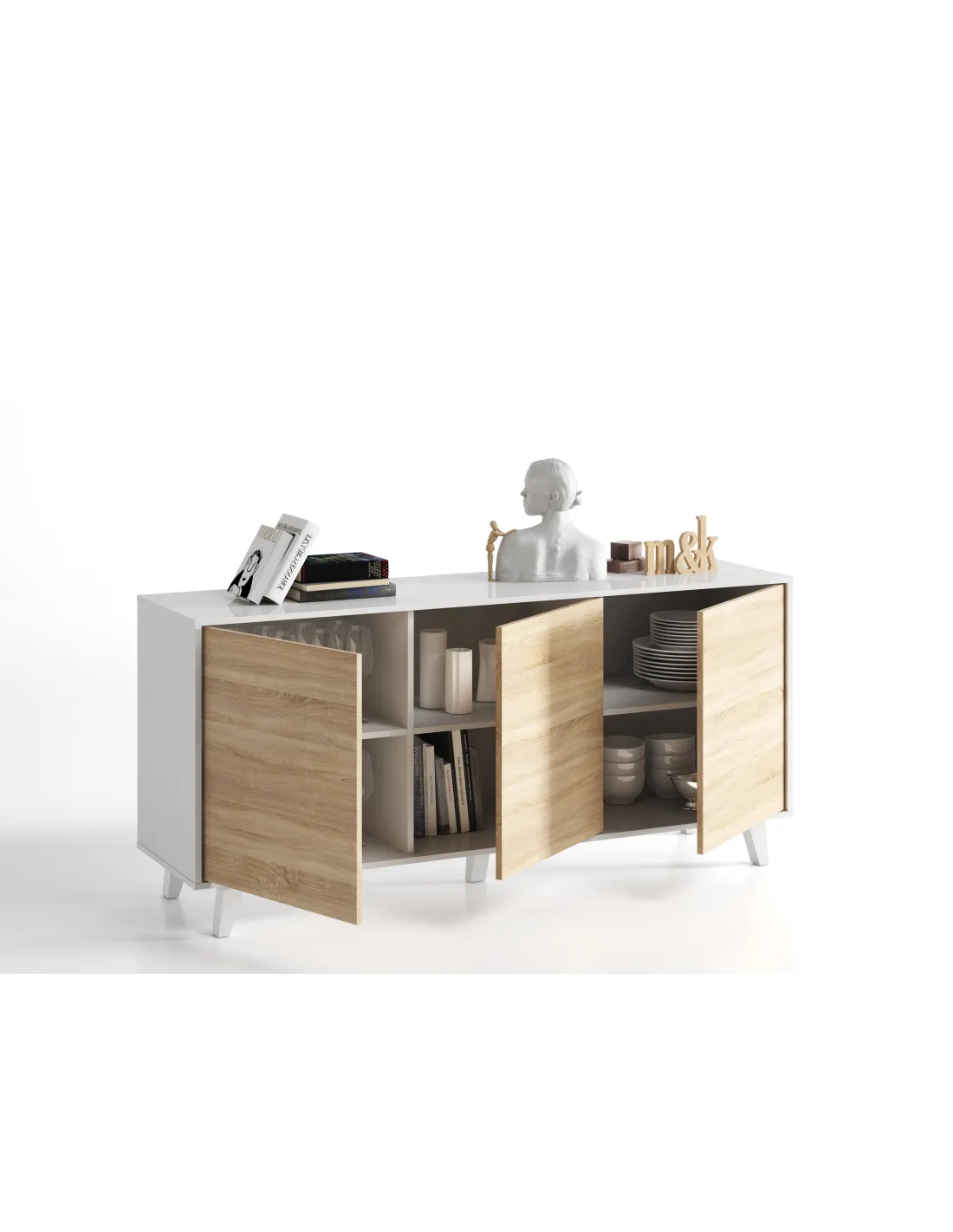 Aparador STYLUS PLUS de 3 puertas con estantes interiores y patas, perfecto para aportar almacenaje y estilo al salón o comedor.