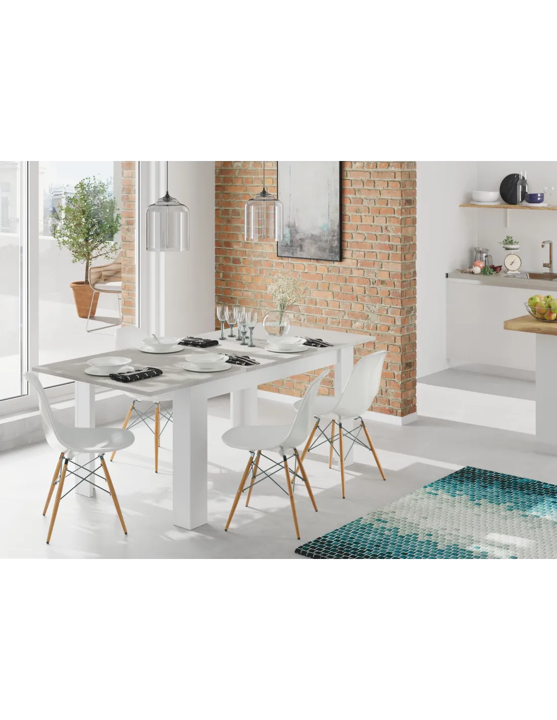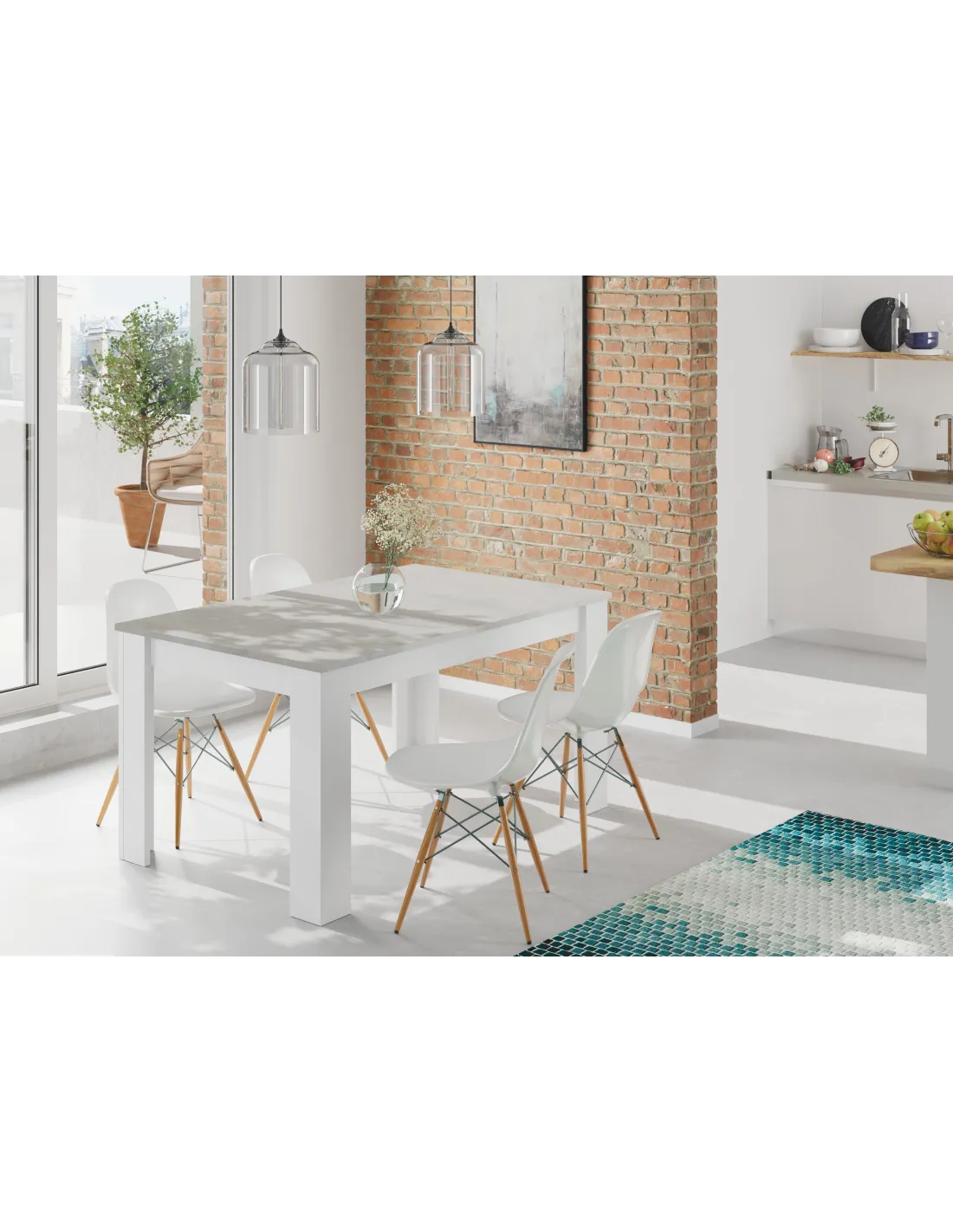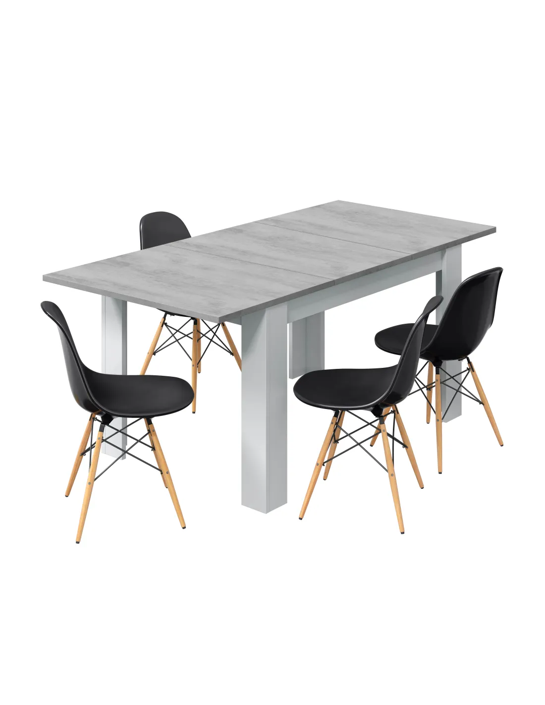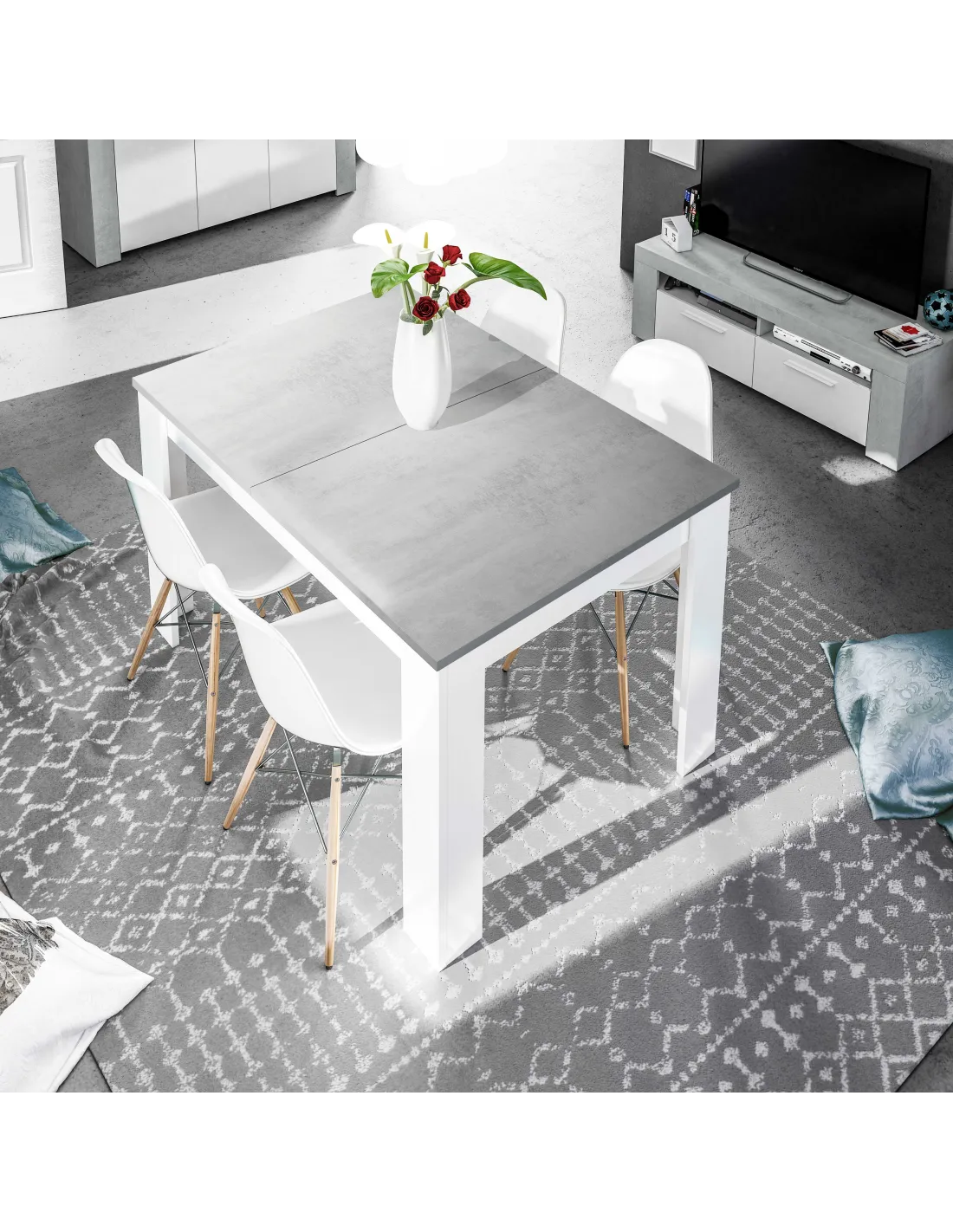 PRÁCTICO Mesa de comedor 90x140-190 EXTENSIBLE CEMENTO/ BL. ARTIK