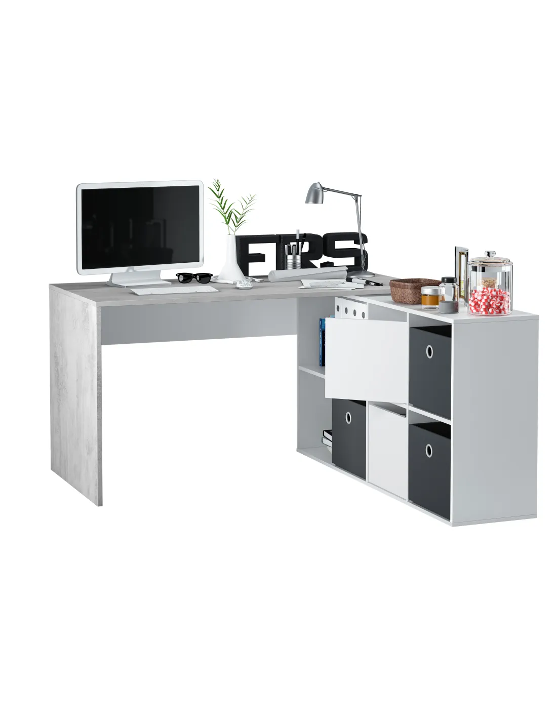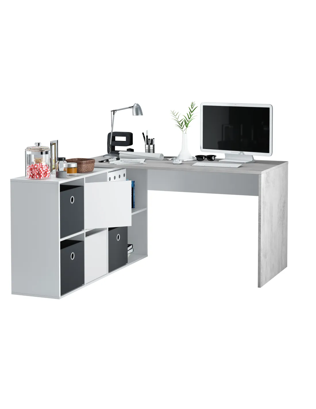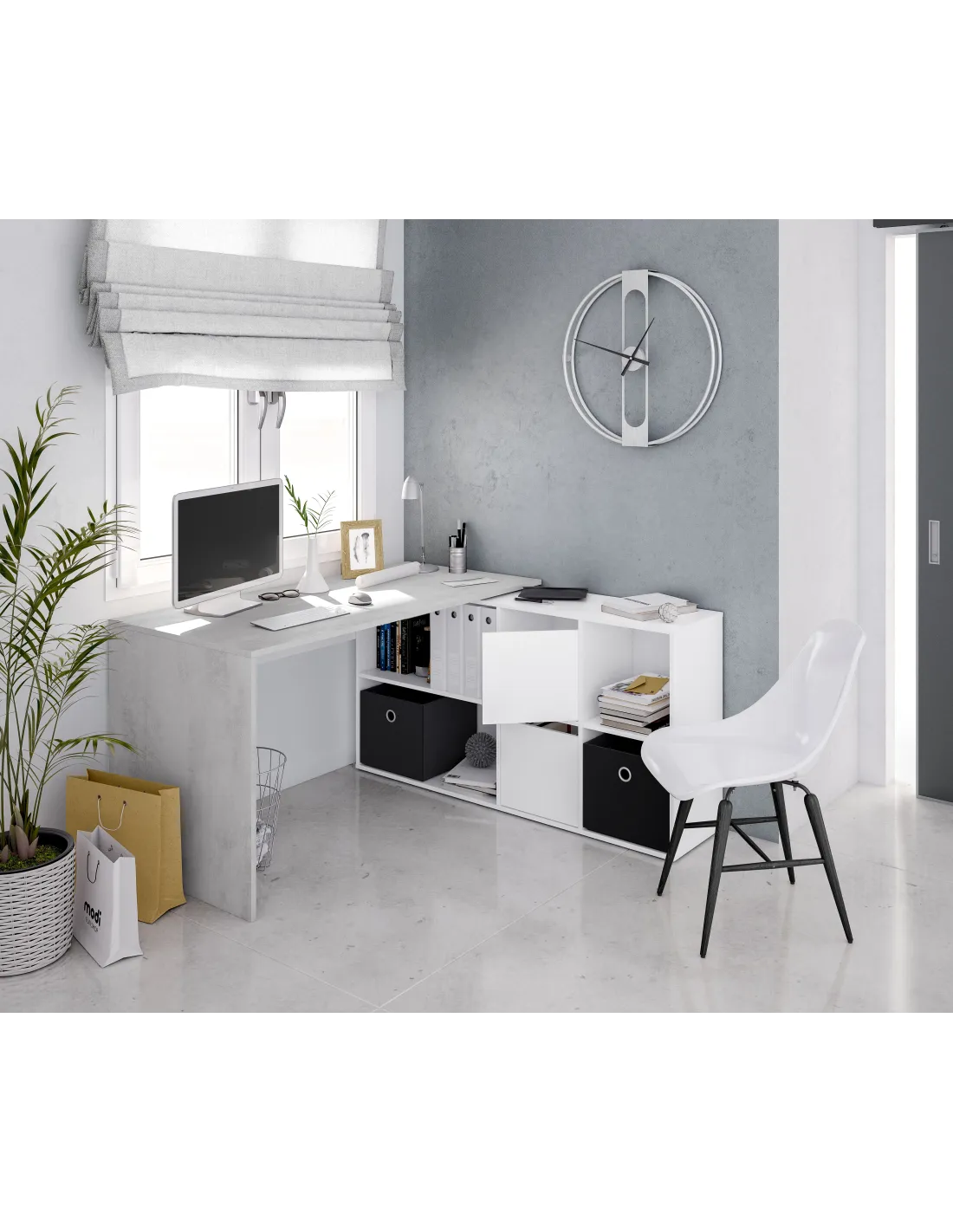 OFFICE Mesa escritorio con buc BLANCO ARTIK/CEMENTO