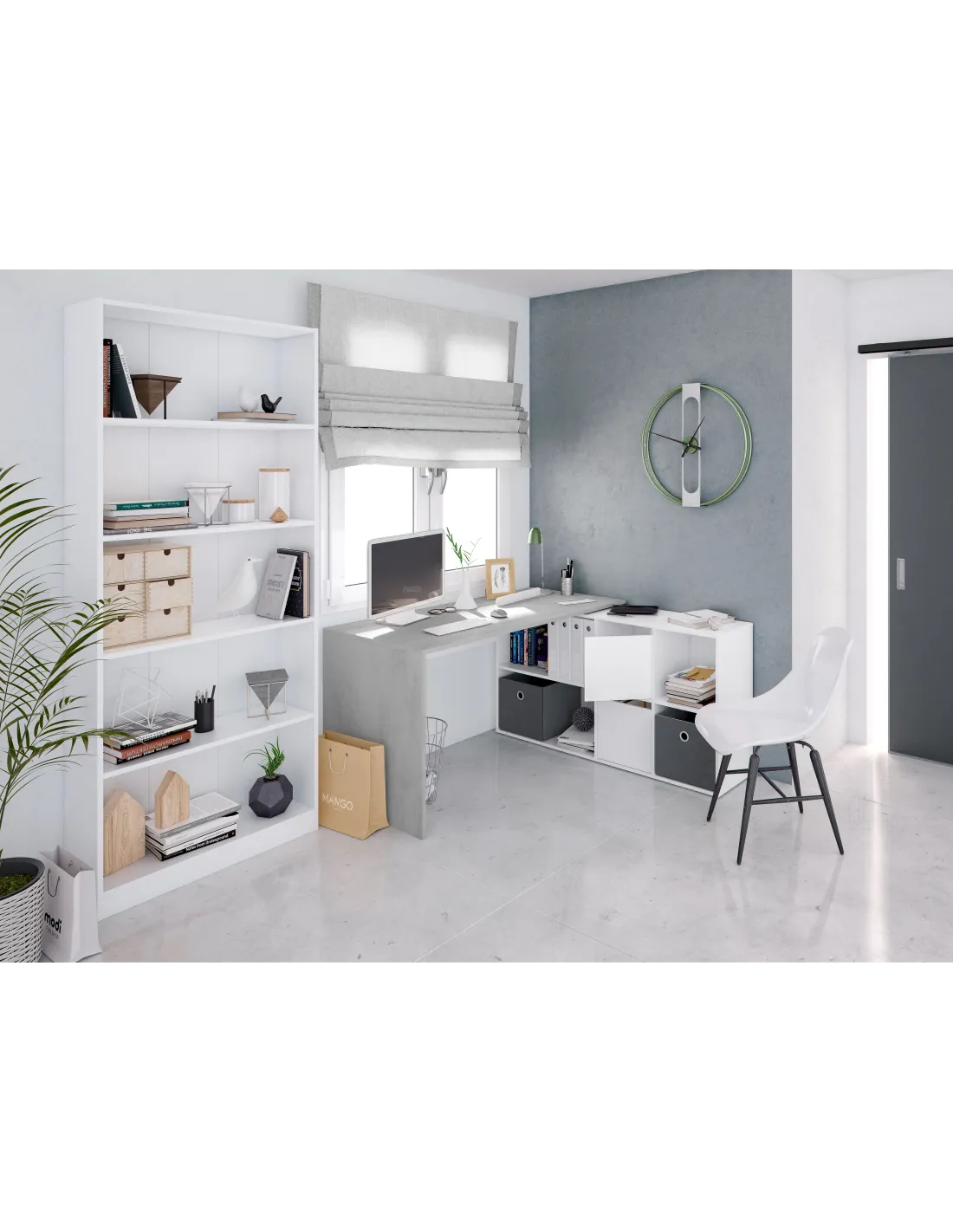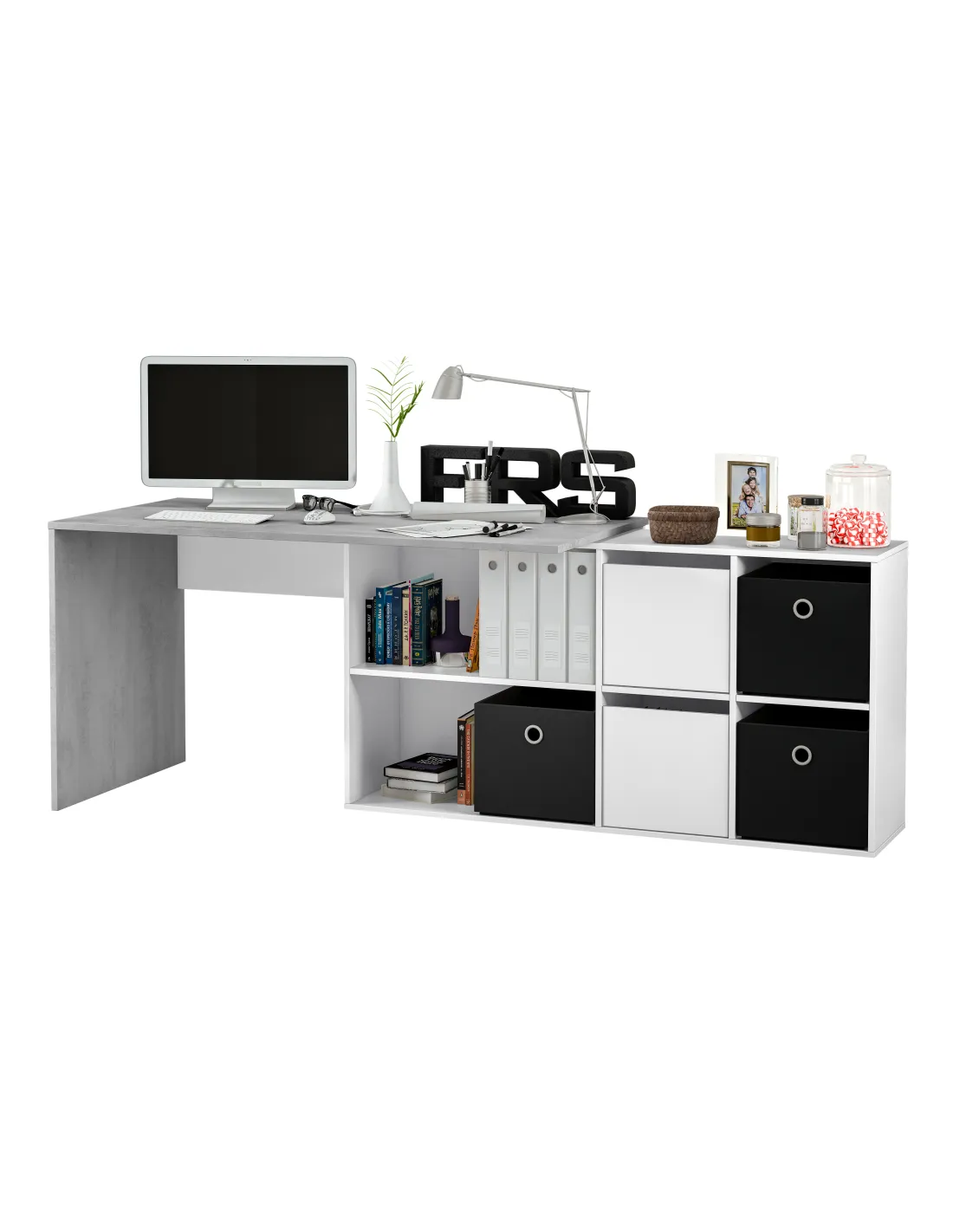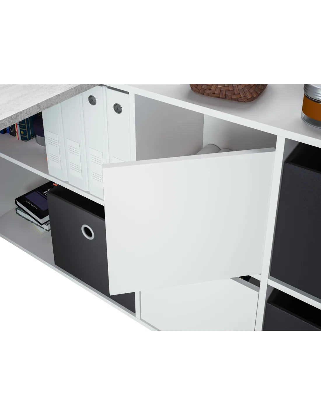 OFFICE Mesa escritorio con buc BLANCO ARTIK/CEMENTO