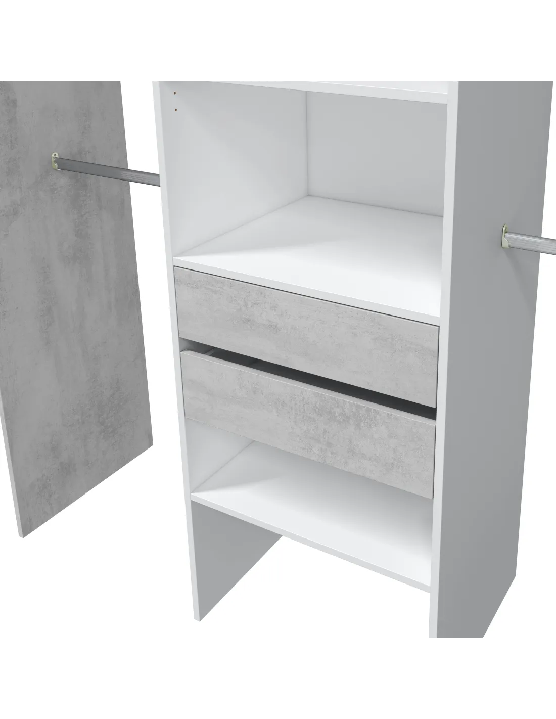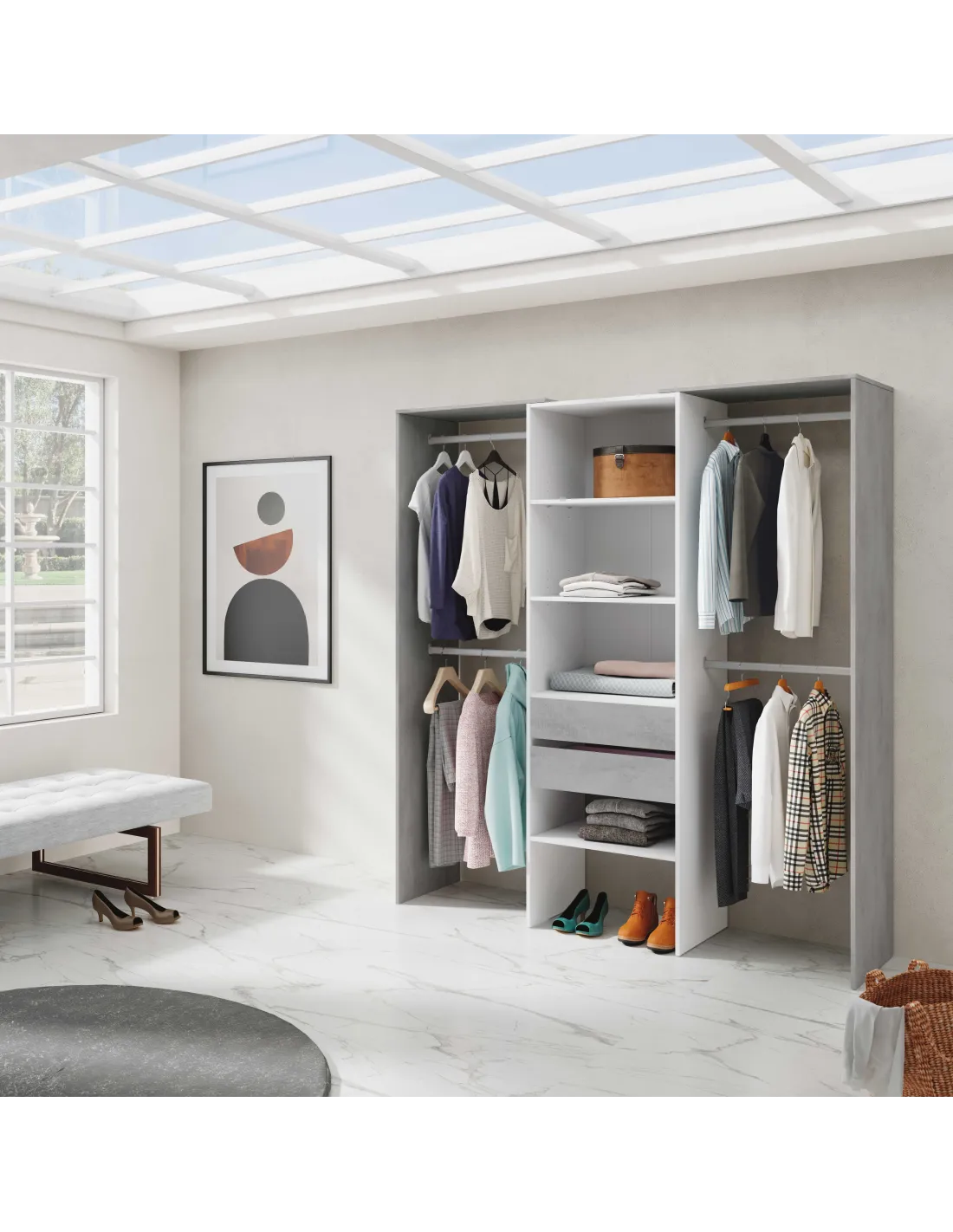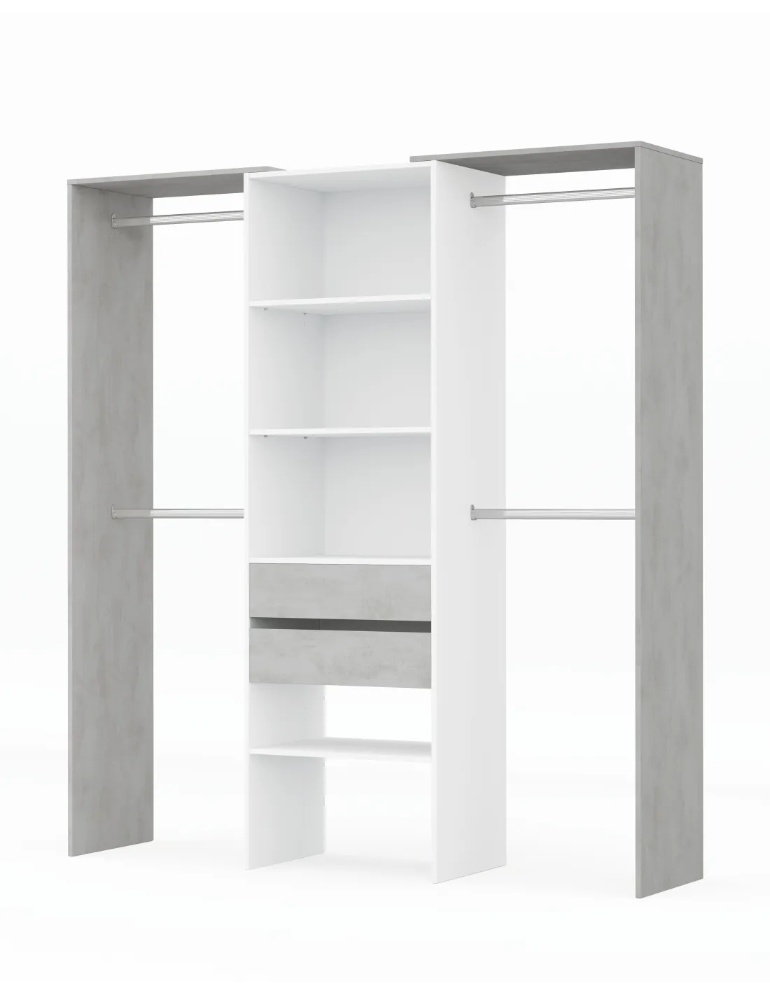 TIDY Armario-Vestidor con estantería 2,02x60cm + 4 barras BLANCO ARTIK/CEMENTO