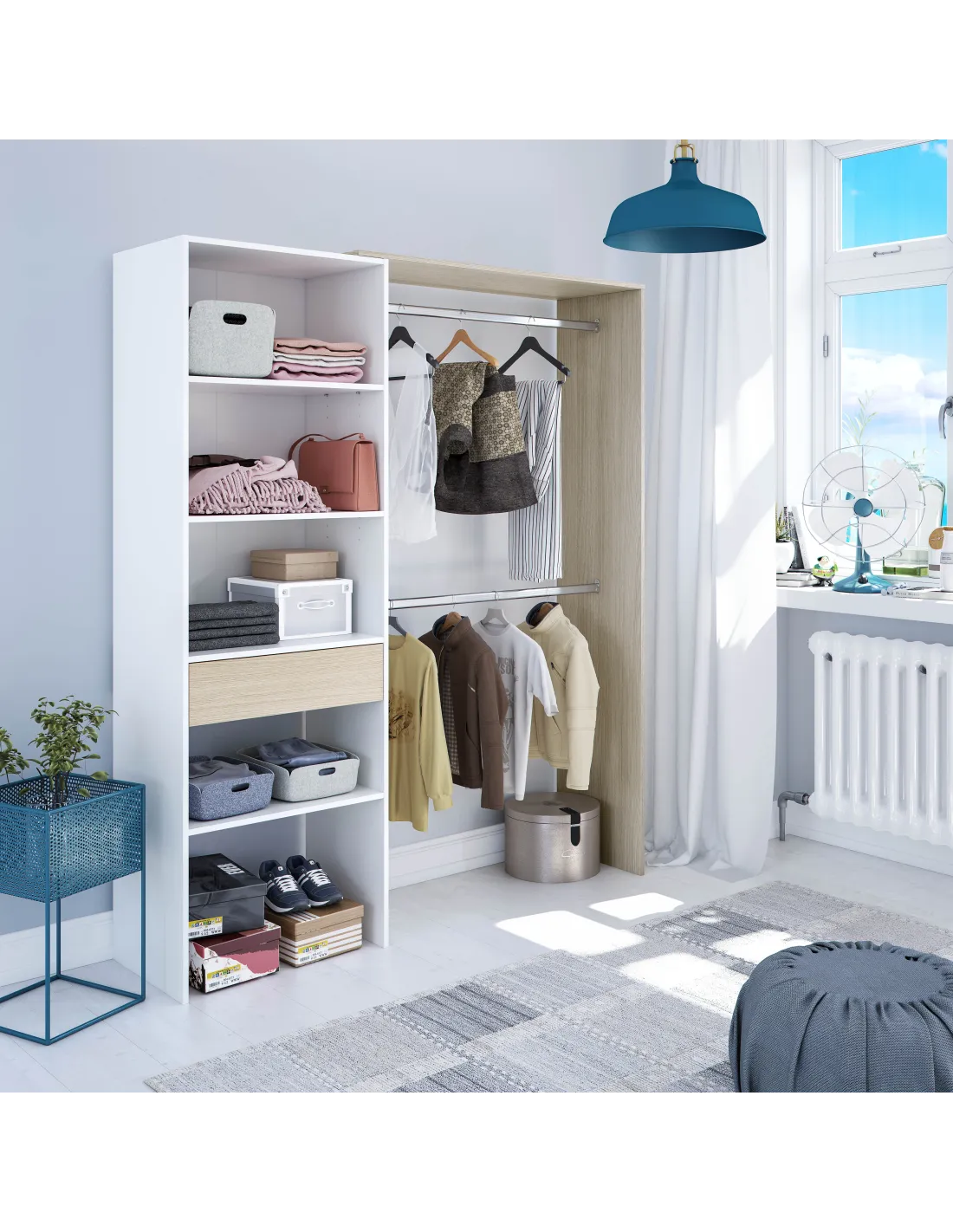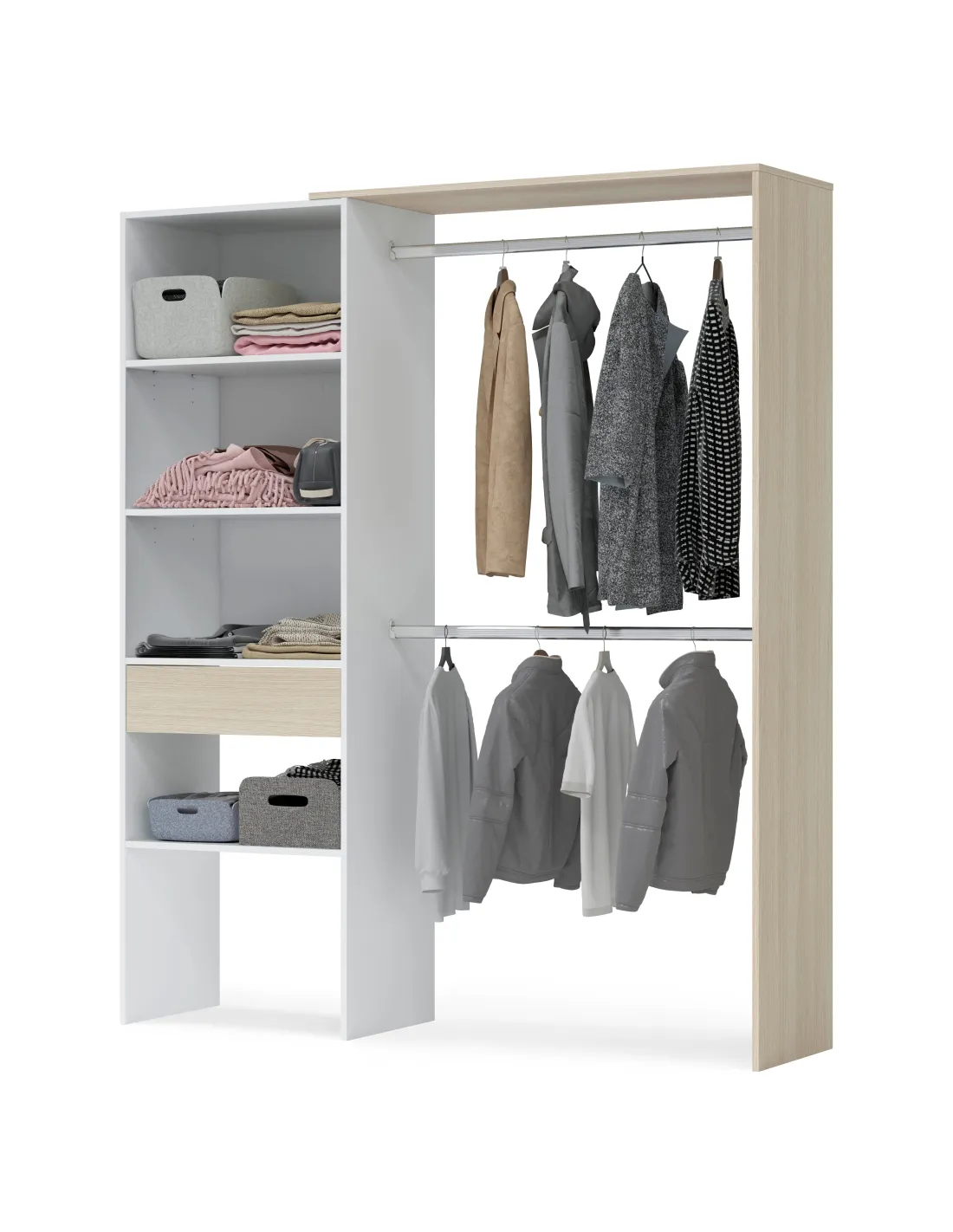 Armario-vestidor con 1 cajón y 2 barras de colgar