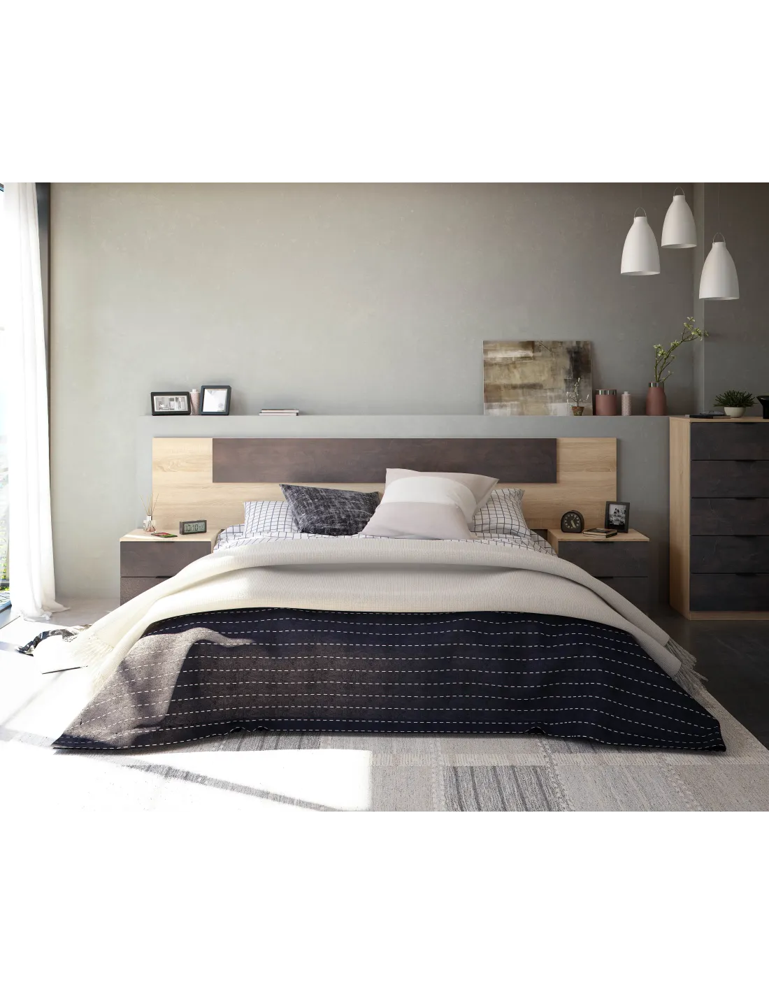 Cabezal para cama de 150cm con dos mesitas de dos cajones cada una.