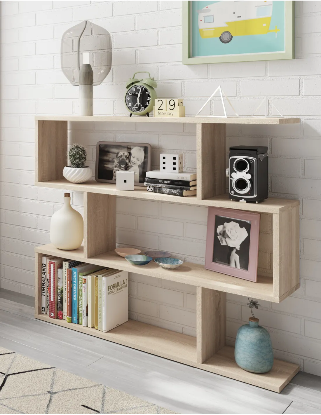 Estantería decorativa y funcional, perfecta para organizar libros y objetos decorativos en el salón, dormitorio o despacho.