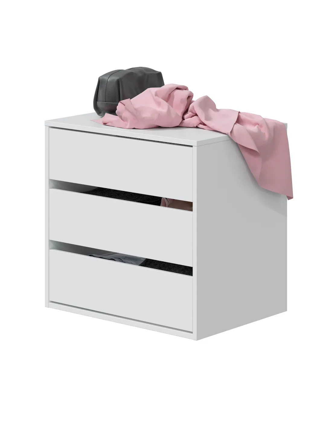Cajonera con tres cajones diseñada para colocar en el interior del armario, ideal para organizar ropa y accesorios de forma práctica y ordenada.
