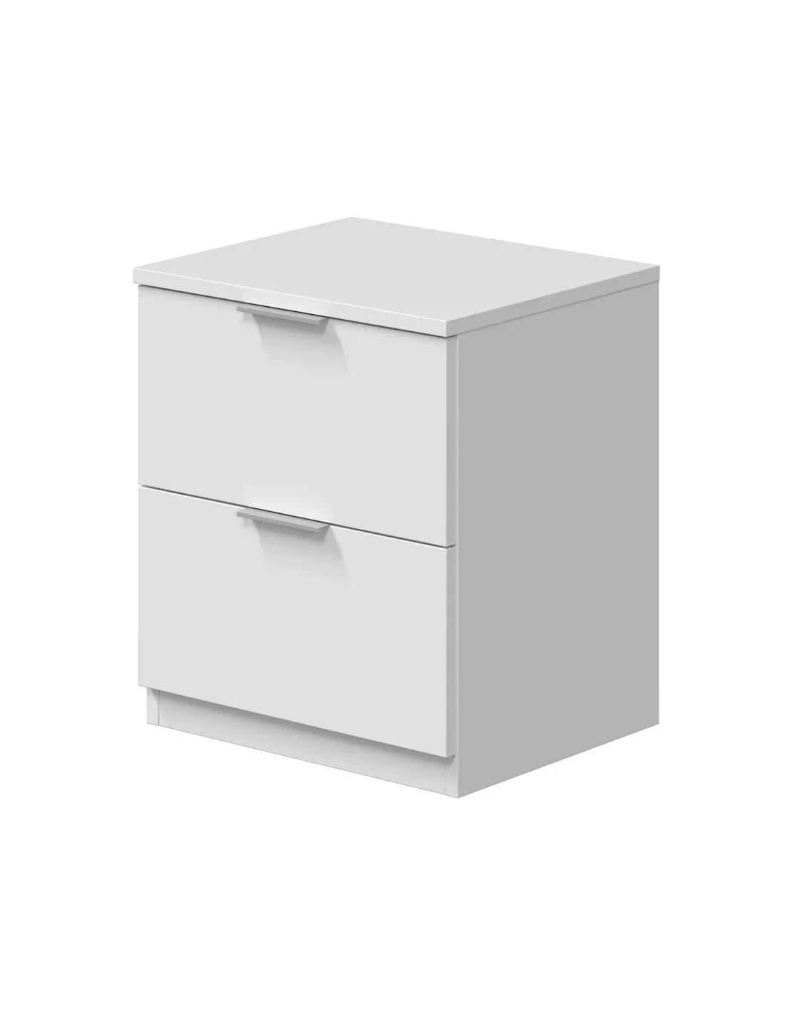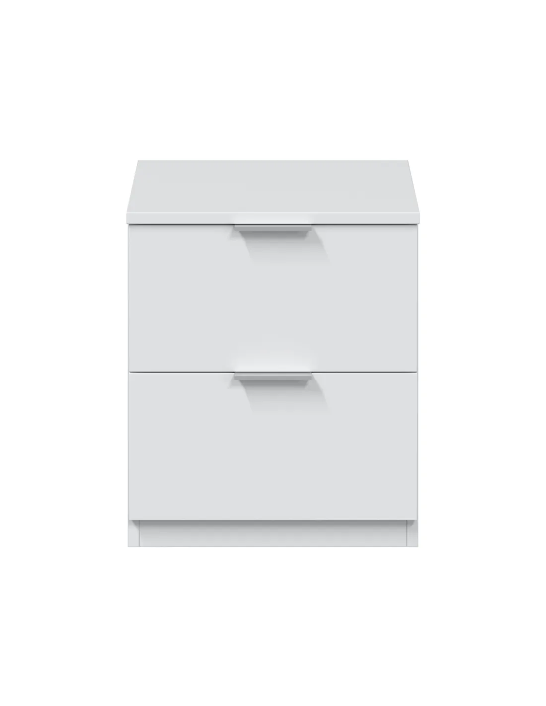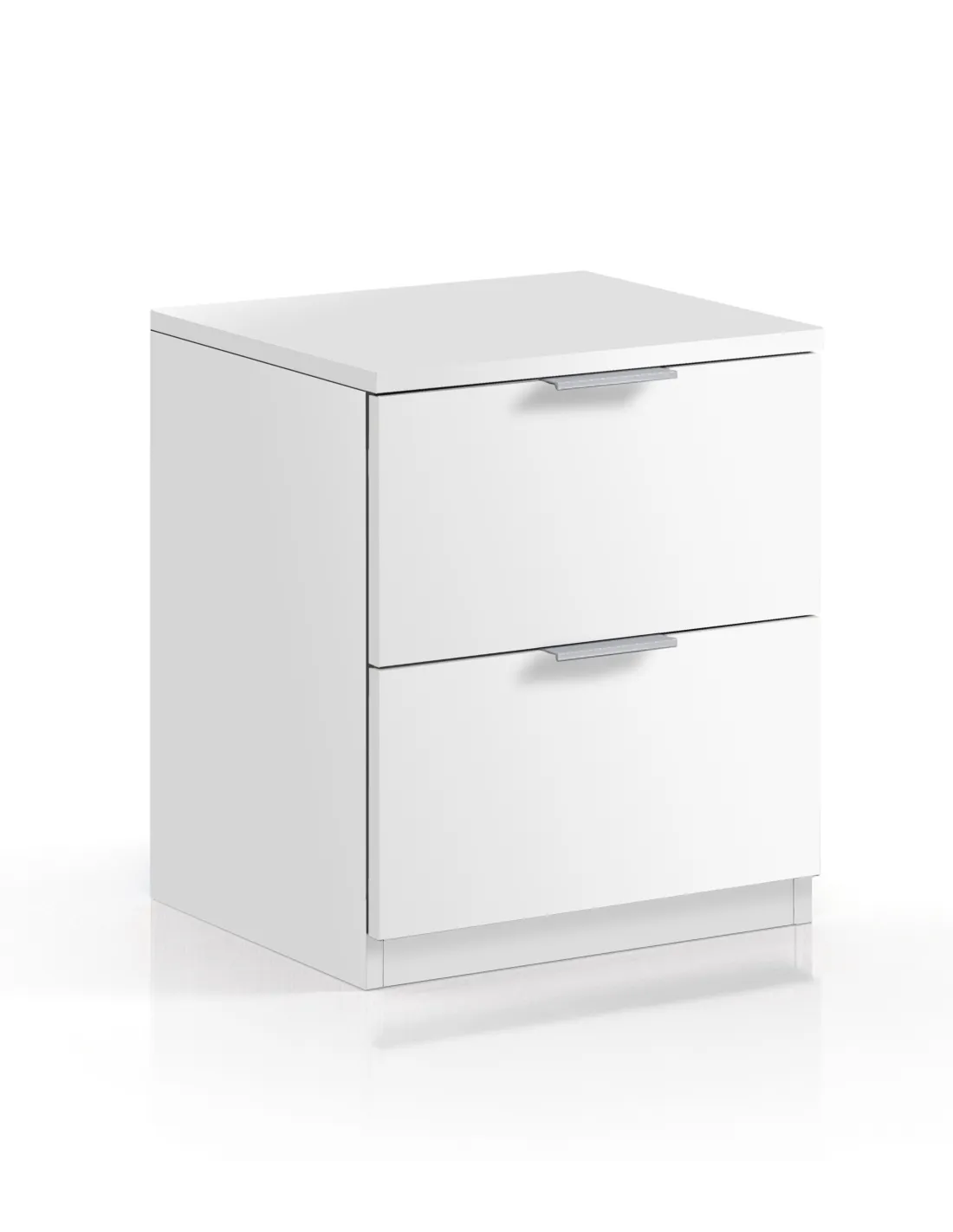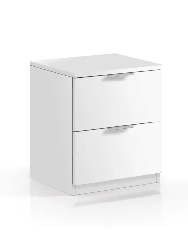 Mesita con dos cajones, ideal como complemento para el dormitorio, ofreciendo espacio práctico para organizar objetos personales.