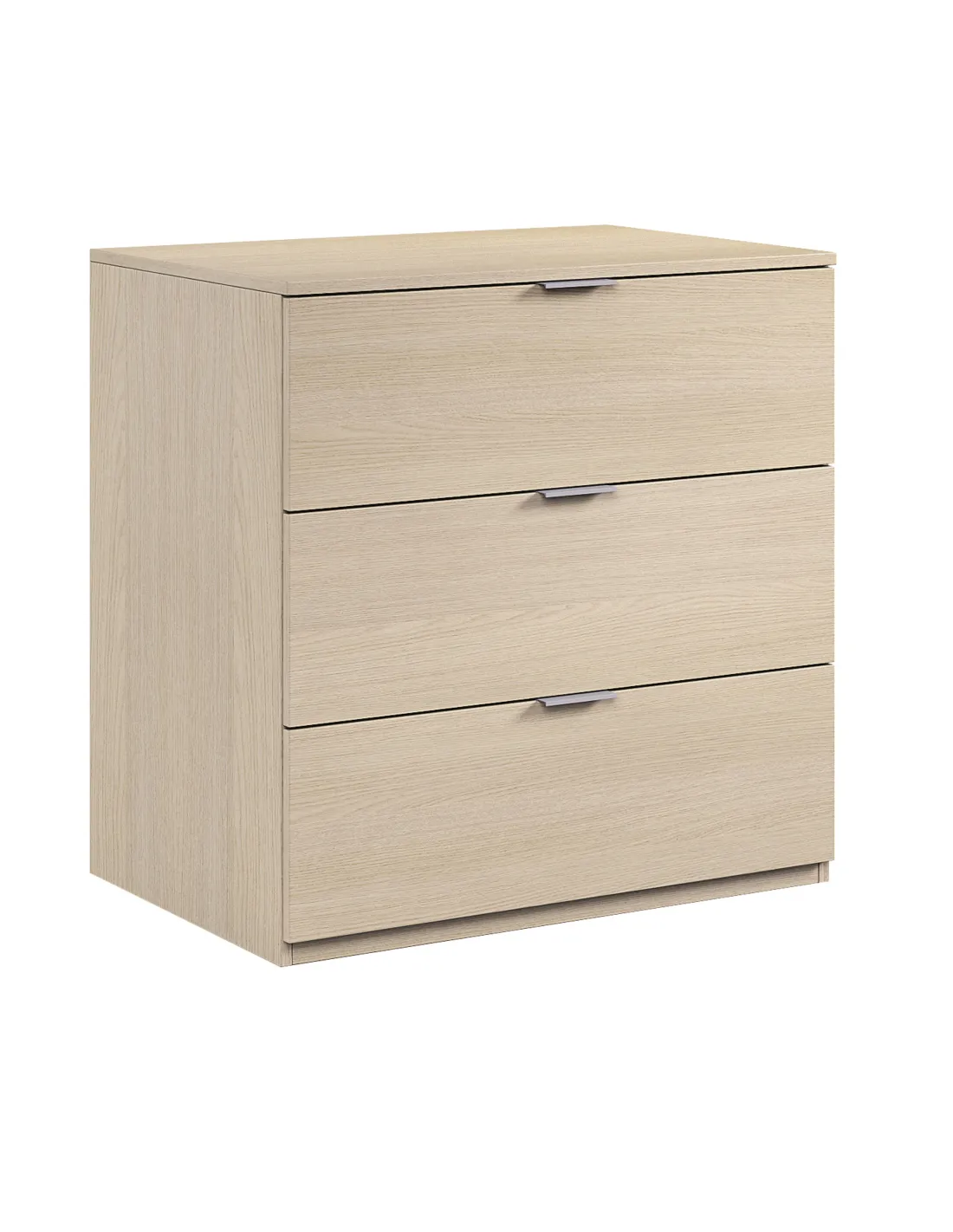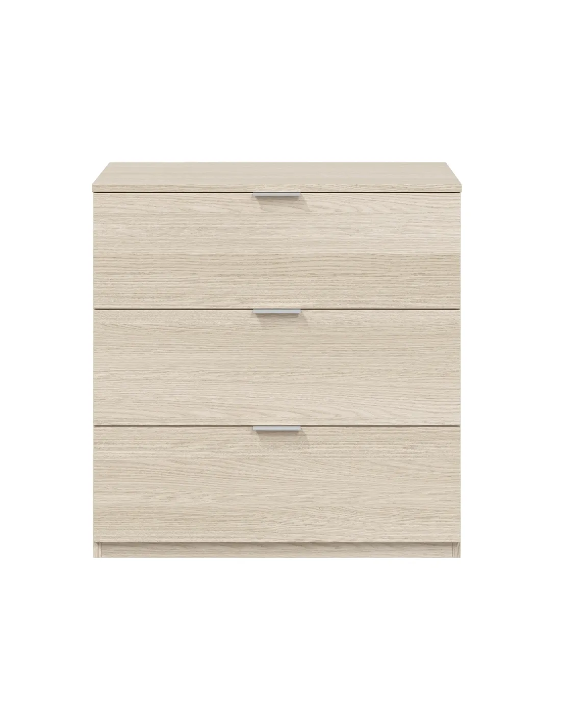 Cómoda con tres cajones, ideal para organizar ropa y complementos en el dormitorio, aportando capacidad de almacenaje y funcionalidad.