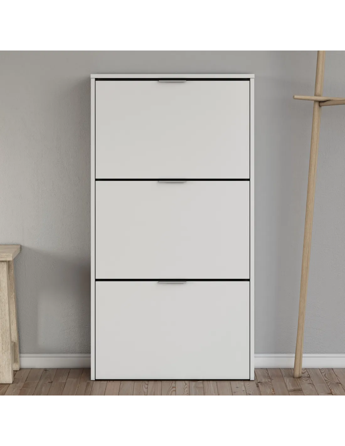 Zapatero de 3 puertas abatibles con capacidad aproximada para 18 pares de zapatos, ideal para mantener el calzado organizado en espacios reducidos.