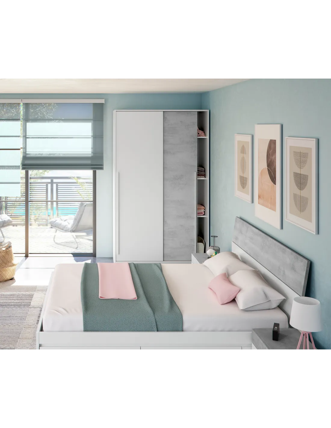 NOON PLUS Armario 2p correderas BLANCO ARTIK/CEMENTO