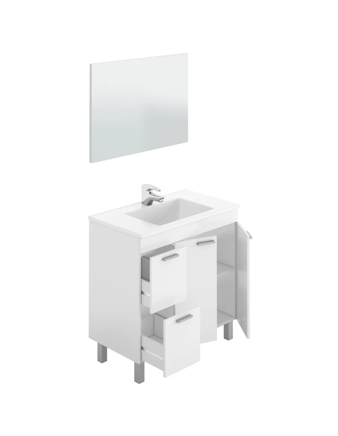 AKTIVA Mueble lavabo 2p+2c + espejo + LAVABO BLANCO BRILLO