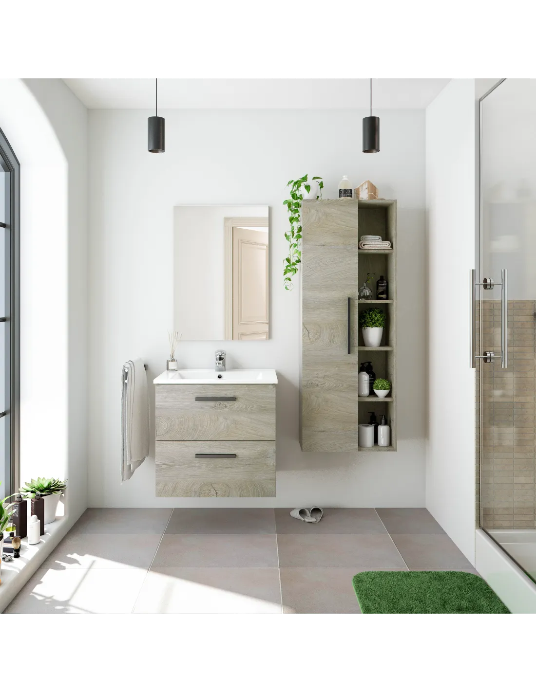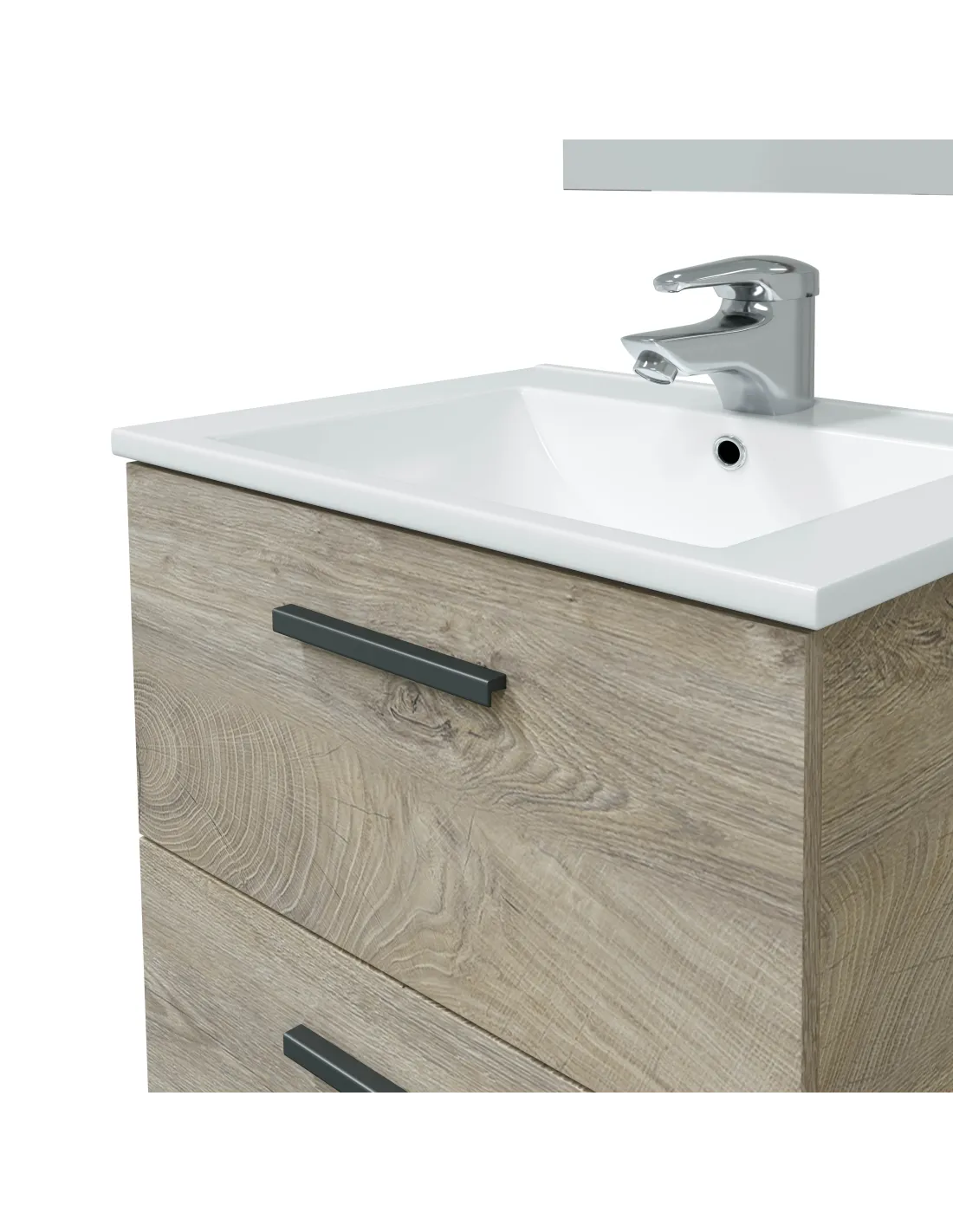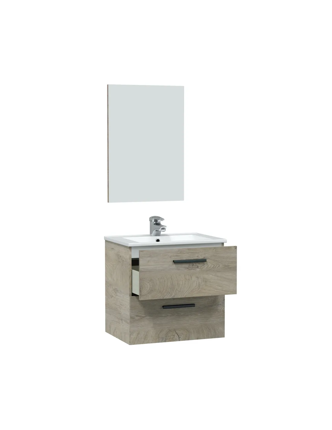 NOA 60 Mueble 60 2c susp.+ espejo + LAVABO ROBLE ALASKA