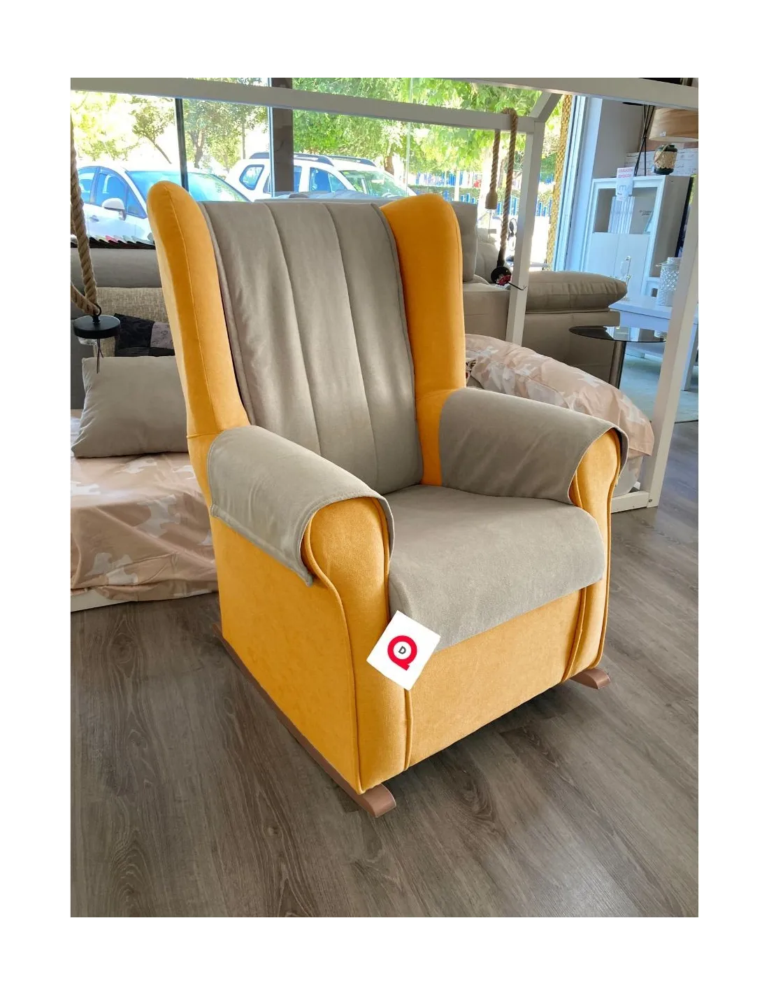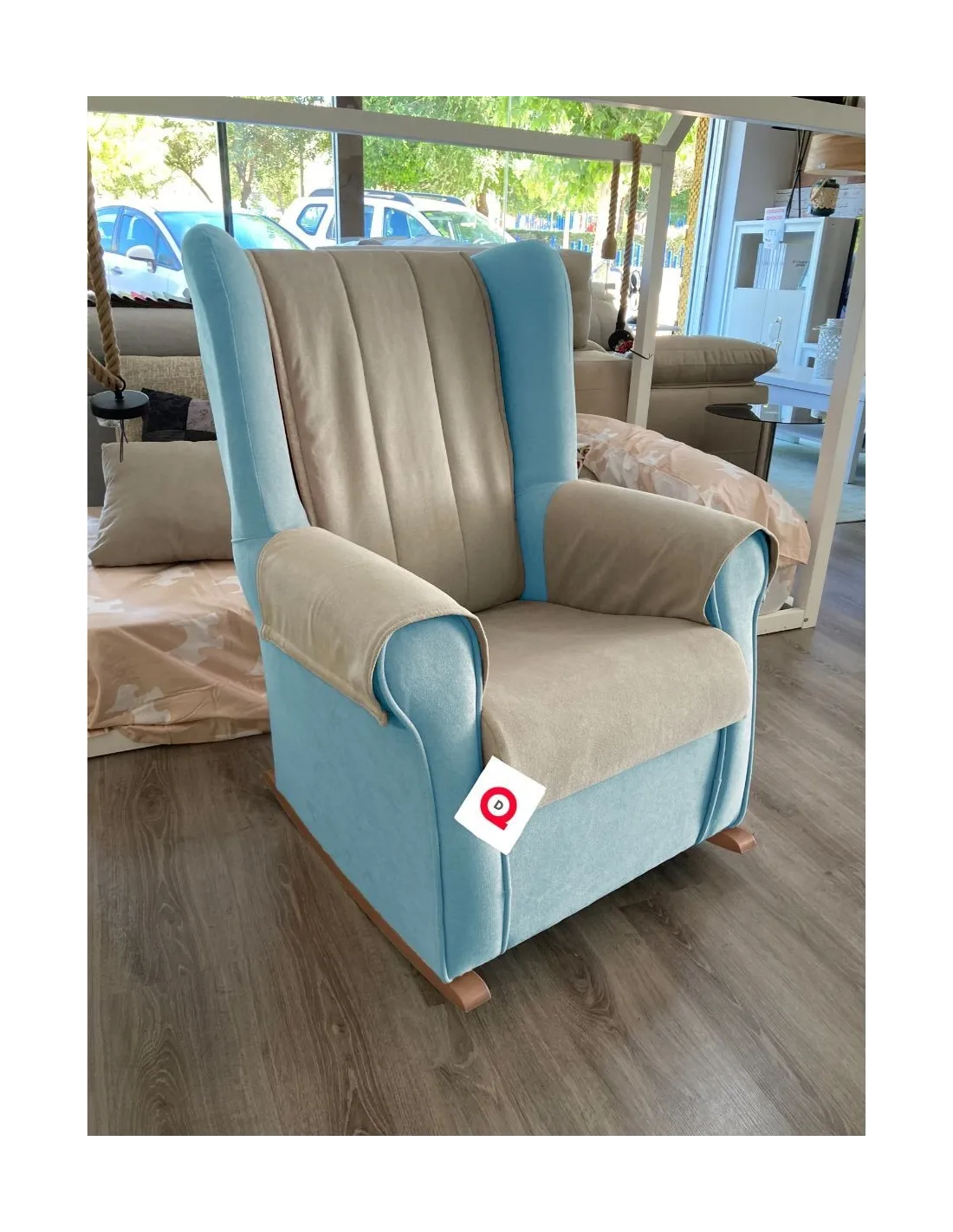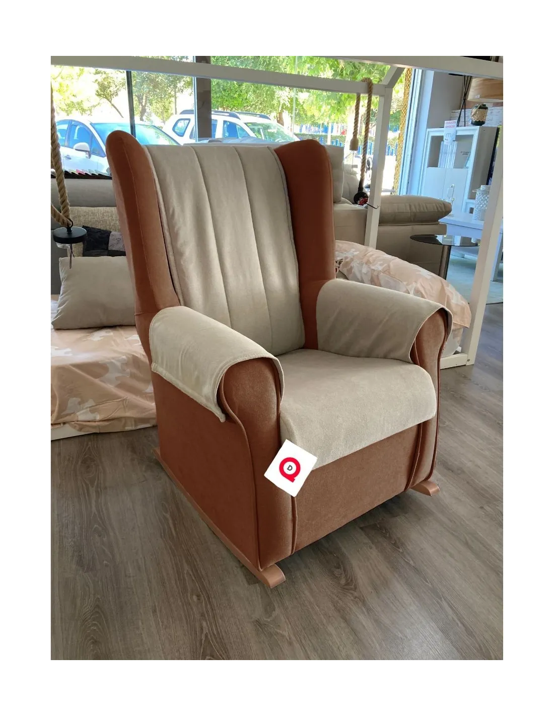 Increíble butaca mecedora de estilo clasico y gran confort que presenta un respaldo acolchado para garantizar el confort y el descanso.