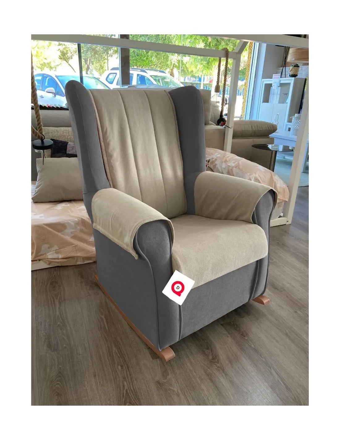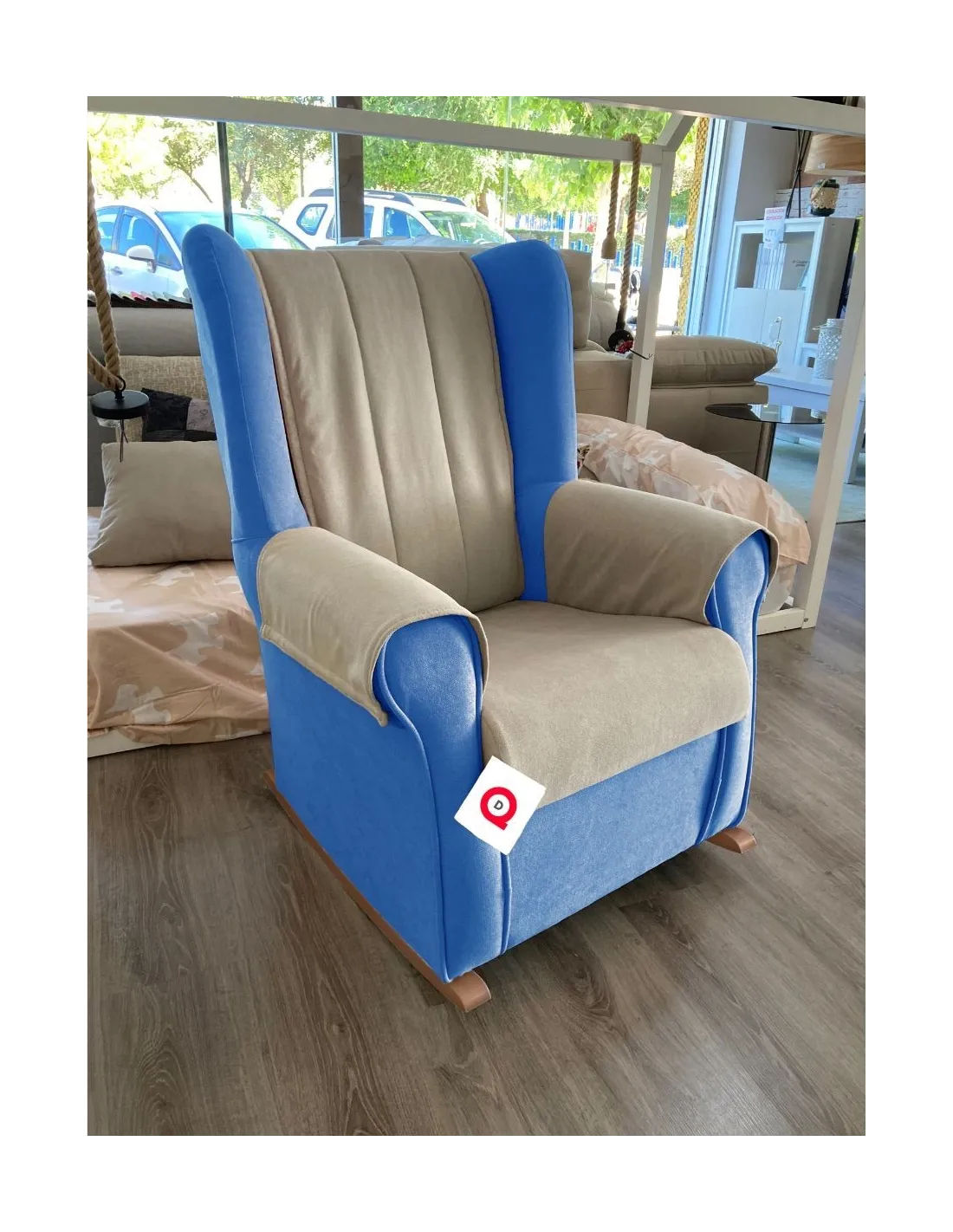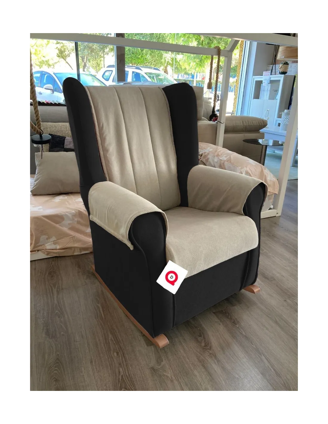 Increíble butaca mecedora de estilo clasico y gran confort que presenta un respaldo acolchado para garantizar el confort y el descanso.