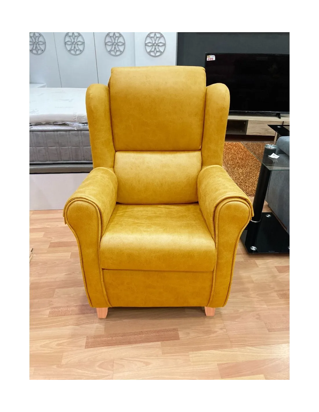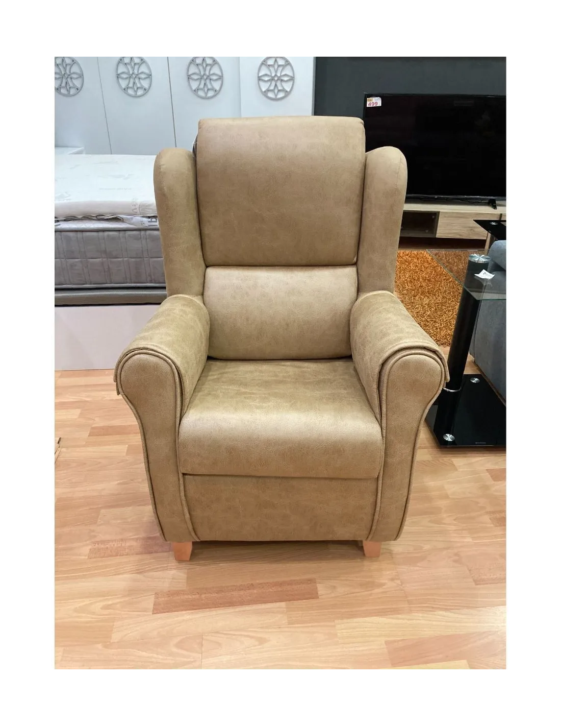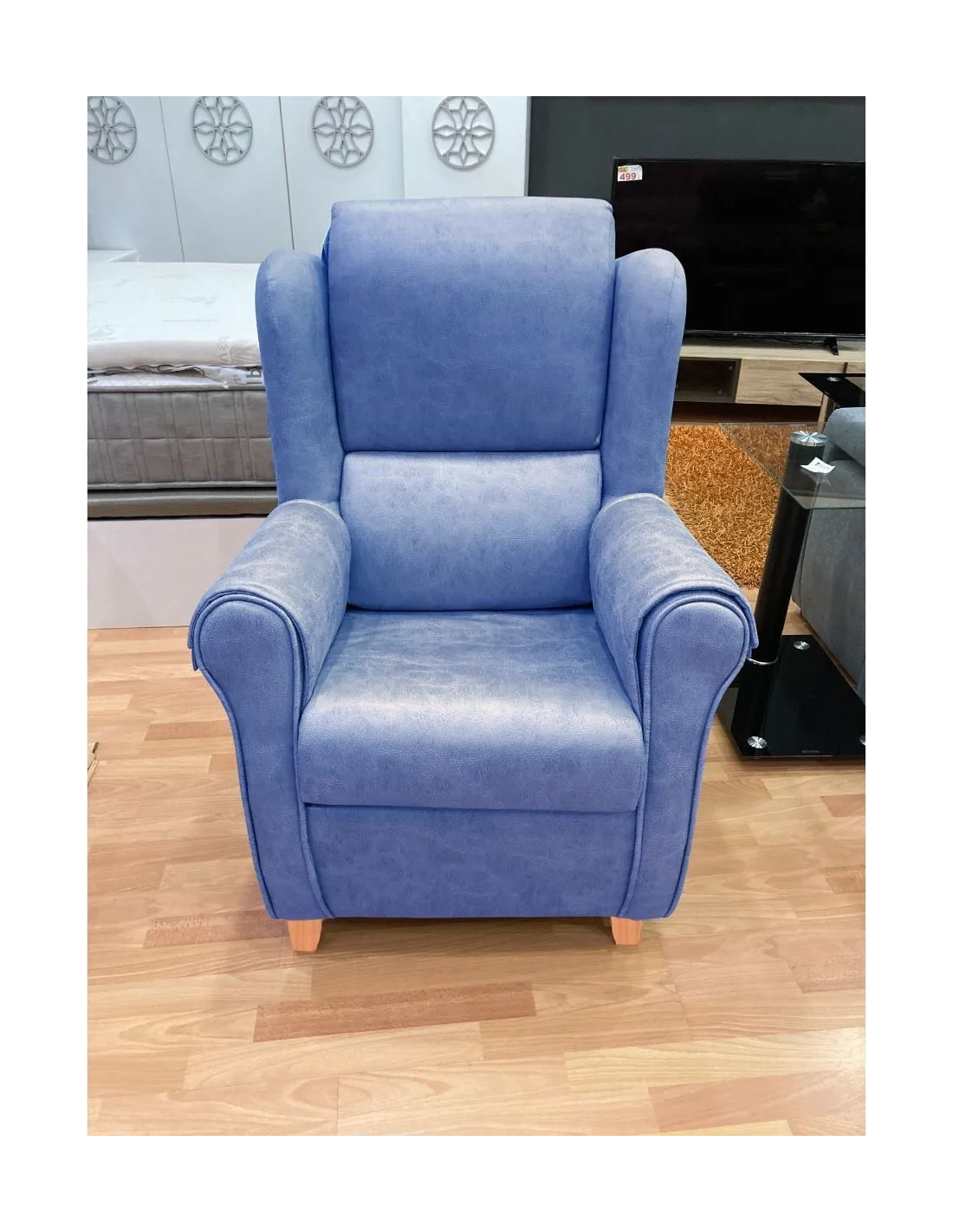 Increíble butaca mecedora de estilo clasico y gran confort que presenta un respaldo con orejeras para garantizar el confort y el descanso.