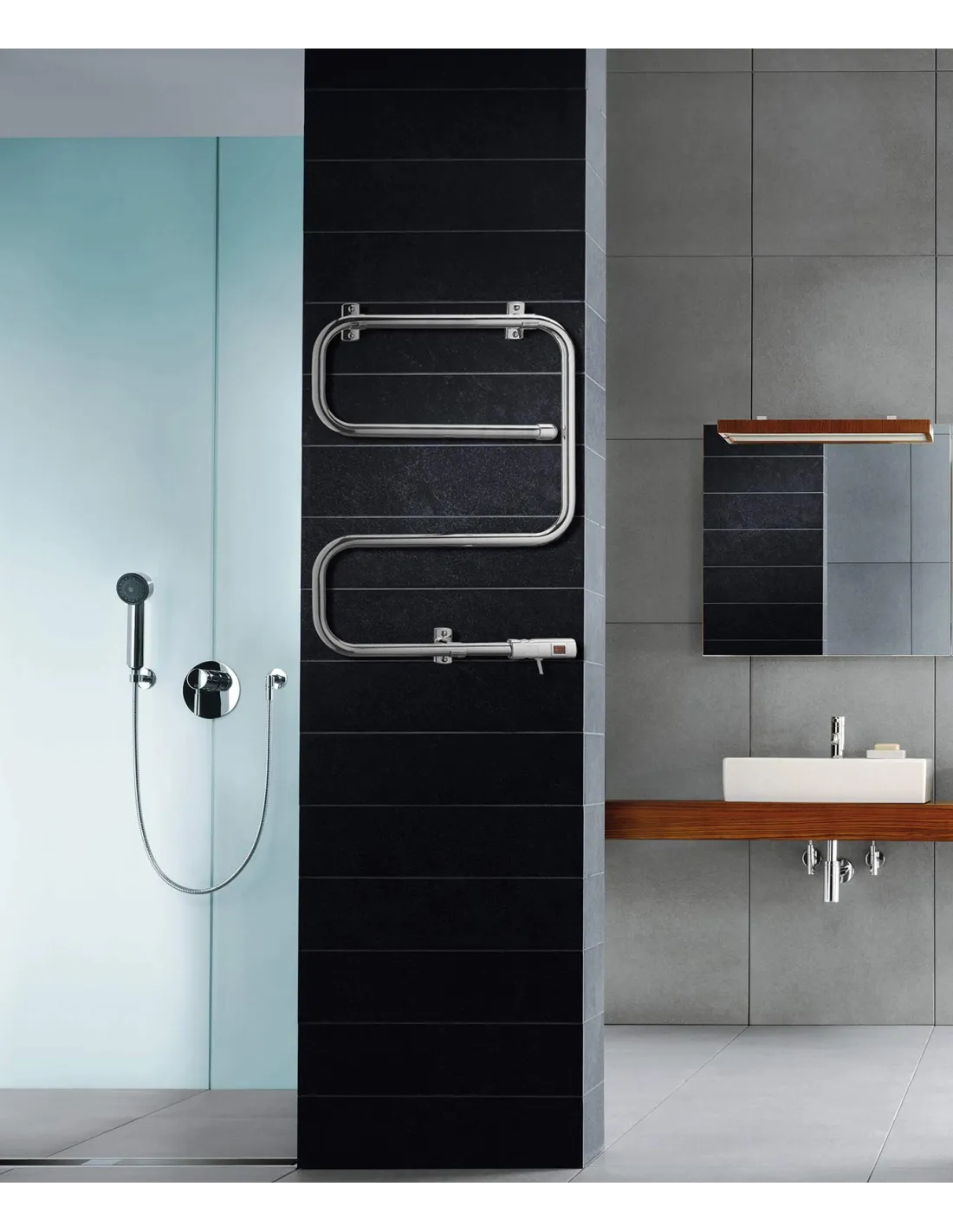 Diseño en formato curvo tipo serpentín, que facilita colgar y secar toallas.