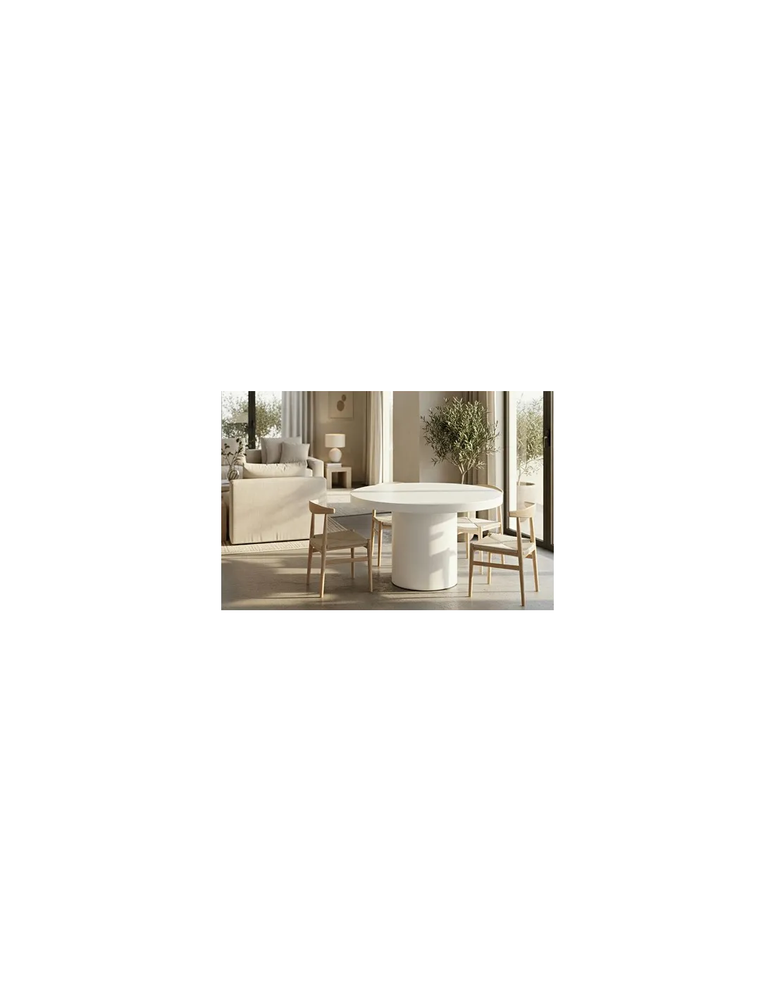 MESA REDONDA 120 CM MICROCEMENTO BLANCO