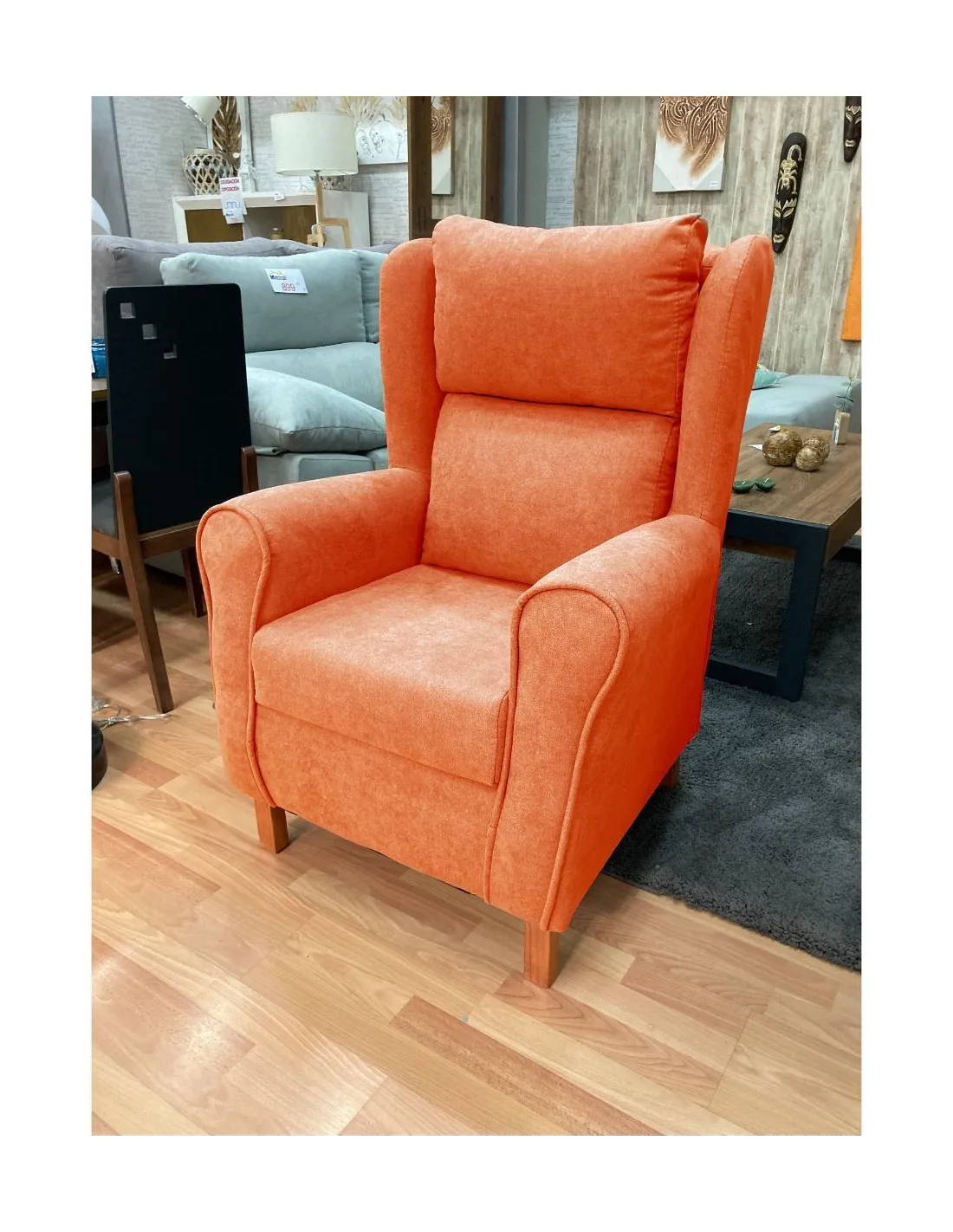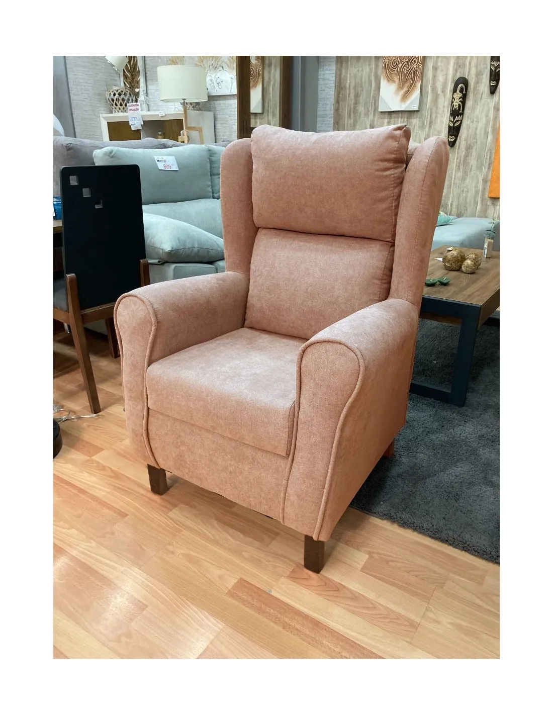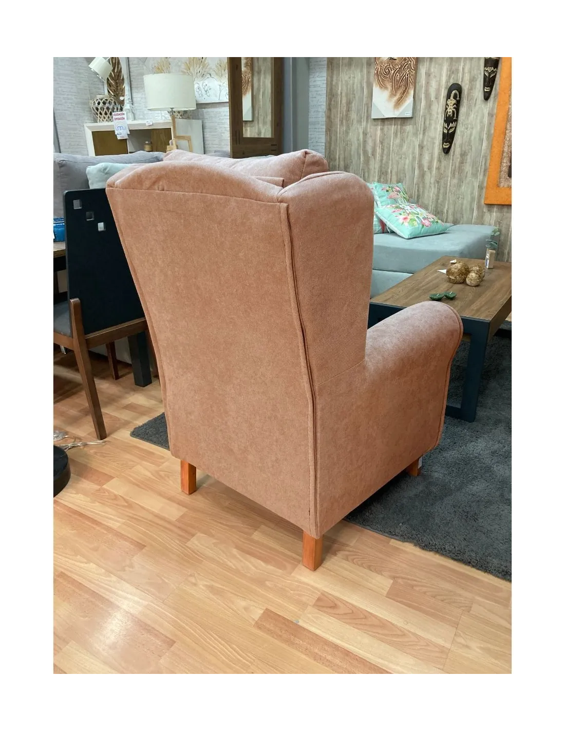 Increíble butaca mecedora de estilo clasico y gran confort que presenta un respaldo con orejeras para garantizar el confort y el descanso.